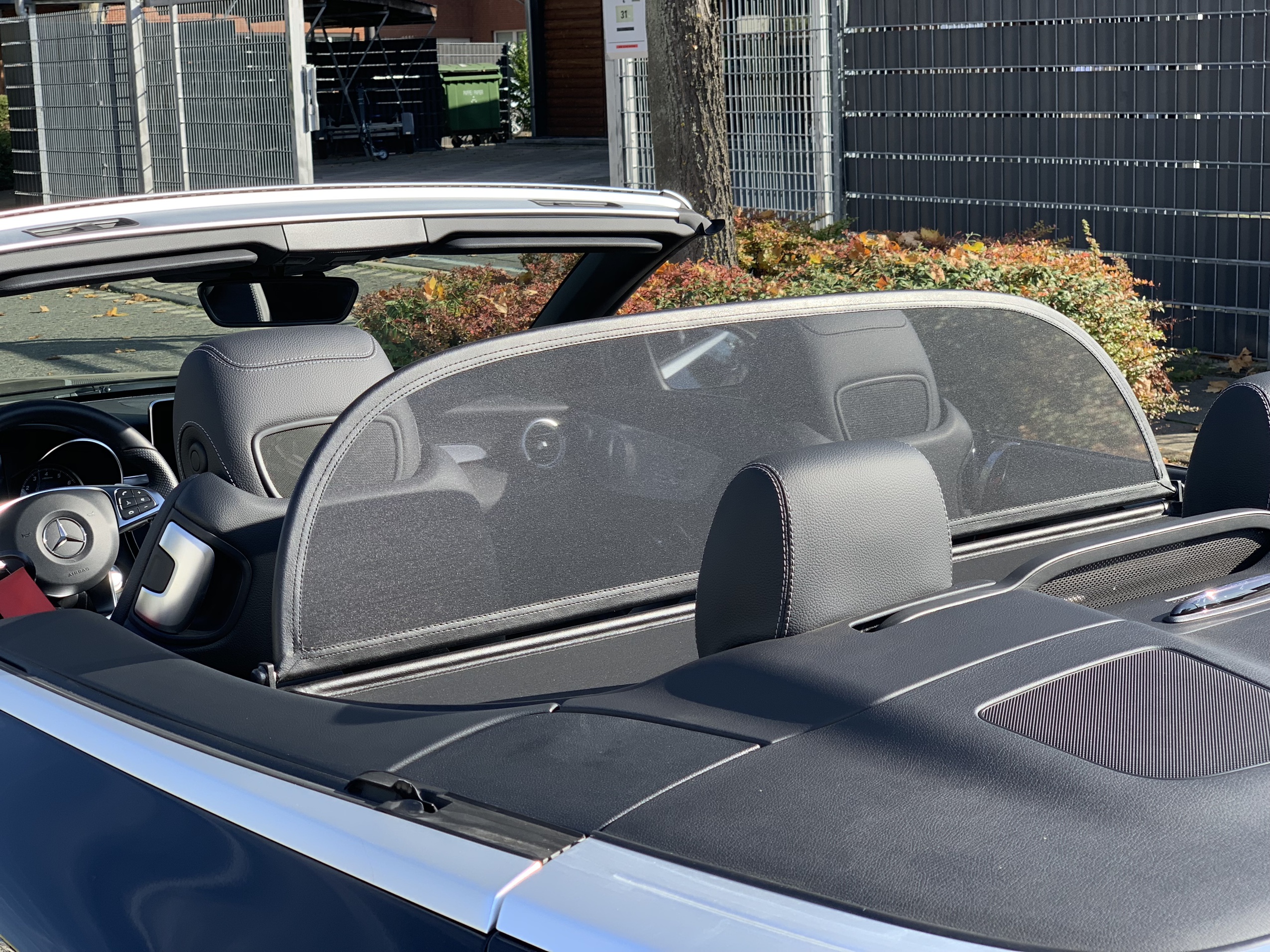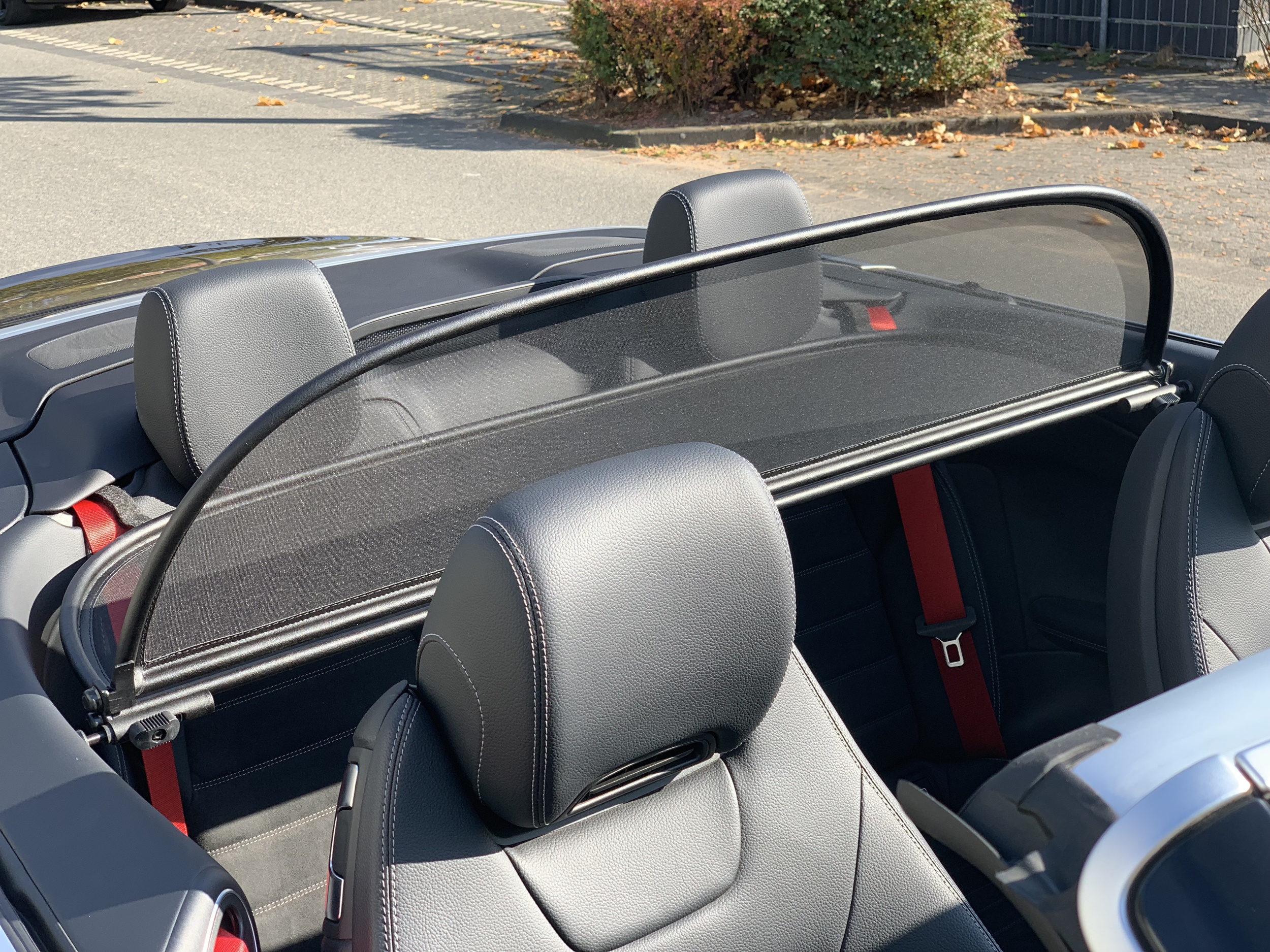A mounted wind deflector protects passengers from unpleasant air swirling cooling head, shoulders and neck, makes driving in your convertible the perfect pleasure!