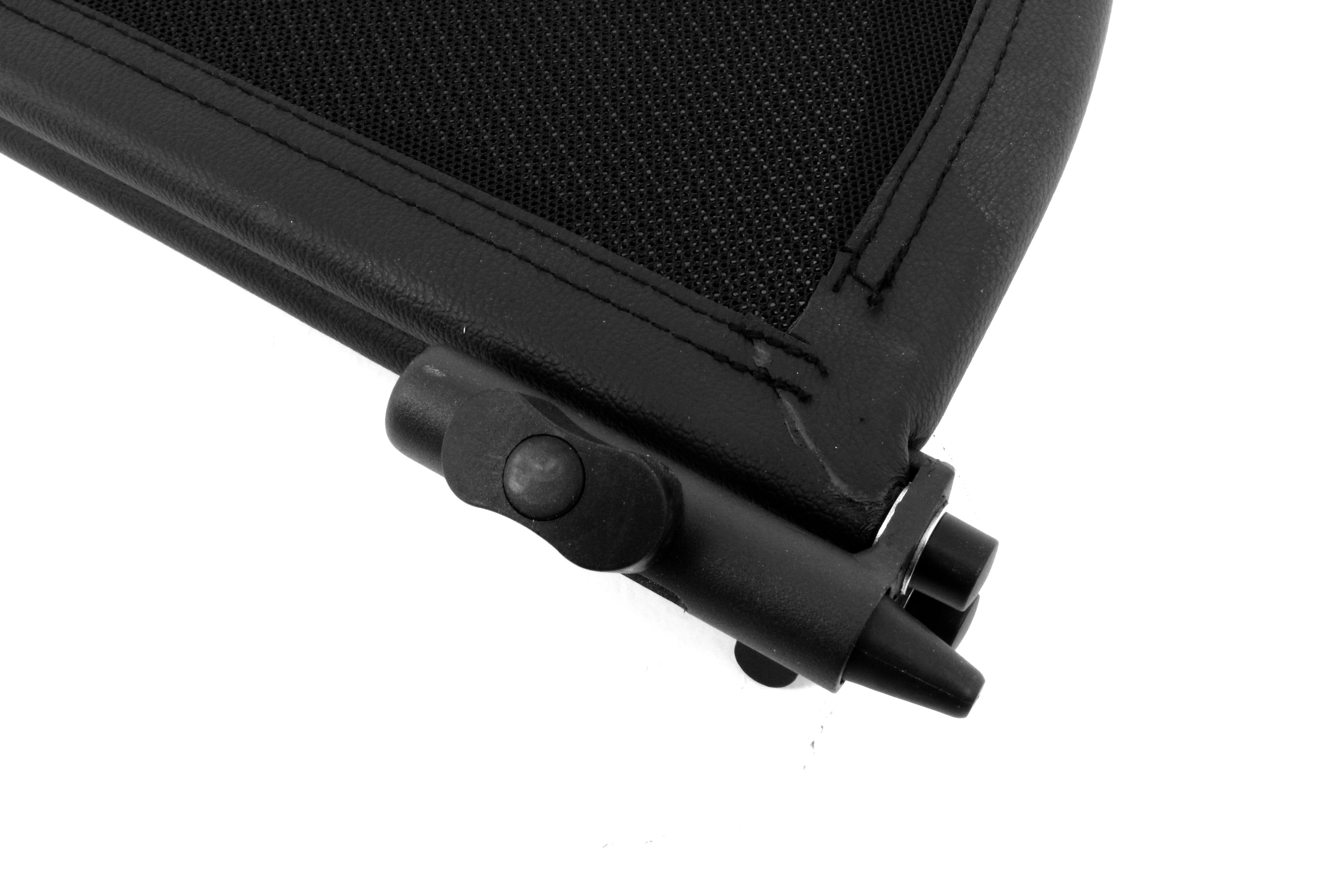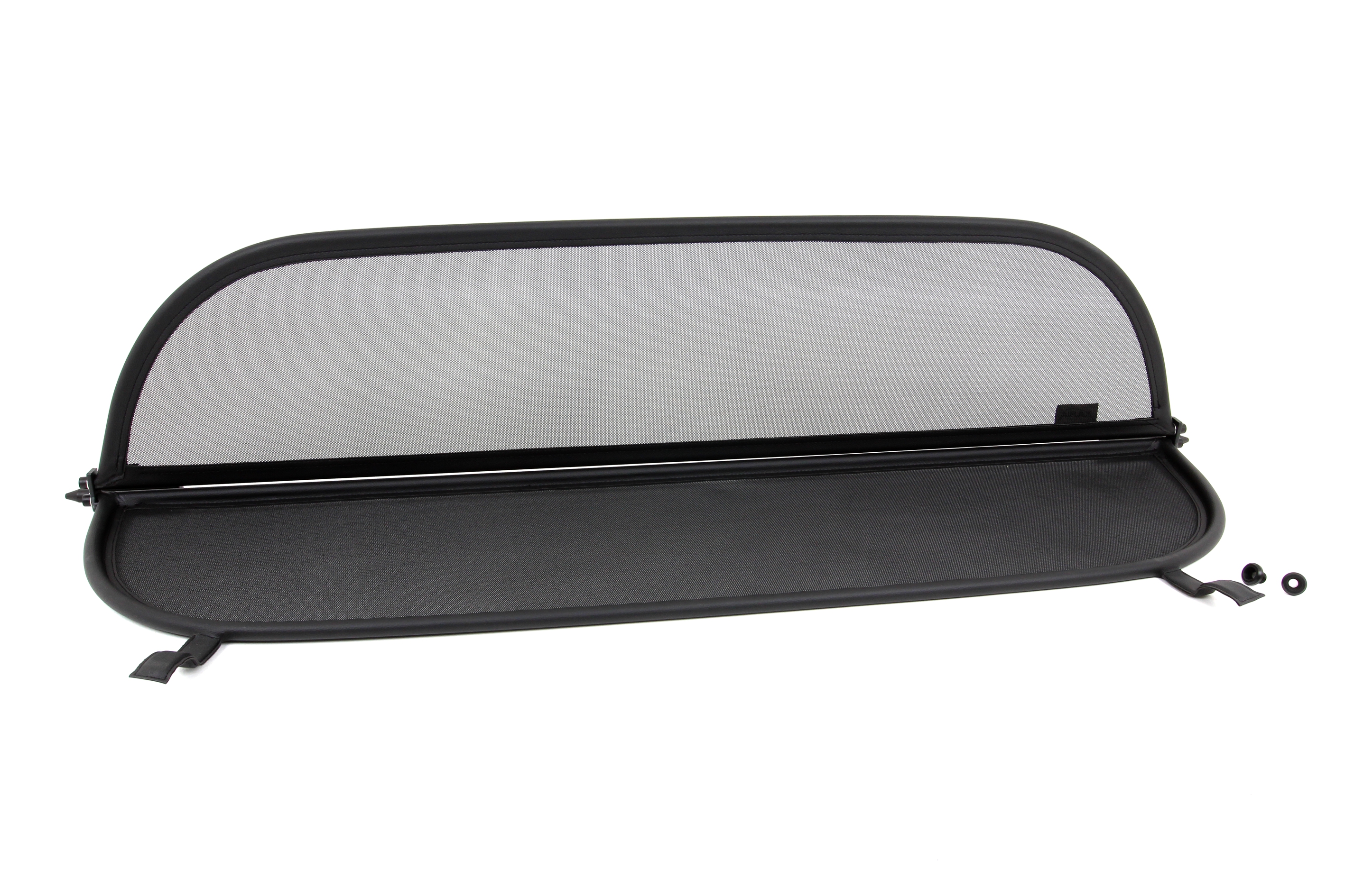 How does a wind deflector work?In its simplest form it is a mesh covered steel frame fixed behind the drivers seats, preventing the air swirling in the car every convertible driver knows. The deflector frames are made from high-grade steel tubes, bowed in car specific form and size, accurately welded and covered with weatherproof artificial leather with high-quality seams. A high-quality nylon-polyester blended fabric mesh is used as clothing, characterised by highest tensile strength and UV-resistance. Mesh, respectively frame systems can be mounted with the installation kits even by laymen within a few minutes!