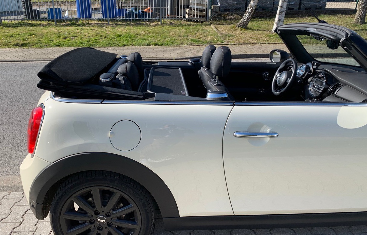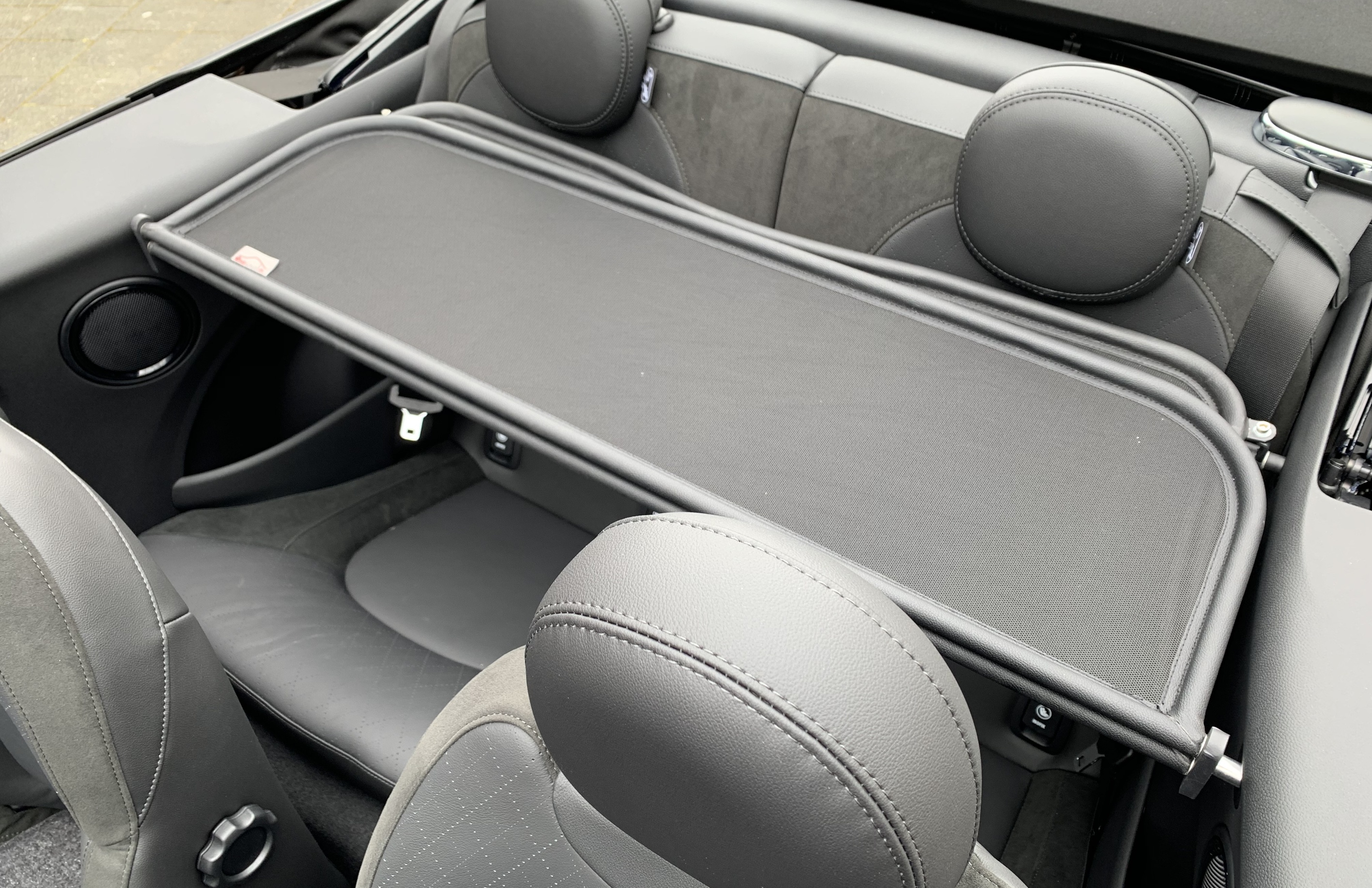 How does a wind deflector work?In its simplest form it is a mesh covered steel frame fixed behind the drivers seats, preventing the air swirling in the car every convertible driver knows. The deflector frames are made from high-grade steel tubes, bowed in car specific form and size, accurately welded and covered with weatherproof artificial leather with high-quality seams. A high-quality nylon-polyester blended fabric mesh is used as clothing, characterised by highest tensile strength and UV-resistance. Mesh, respectively frame systems can be mounted with the installation kits even by laymen within a few minutes!