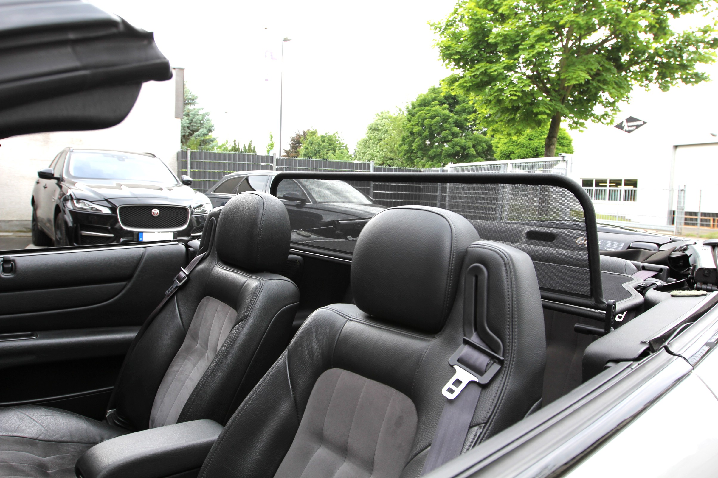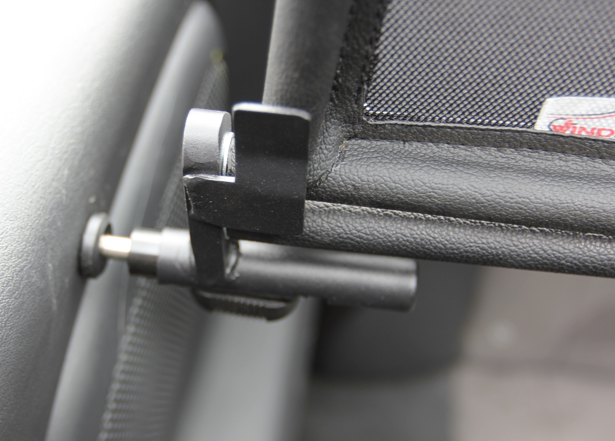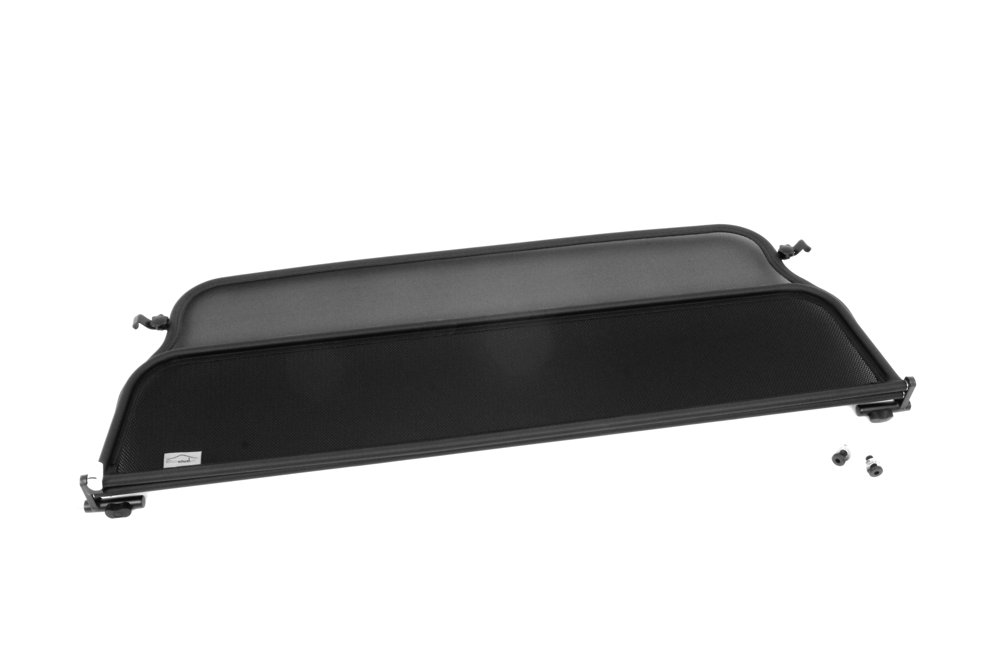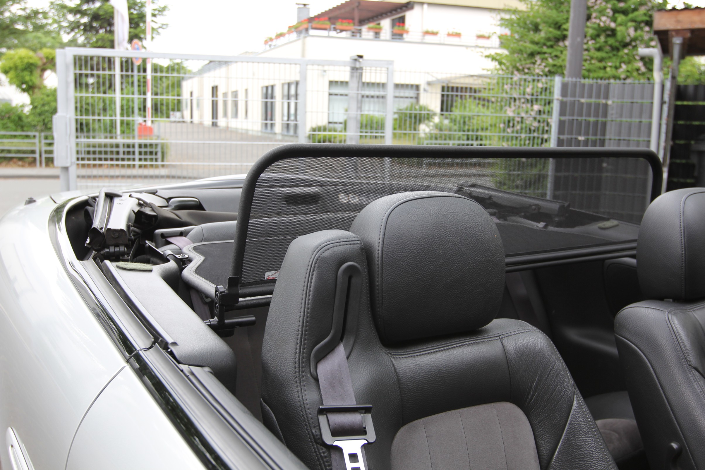 How does a wind deflector work?In its simplest form it is a mesh covered steel frame fixed behind the drivers seats, preventing the air swirling in the car every convertible driver knows. The deflector frames are made from high-grade steel tubes, bowed in car specific form and size, accurately welded and covered with weatherproof artificial leather with high-quality seams. A high-quality nylon-polyester blended fabric mesh is used as clothing, characterised by highest tensile strength and UV-resistance. Mesh, respectively frame systems can be mounted with the installation kits even by laymen within a few minutes!