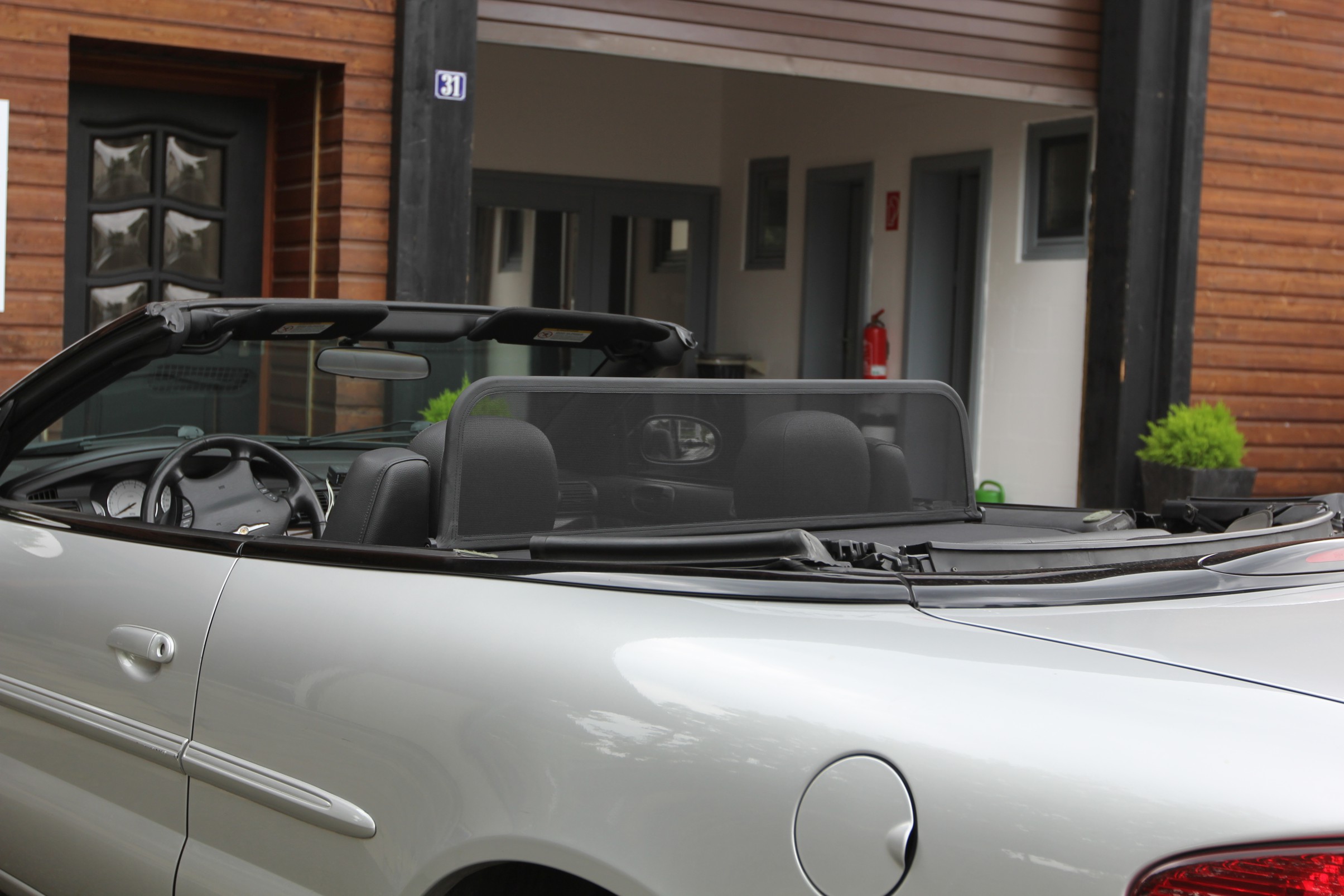 A mounted wind deflector protects passengers from unpleasant air swirling cooling head, shoulders and neck, makes driving in your convertible the perfect pleasure!