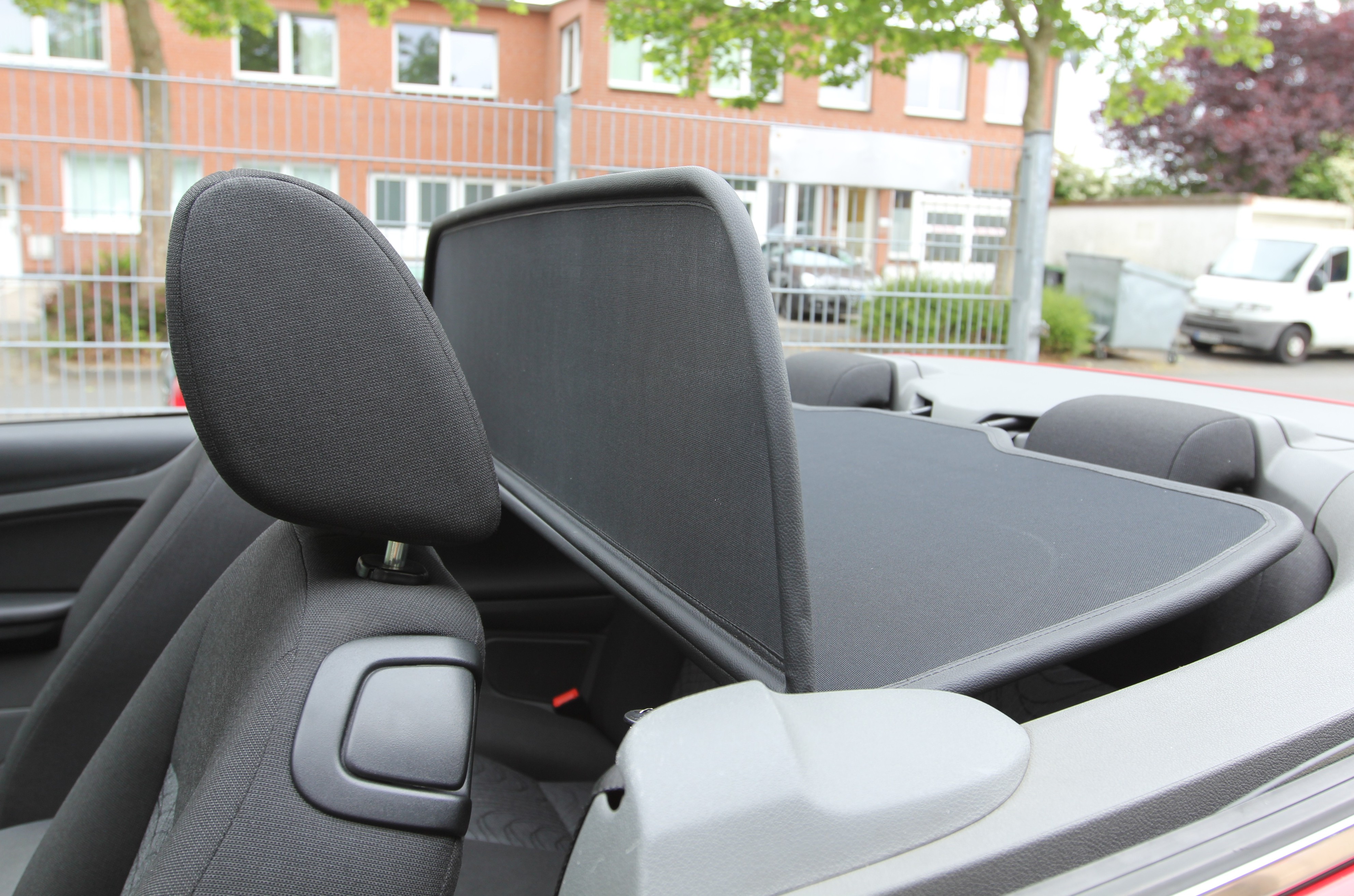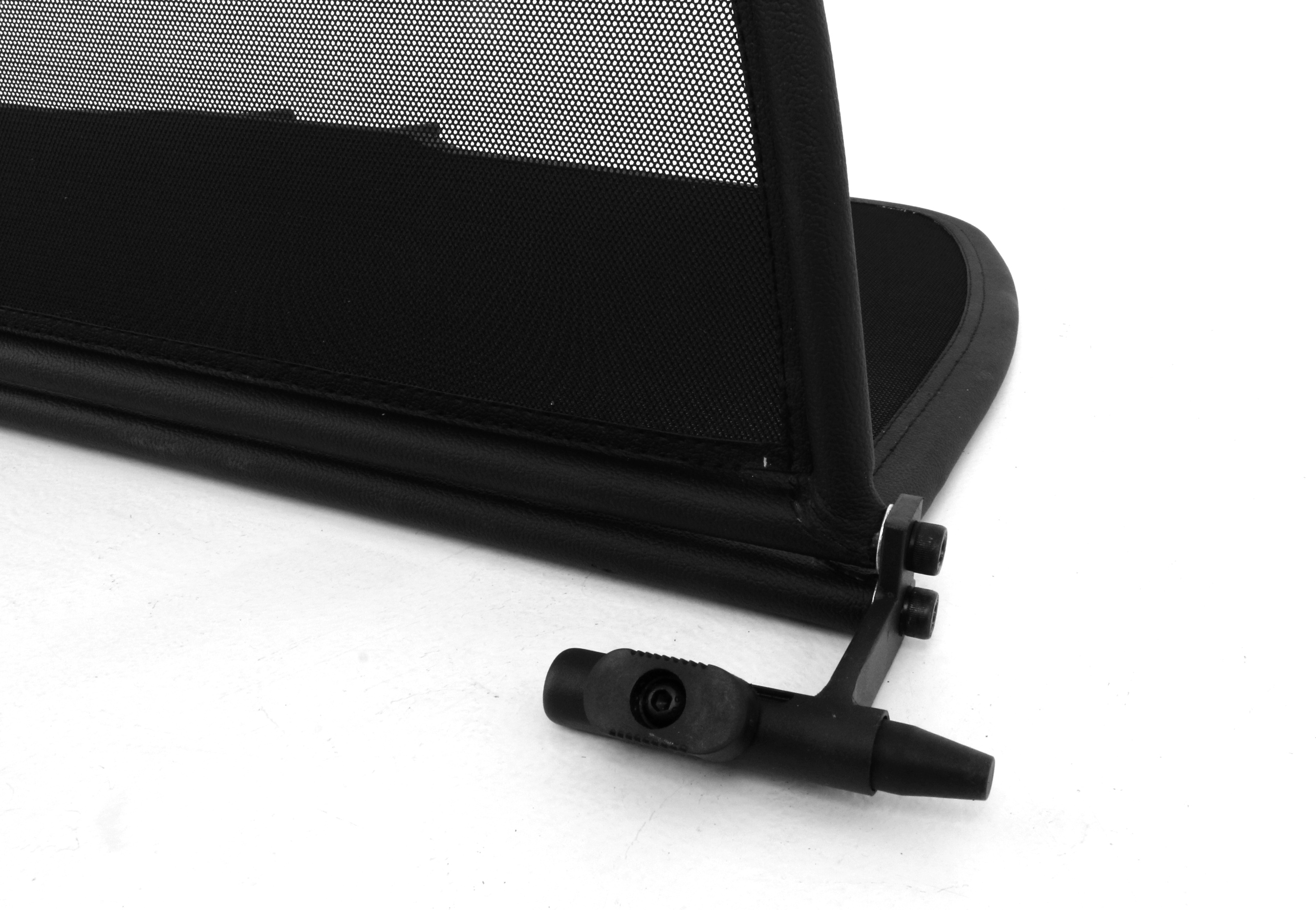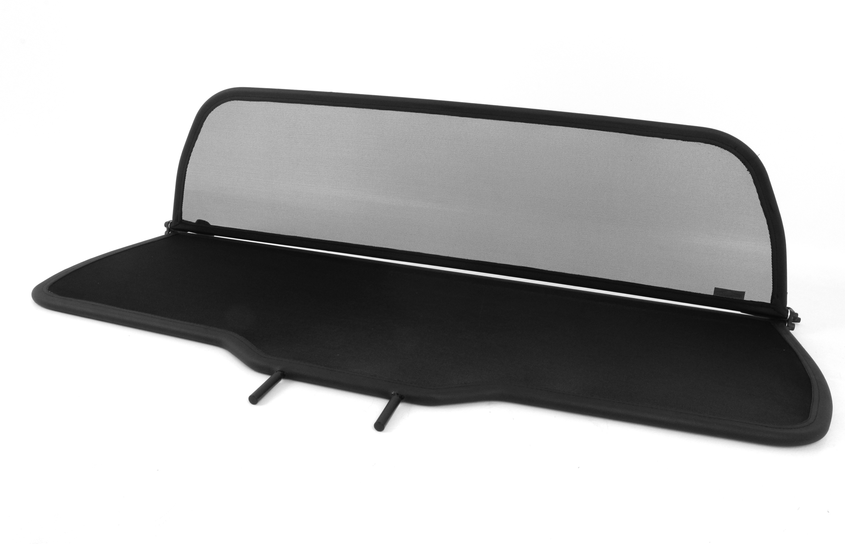 How does a wind deflector work?In its simplest form it is a mesh covered steel frame fixed behind the drivers seats, preventing the air swirling in the car every convertible driver knows. The deflector frames are made from high-grade steel tubes, bowed in car specific form and size, accurately welded and covered with weatherproof artificial leather with high-quality seams. A high-quality nylon-polyester blended fabric mesh is used as clothing, characterised by highest tensile strength and UV-resistance. Mesh, respectively frame systems can be mounted with the installation kits even by laymen within a few minutes!