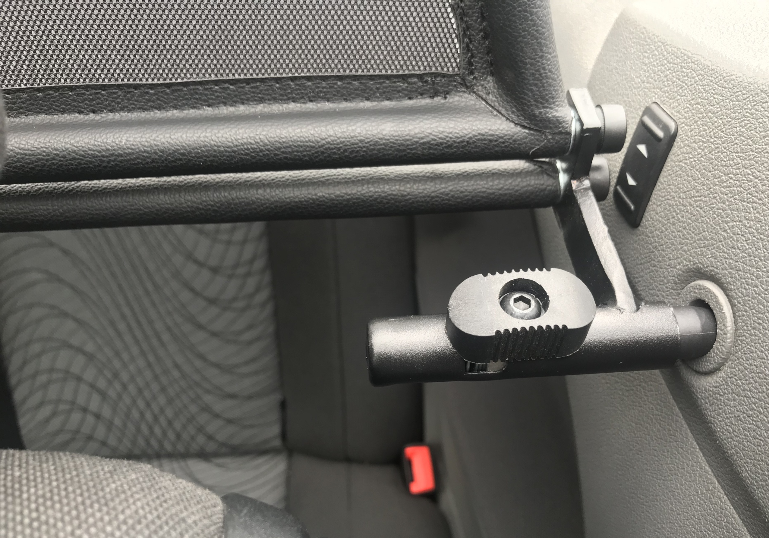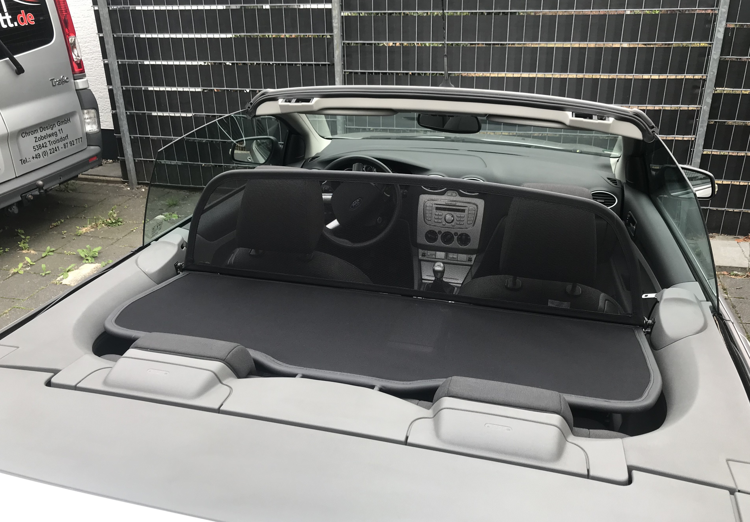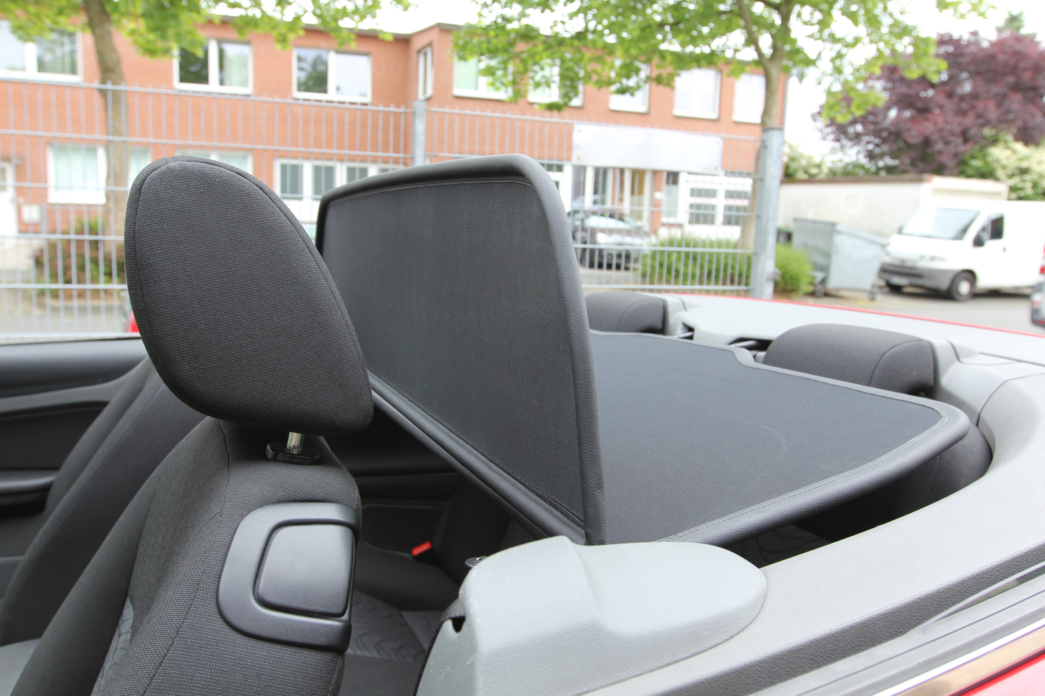 How does a wind deflector work?In its simplest form it is a mesh covered steel frame fixed behind the drivers seats, preventing the air swirling in the car every convertible driver knows. The deflector frames are made from high-grade steel tubes, bowed in car specific form and size, accurately welded and covered with weatherproof artificial leather with high-quality seams. A high-quality nylon-polyester blended fabric mesh is used as clothing, characterised by highest tensile strength and UV-resistance. Mesh, respectively frame systems can be mounted with the installation kits even by laymen within a few minutes!