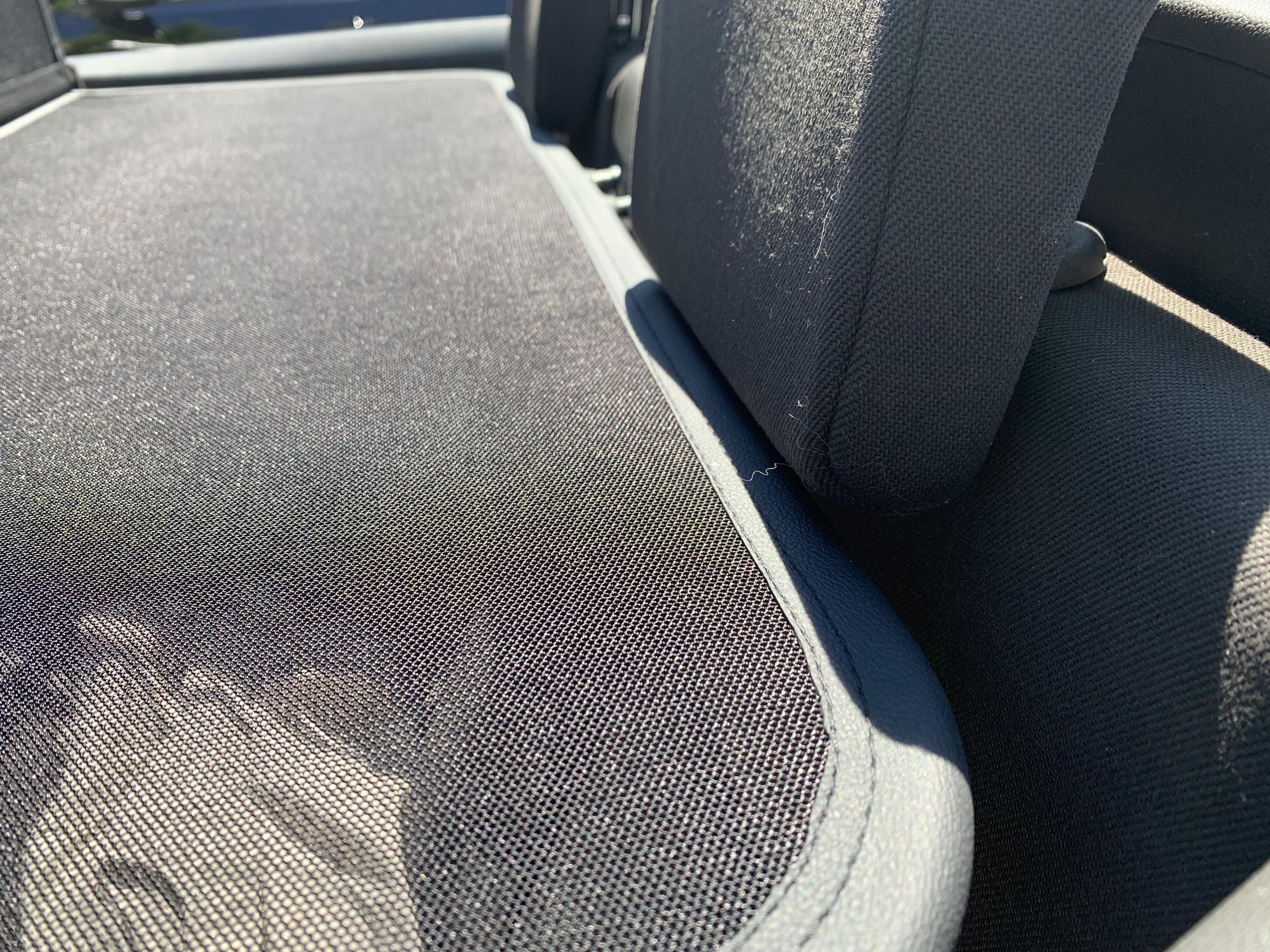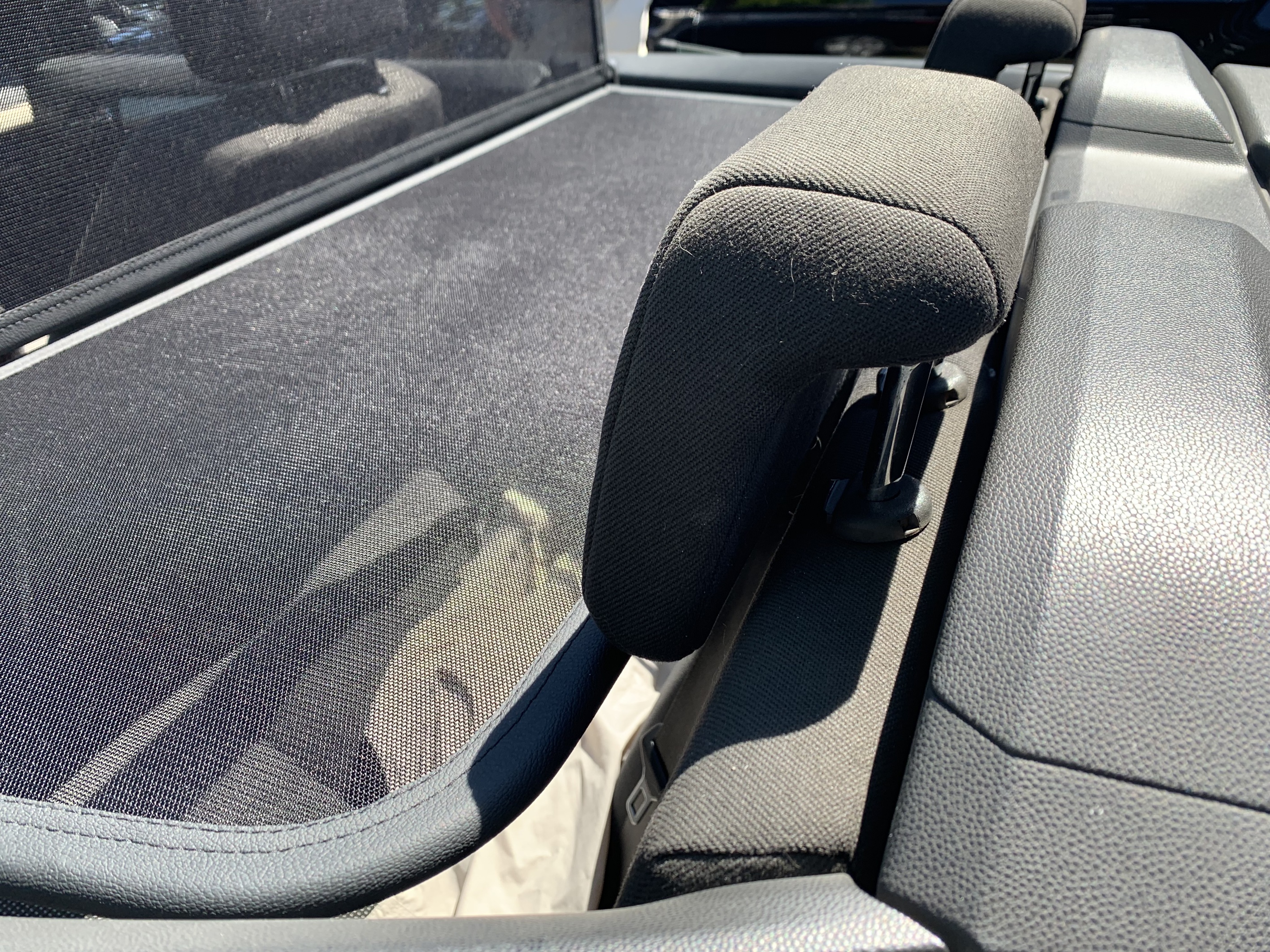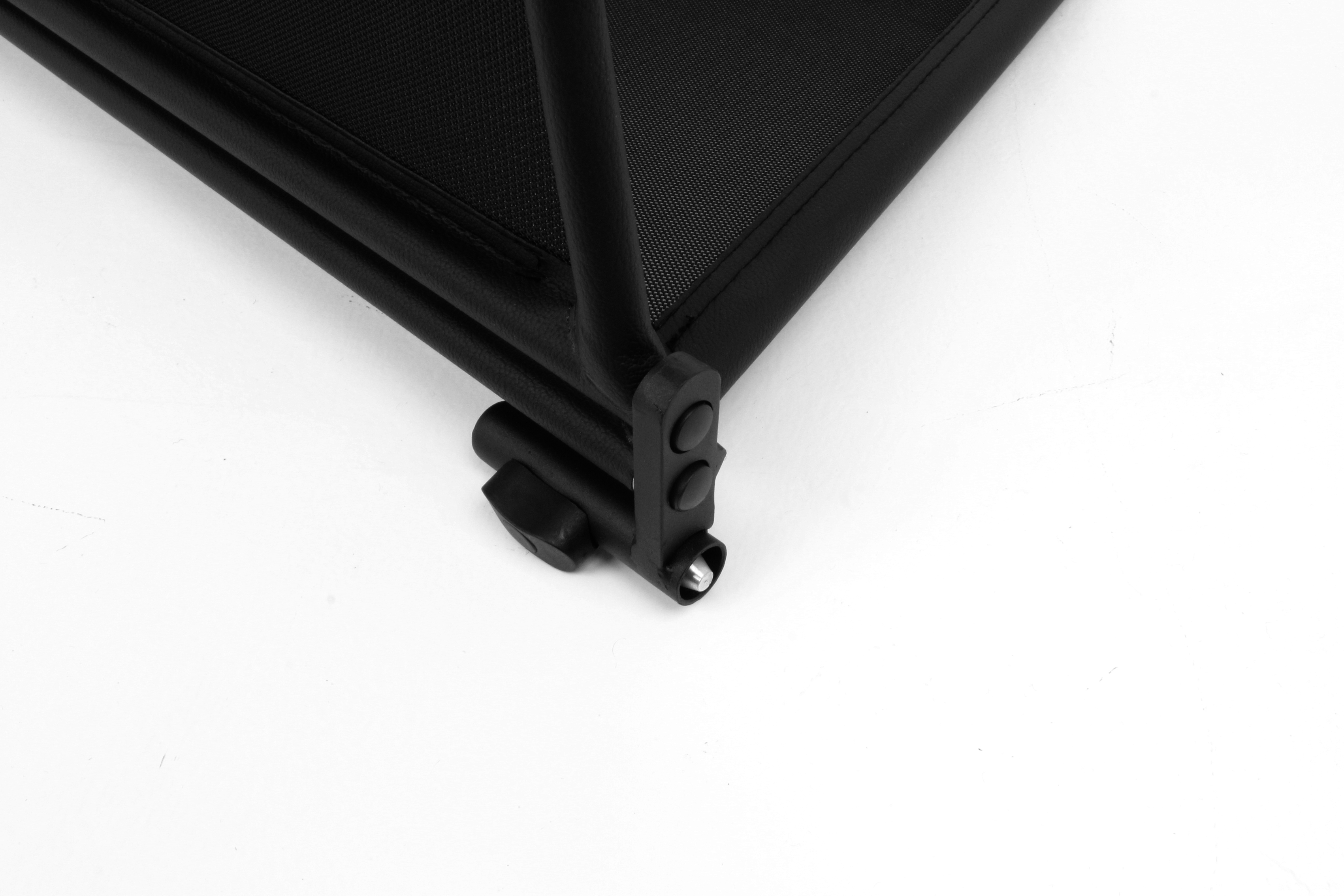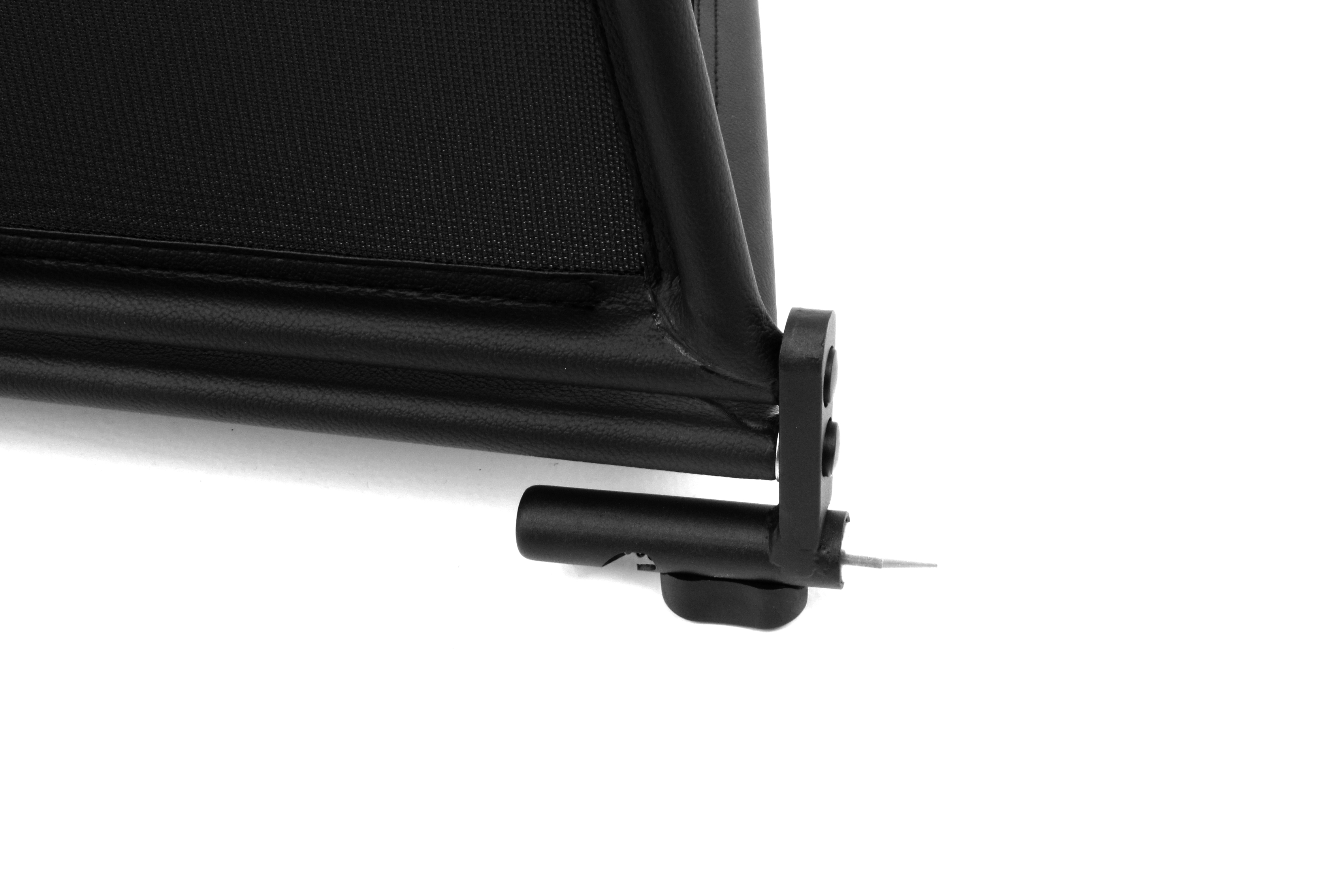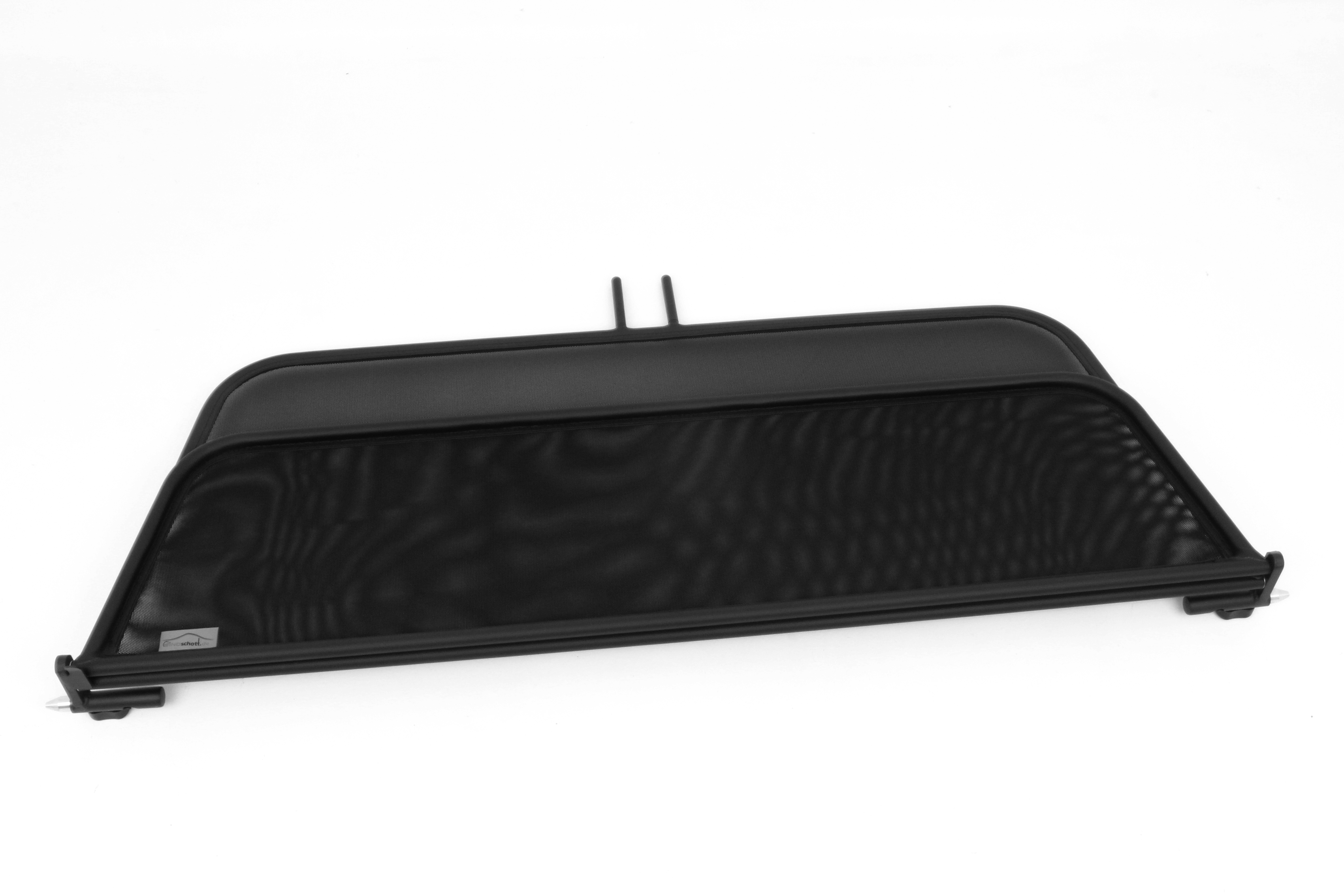 How does a wind deflector work?In its simplest form it is a mesh covered steel frame fixed behind the drivers seats, preventing the air swirling in the car every convertible driver knows. The deflector frames are made from high-grade steel tubes, bowed in car specific form and size, accurately welded and covered with weatherproof artificial leather with high-quality seams. A high-quality nylon-polyester blended fabric mesh is used as clothing, characterised by highest tensile strength and UV-resistance. Mesh, respectively frame systems can be mounted with the installation kits even by laymen within a few minutes!