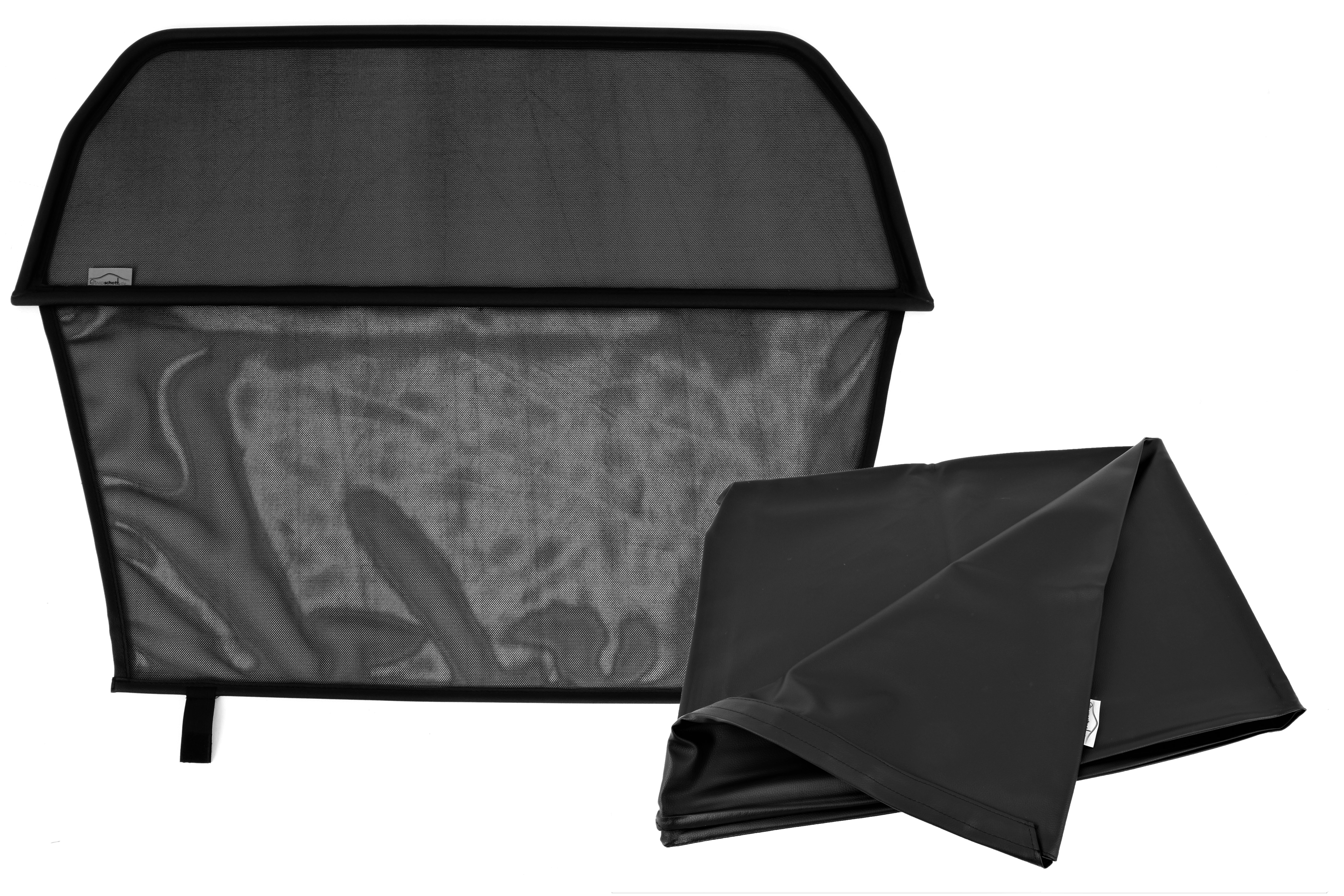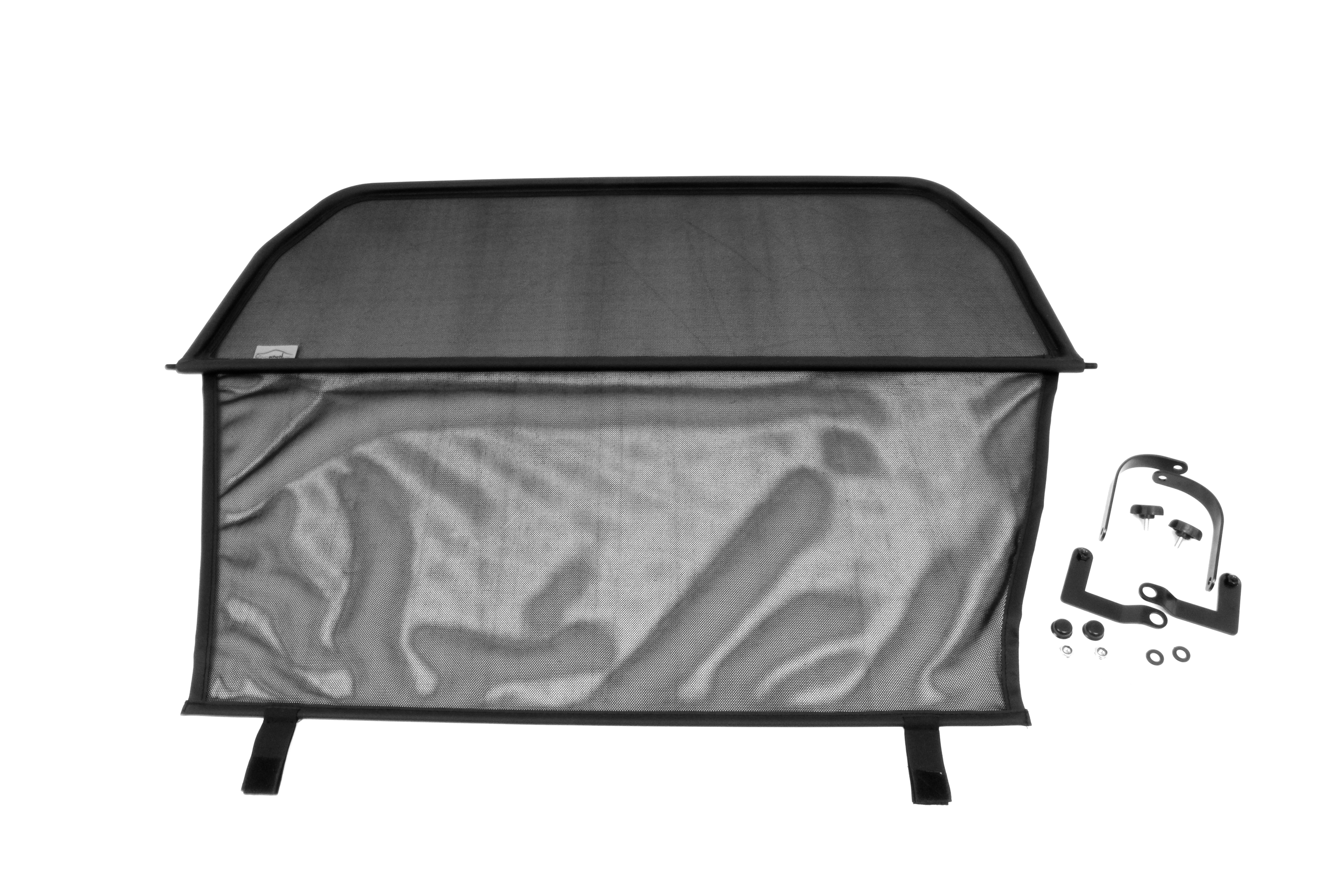 How does a wind deflector work?In its simplest form it is a mesh covered steel frame fixed behind the drivers seats, preventing the air swirling in the car every convertible driver knows. The deflector frames are made from high-grade steel tubes, bowed in car specific form and size, accurately welded and covered with weatherproof artificial leather with high-quality seams. A high-quality nylon-polyester blended fabric mesh is used as clothing, characterised by highest tensile strength and UV-resistance. Mesh, respectively frame systems can be mounted with the installation kits even by laymen within a few minutes!