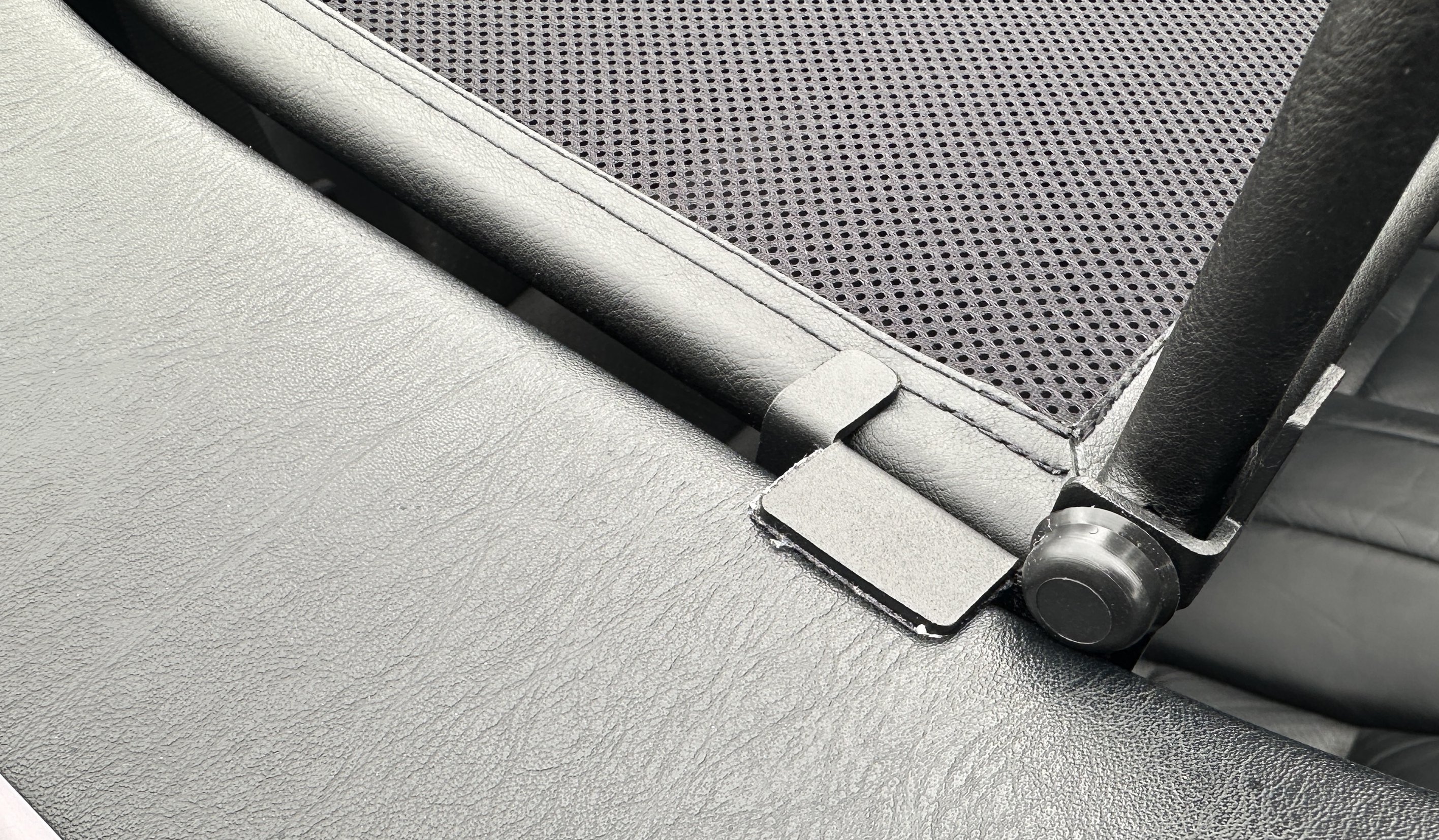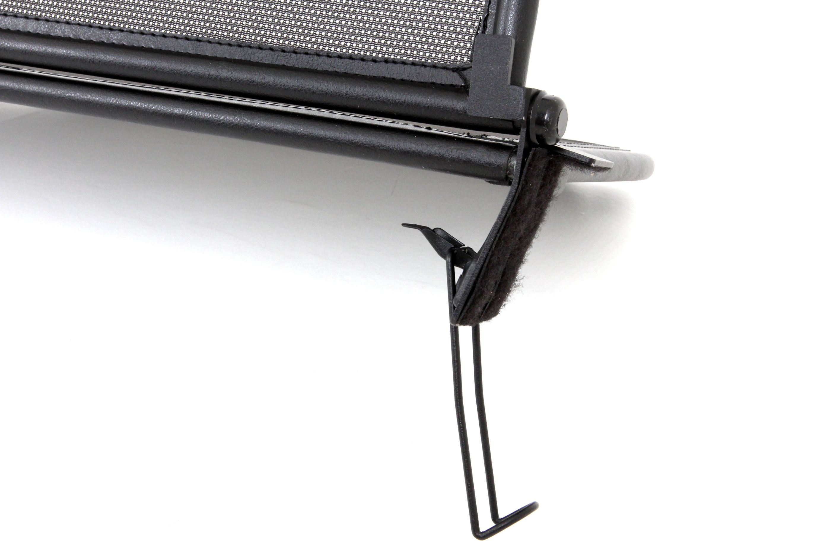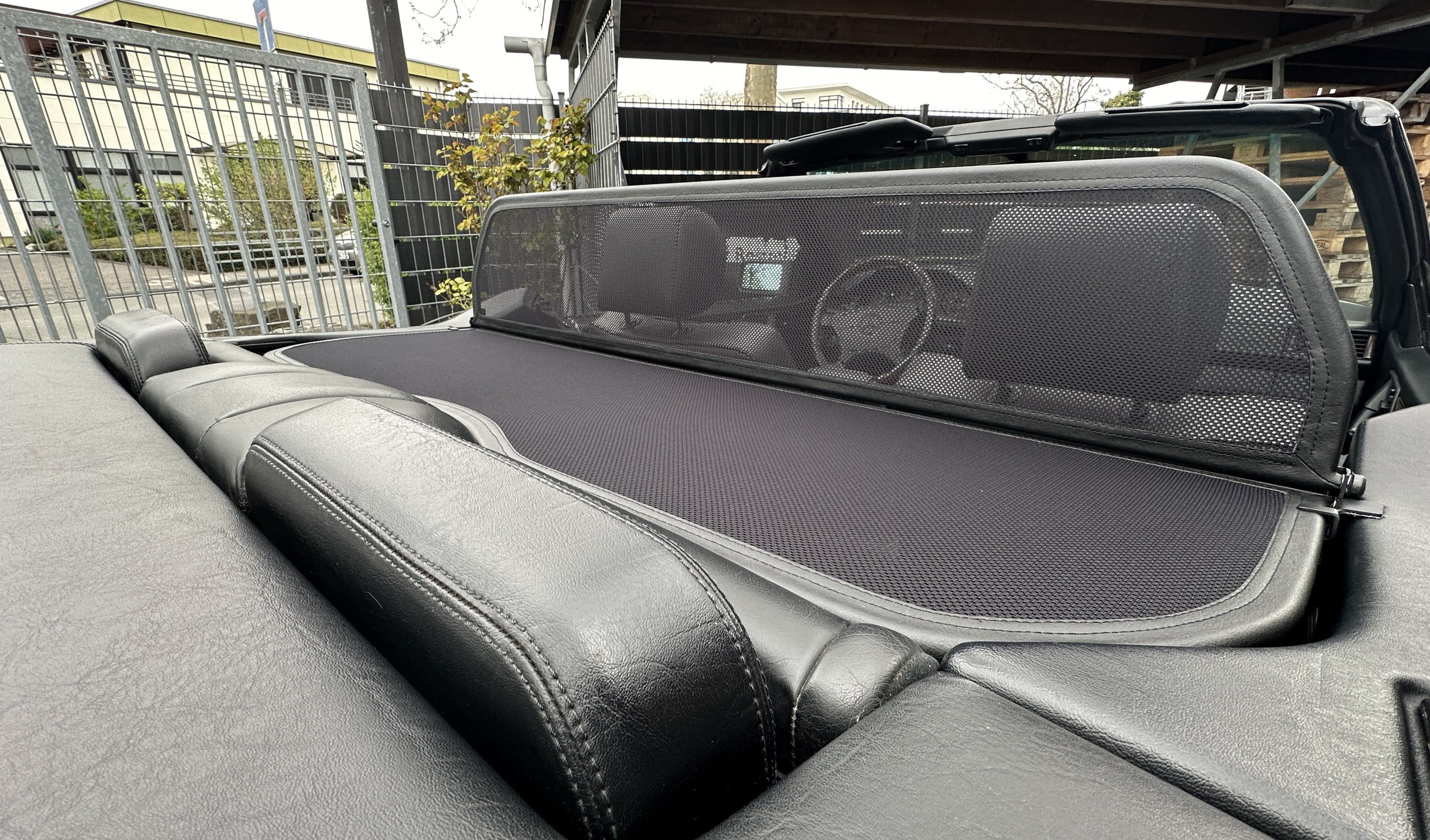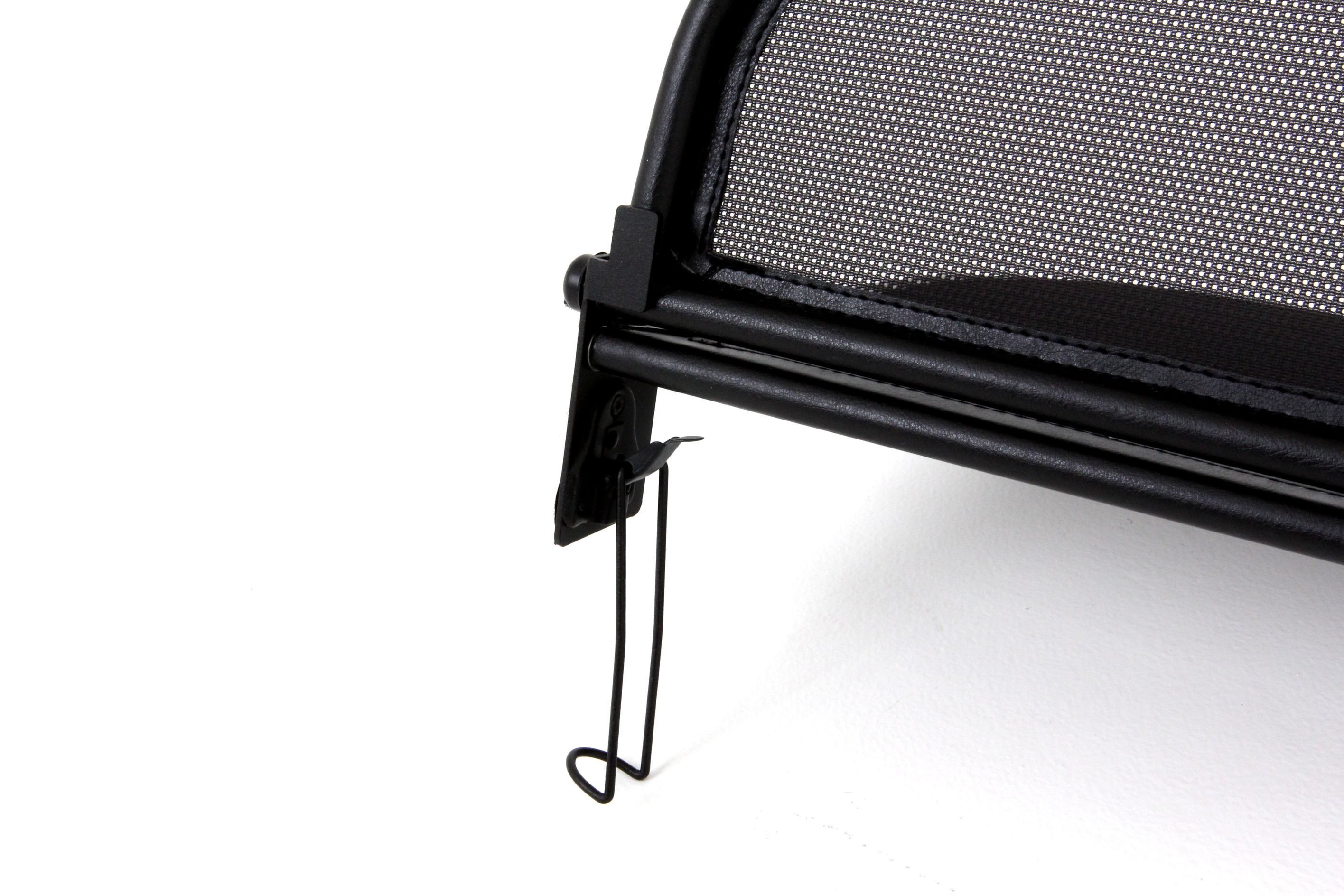 How does a wind deflector work?In its simplest form it is a mesh covered steel frame fixed behind the drivers seats, preventing the air swirling in the car every convertible driver knows. The deflector frames are made from high-grade steel tubes, bowed in car specific form and size, accurately welded and covered with weatherproof artificial leather with high-quality seams. A high-quality nylon-polyester blended fabric mesh is used as clothing, characterised by highest tensile strength and UV-resistance. Mesh, respectively frame systems can be mounted with the installation kits even by laymen within a few minutes!