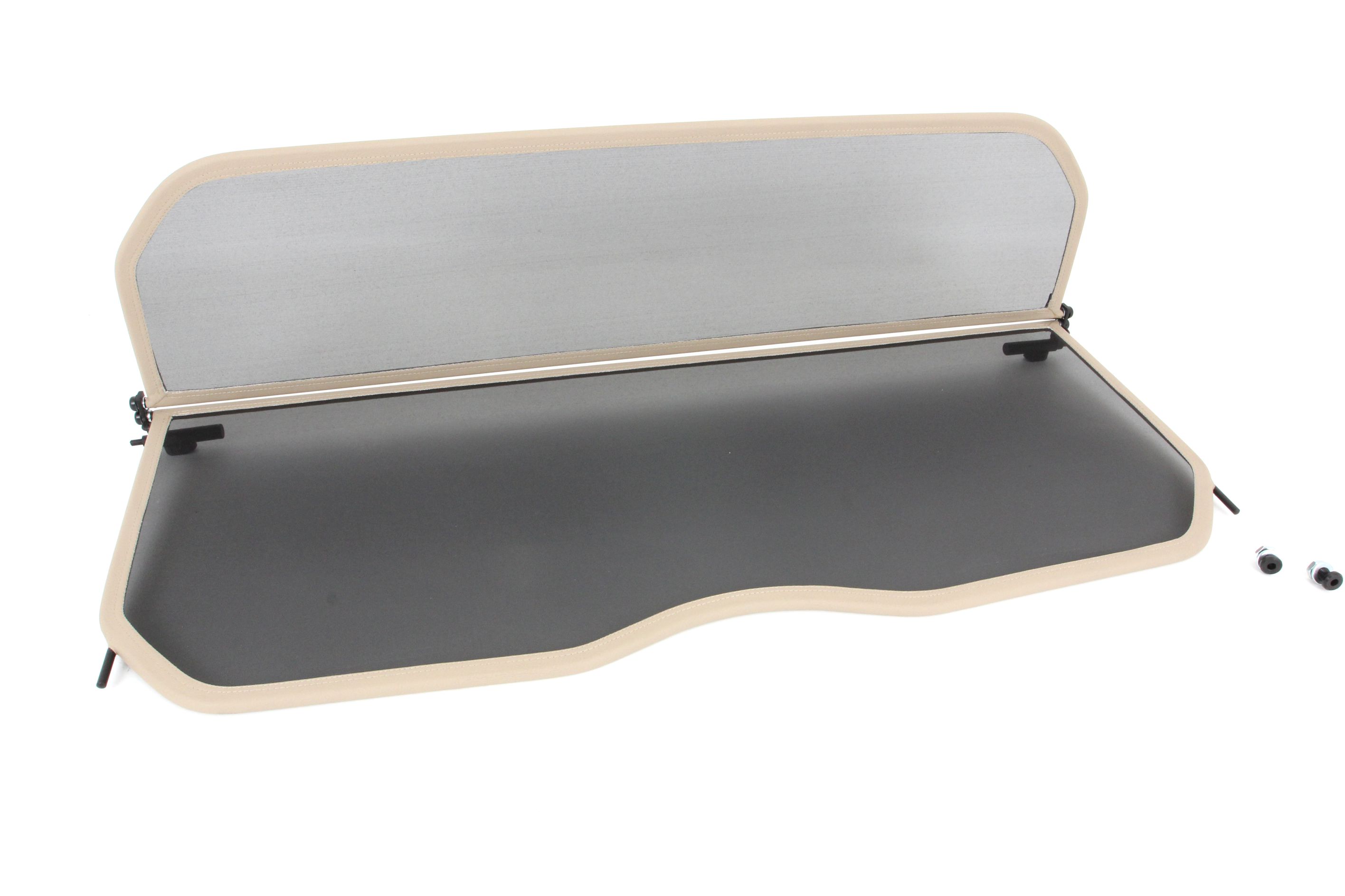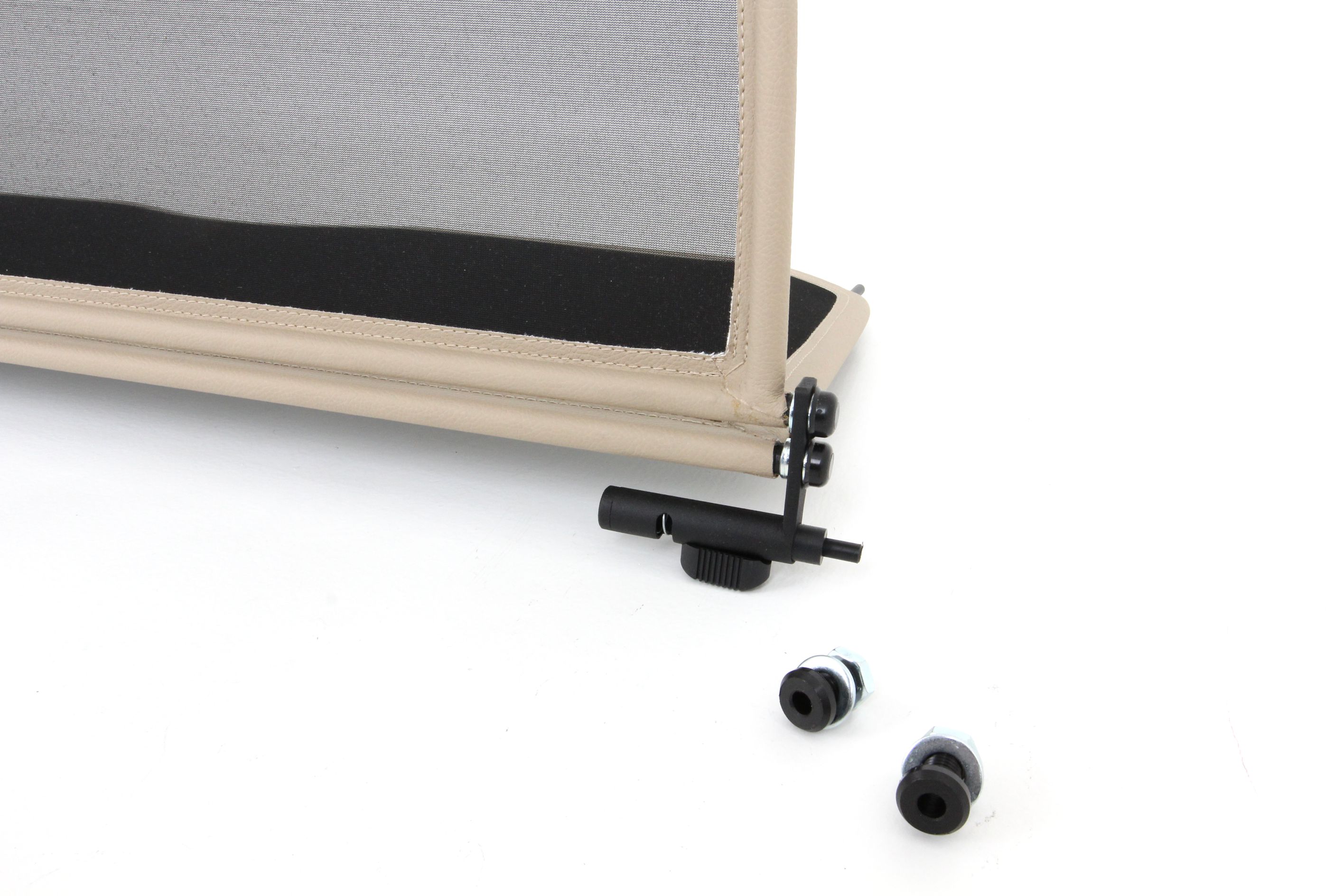 How does a wind deflector work?In its simplest form it is a mesh covered steel frame fixed behind the drivers seats, preventing the air swirling in the car every convertible driver knows. The deflector frames are made from high-grade steel tubes, bowed in car specific form and size, accurately welded and covered with weatherproof artificial leather with high-quality seams. A high-quality nylon-polyester blended fabric mesh is used as clothing, characterised by highest tensile strength and UV-resistance. Mesh, respectively frame systems can be mounted with the installation kits even by laymen within a few minutes!