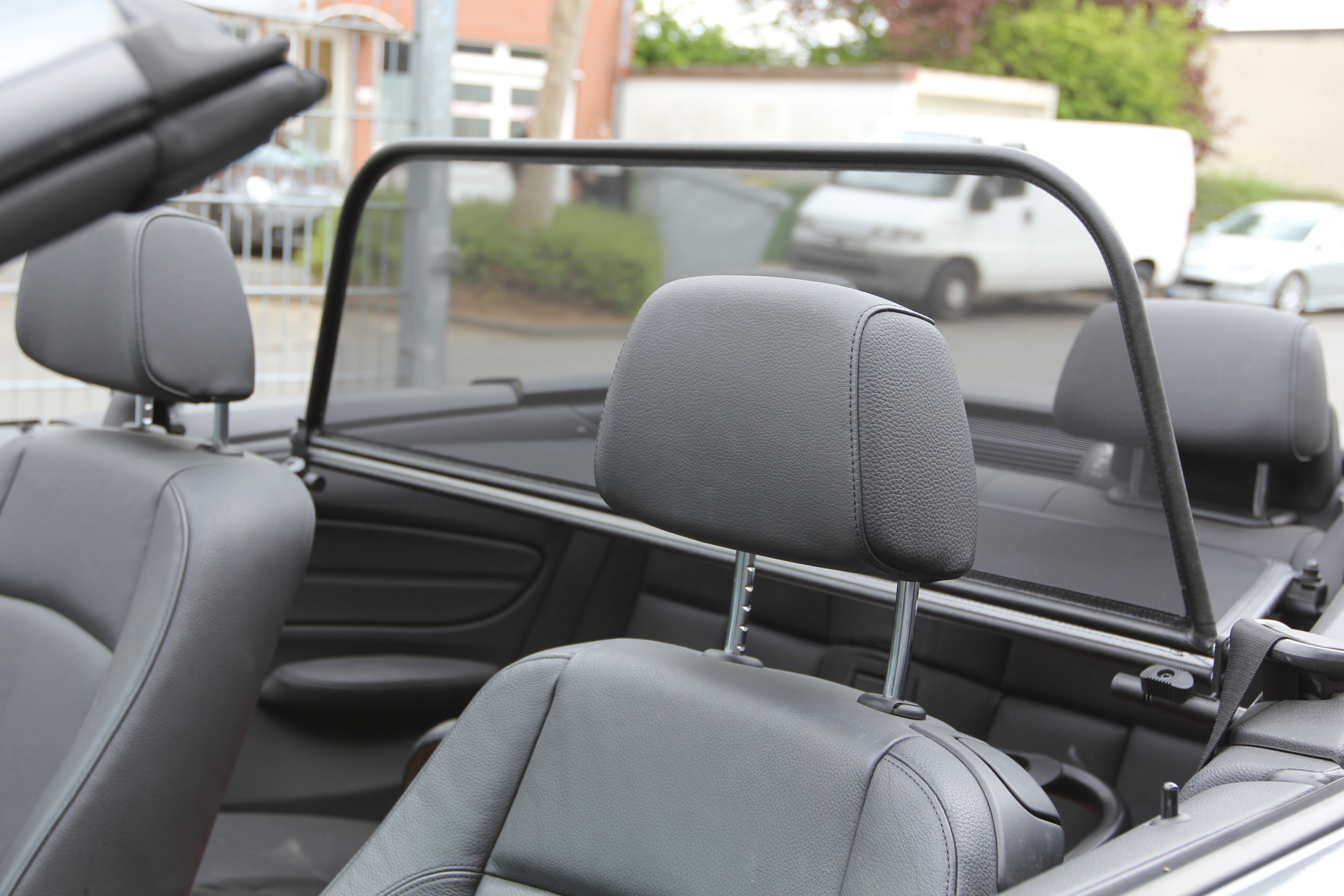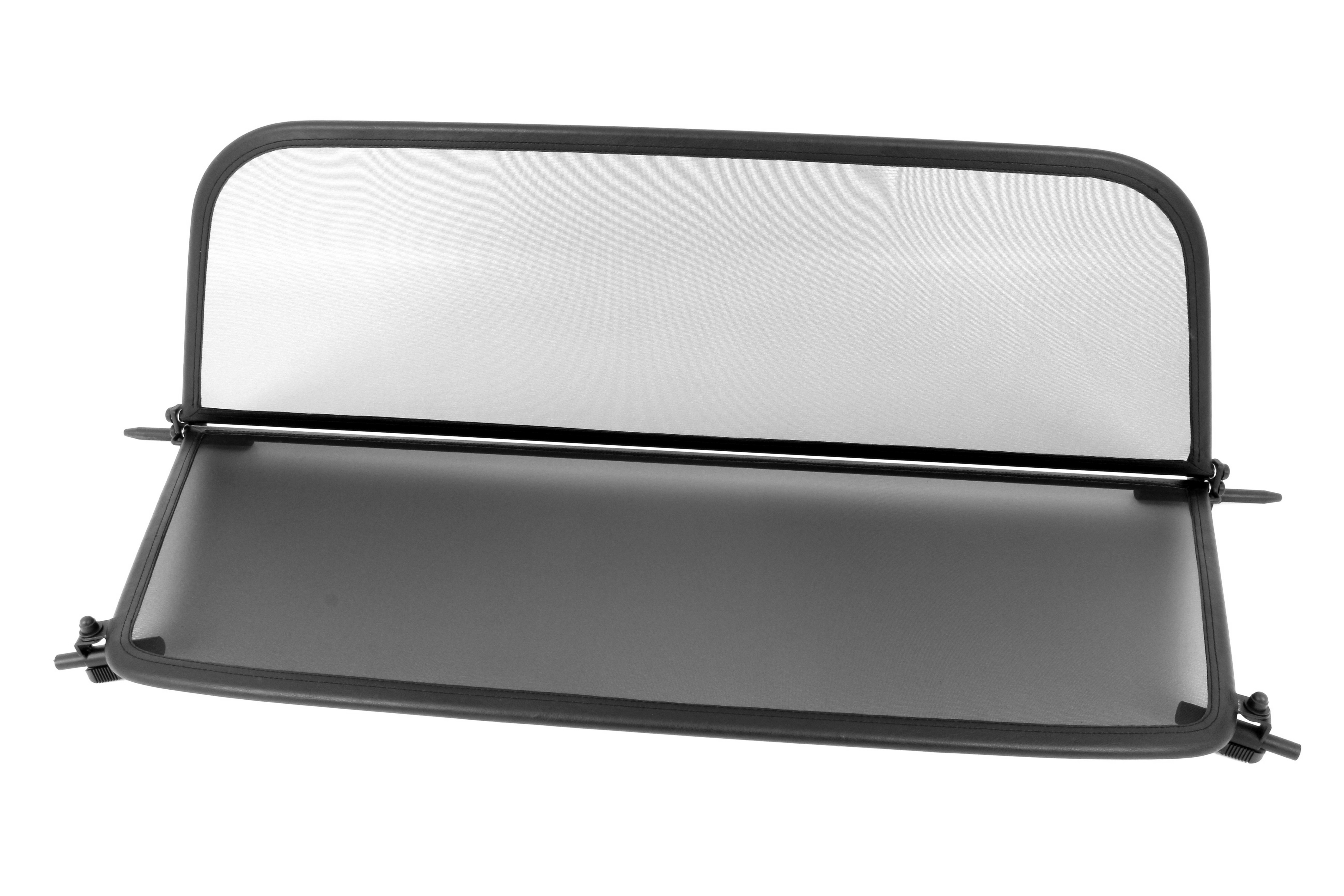 ¿Pero qué es exactamente un deflector de viento? Un deflector de viento en la versión simple es un bastidor de tubos de acero forrado con red y montado detrás de la zona del conductor. Sirve para garantizar que las turbulencias del aire habituales en un descapotable se desvíen a través del interior del vehículo. Los bastidores de los deflectores de viento están hechos de tubos de acero de alta calidad, curvados según el grosor específico del modelo, soldados cuidadosamente y cosidos con cuero artificial muy resistente a la intemperie. Para la red utilizamos un tejido mixto de nylon-poliéster de alta calidad, que se distingue por su alta resistencia a la tracción y a los rayos UV. Incluso el personal no especializado puede montar en pocos minutos el conjunto de red y del bastidor con sus accesorios y piezas de sujeción correspondientes.