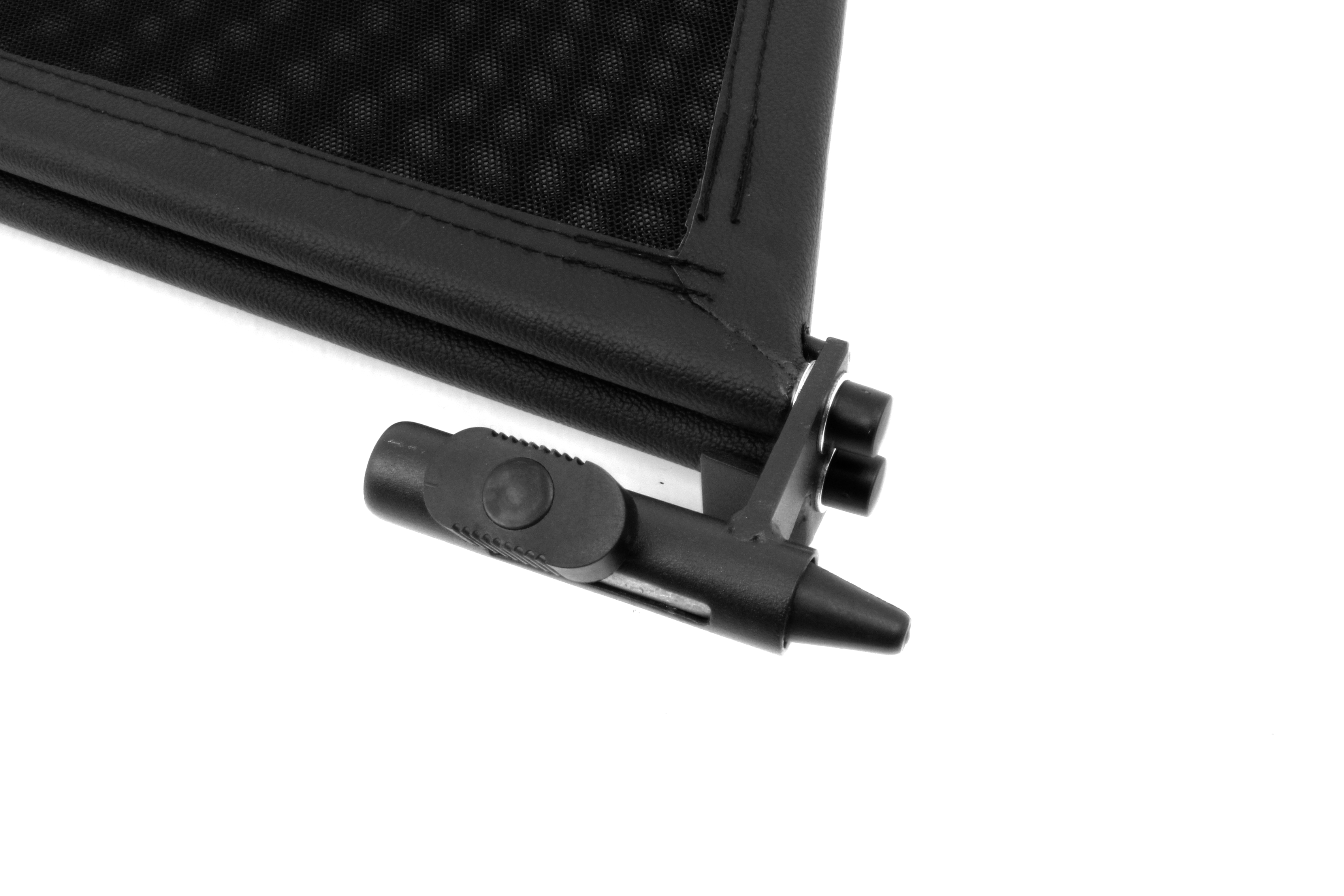 ¿Pero qué es exactamente un deflector de viento? Un deflector de viento en la versión simple es un bastidor de tubos de acero forrado con red y montado detrás de la zona del conductor. Sirve para garantizar que las turbulencias del aire habituales en un descapotable se desvíen a través del interior del vehículo. Los bastidores de los deflectores de viento están hechos de tubos de acero de alta calidad, curvados según el grosor específico del modelo, soldados cuidadosamente y cosidos con cuero artificial muy resistente a la intemperie. Para la red utilizamos un tejido mixto de nylon-poliéster de alta calidad, que se distingue por su alta resistencia a la tracción y a los rayos UV. Incluso el personal no especializado puede montar en pocos minutos el conjunto de red y del bastidor con sus accesorios y piezas de sujeción correspondientes.