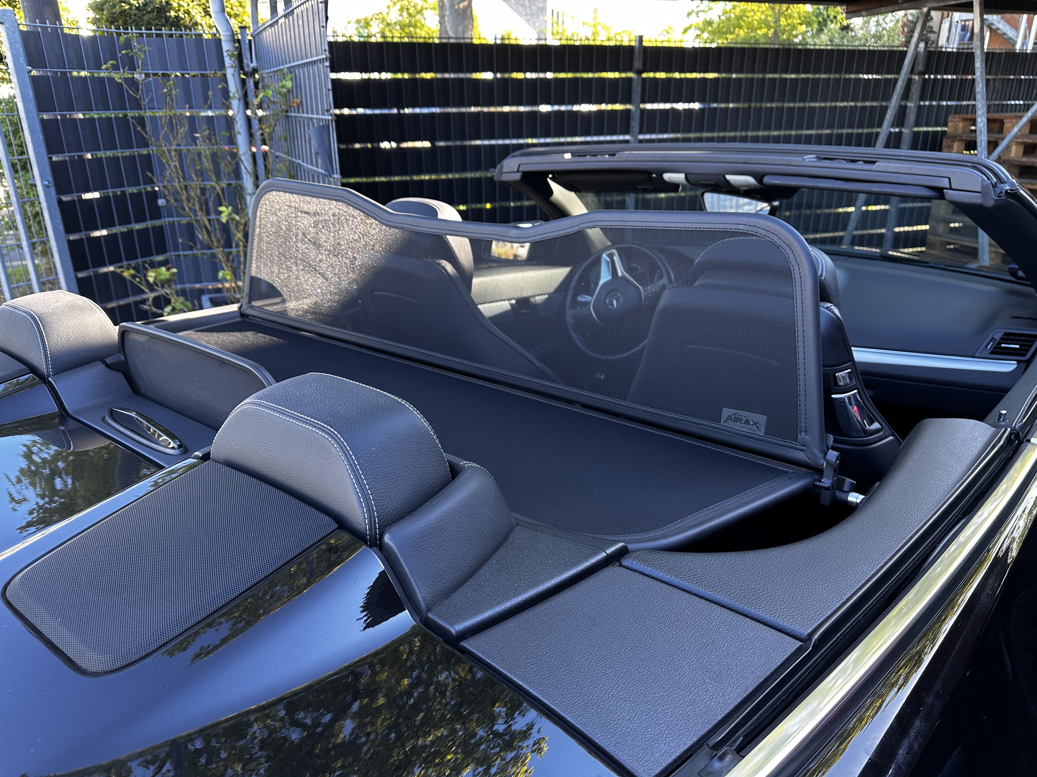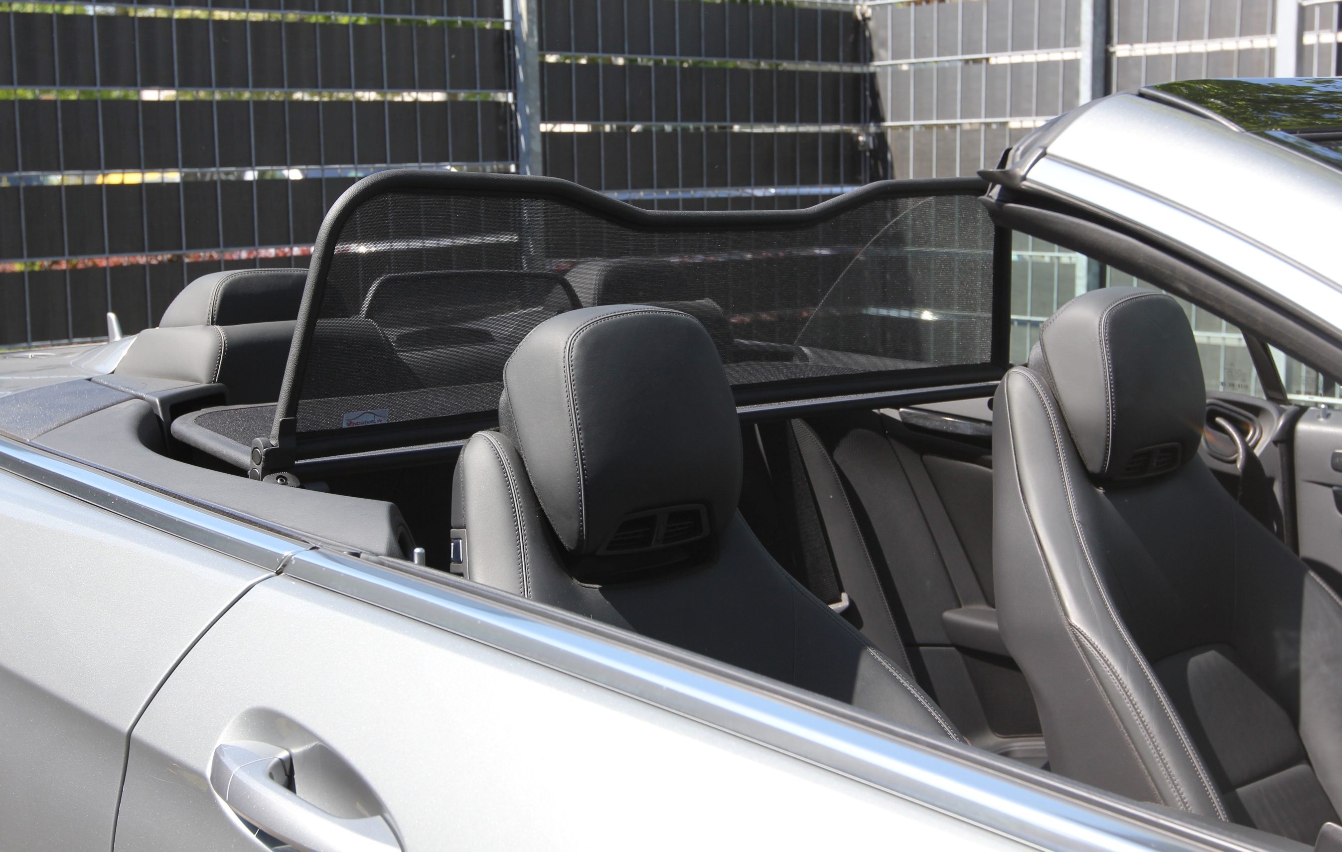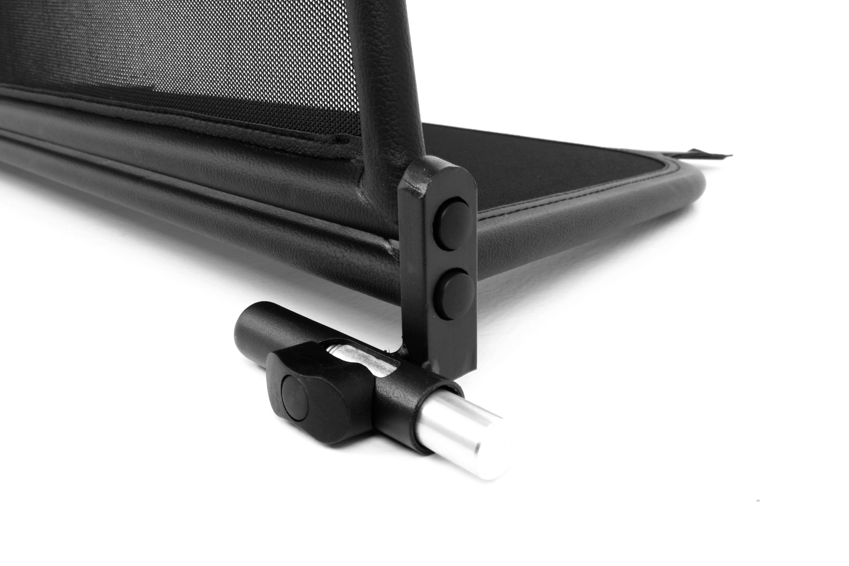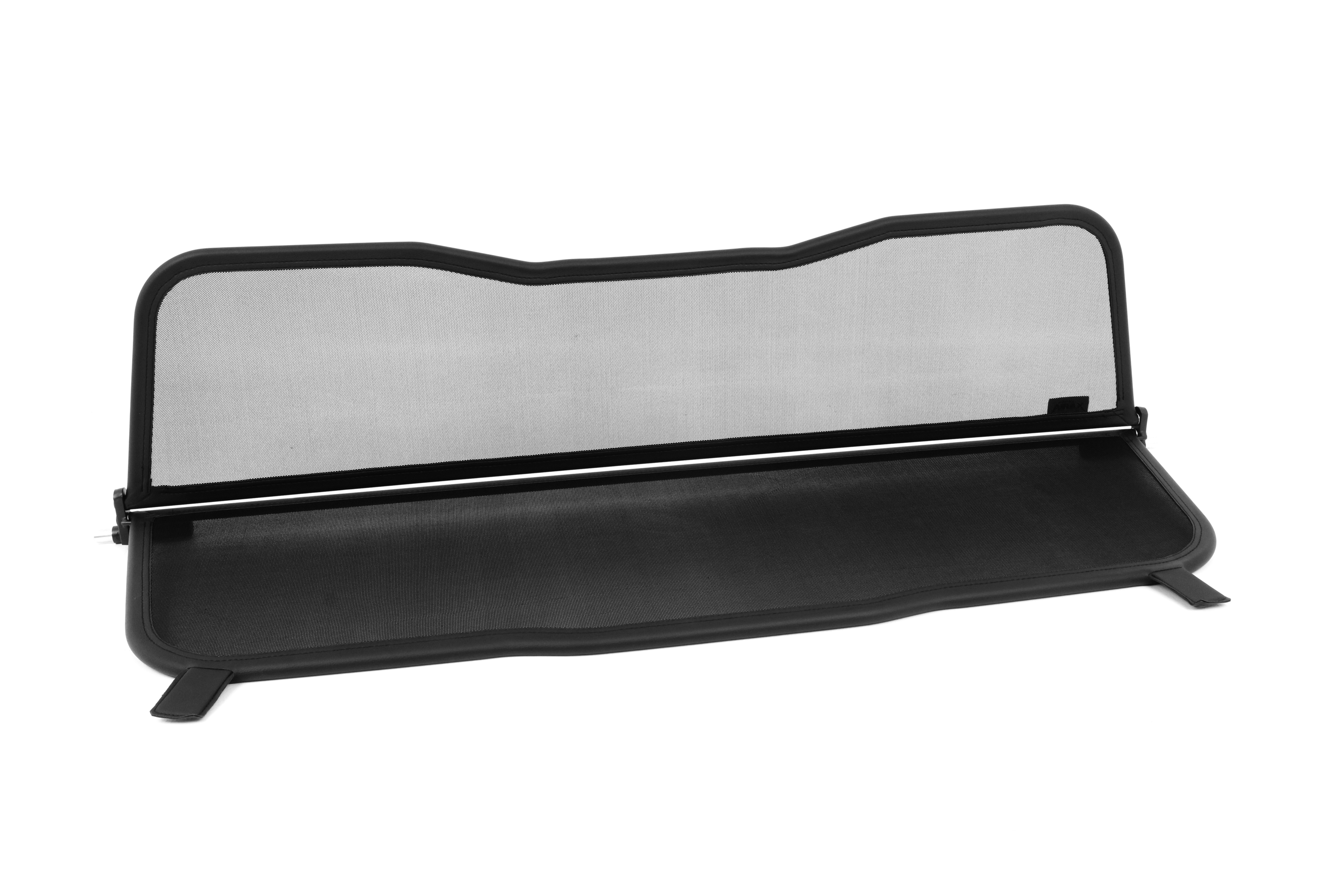 ¿Pero qué es exactamente un deflector de viento? Un deflector de viento en la versión simple es un bastidor de tubos de acero forrado con red y montado detrás de la zona del conductor. Sirve para garantizar que las turbulencias del aire habituales en un descapotable se desvíen a través del interior del vehículo. Los bastidores de los deflectores de viento están hechos de tubos de acero de alta calidad, curvados según el grosor específico del modelo, soldados cuidadosamente y cosidos con cuero artificial muy resistente a la intemperie. Para la red utilizamos un tejido mixto de nylon-poliéster de alta calidad, que se distingue por su alta resistencia a la tracción y a los rayos UV. Incluso el personal no especializado puede montar en pocos minutos el conjunto de red y del bastidor con sus accesorios y piezas de sujeción correspondientes.