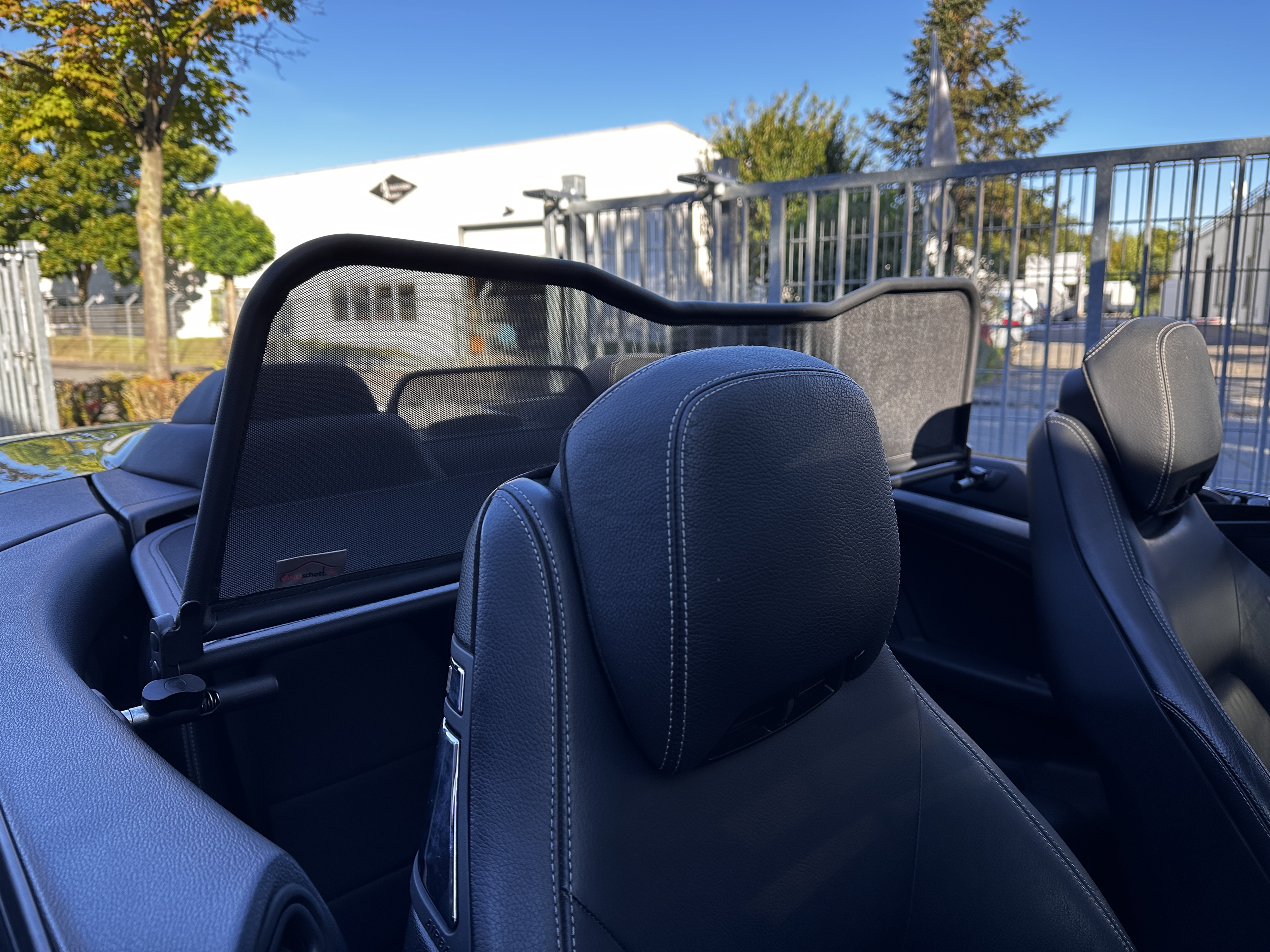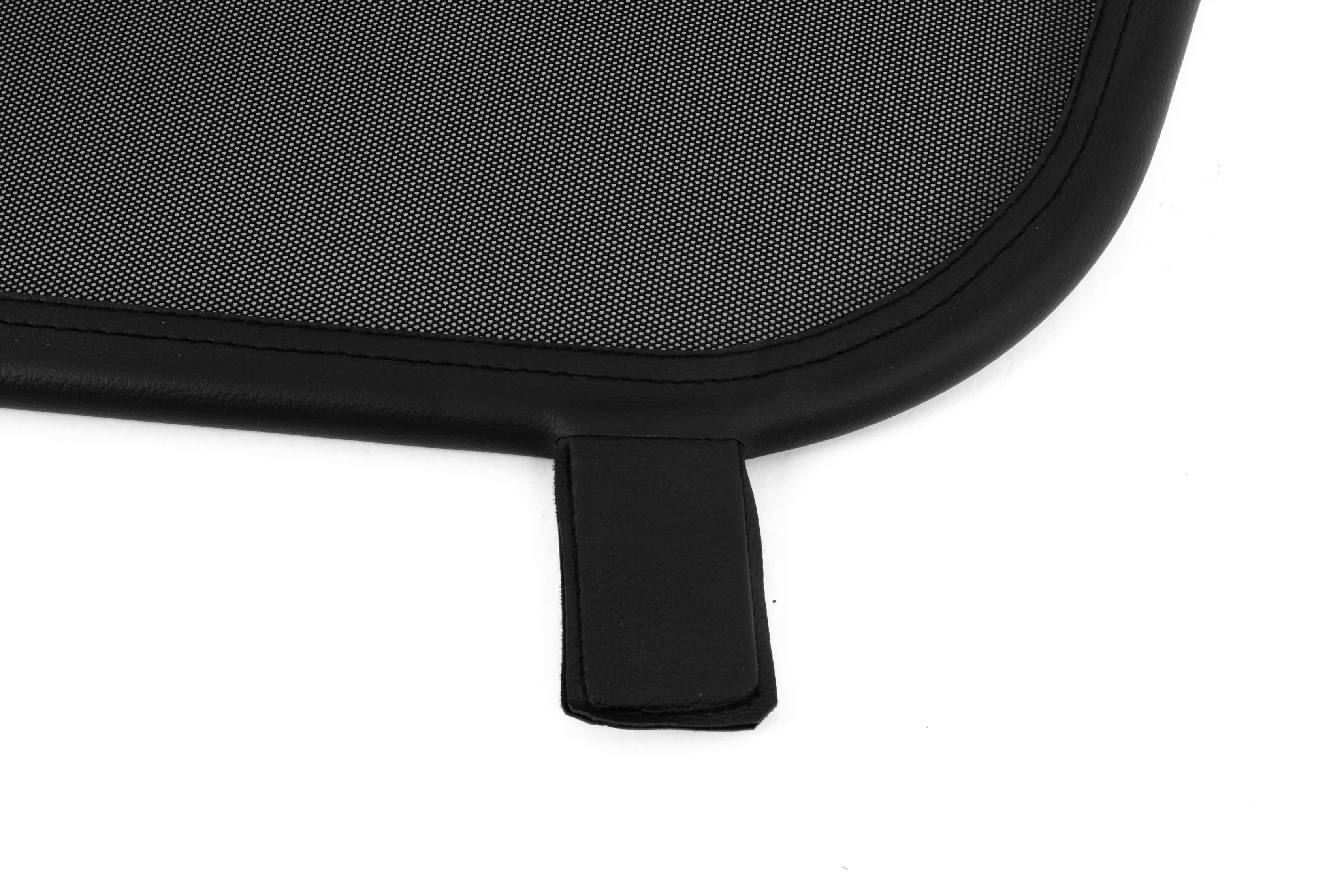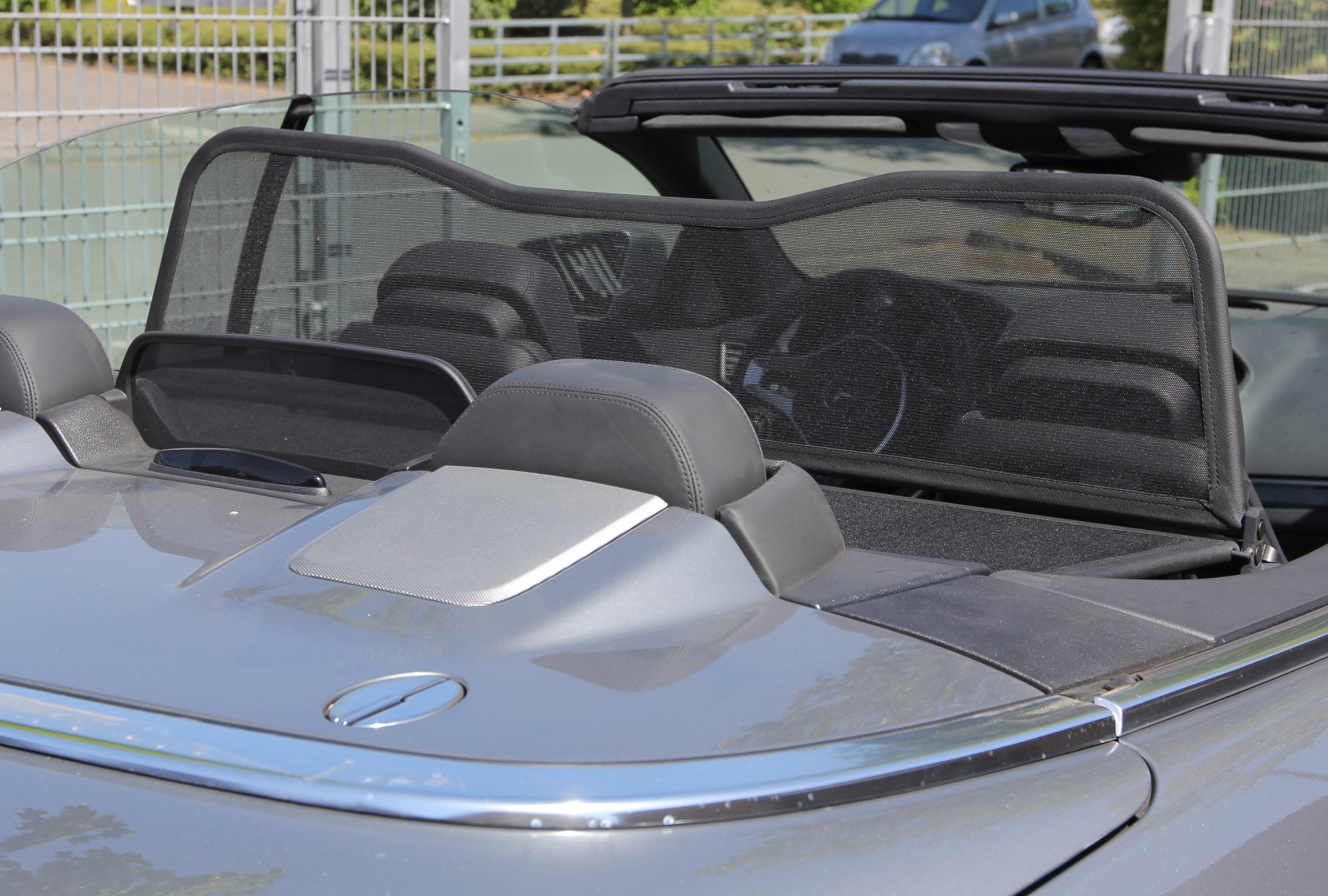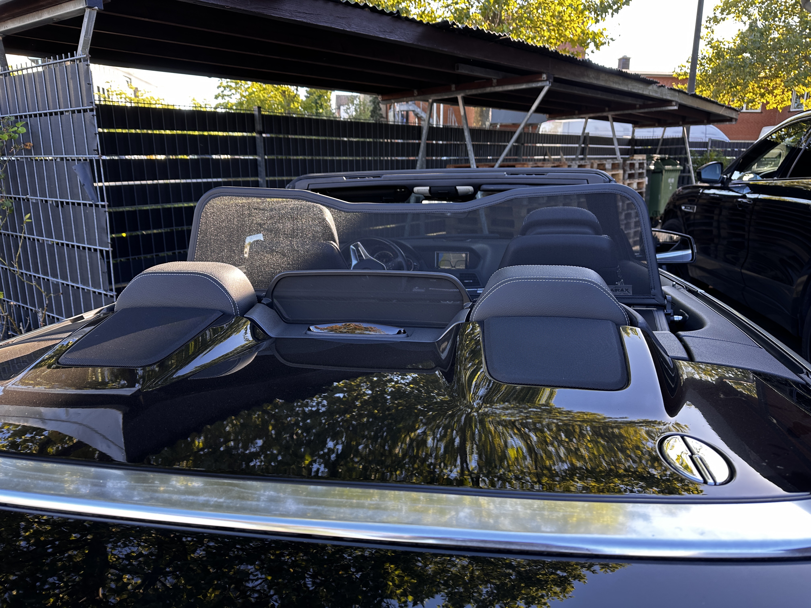 ¿Pero qué es exactamente un deflector de viento? Un deflector de viento en la versión simple es un bastidor de tubos de acero forrado con red y montado detrás de la zona del conductor. Sirve para garantizar que las turbulencias del aire habituales en un descapotable se desvíen a través del interior del vehículo. Los bastidores de los deflectores de viento están hechos de tubos de acero de alta calidad, curvados según el grosor específico del modelo, soldados cuidadosamente y cosidos con cuero artificial muy resistente a la intemperie. Para la red utilizamos un tejido mixto de nylon-poliéster de alta calidad, que se distingue por su alta resistencia a la tracción y a los rayos UV. Incluso el personal no especializado puede montar en pocos minutos el conjunto de red y del bastidor con sus accesorios y piezas de sujeción correspondientes.
