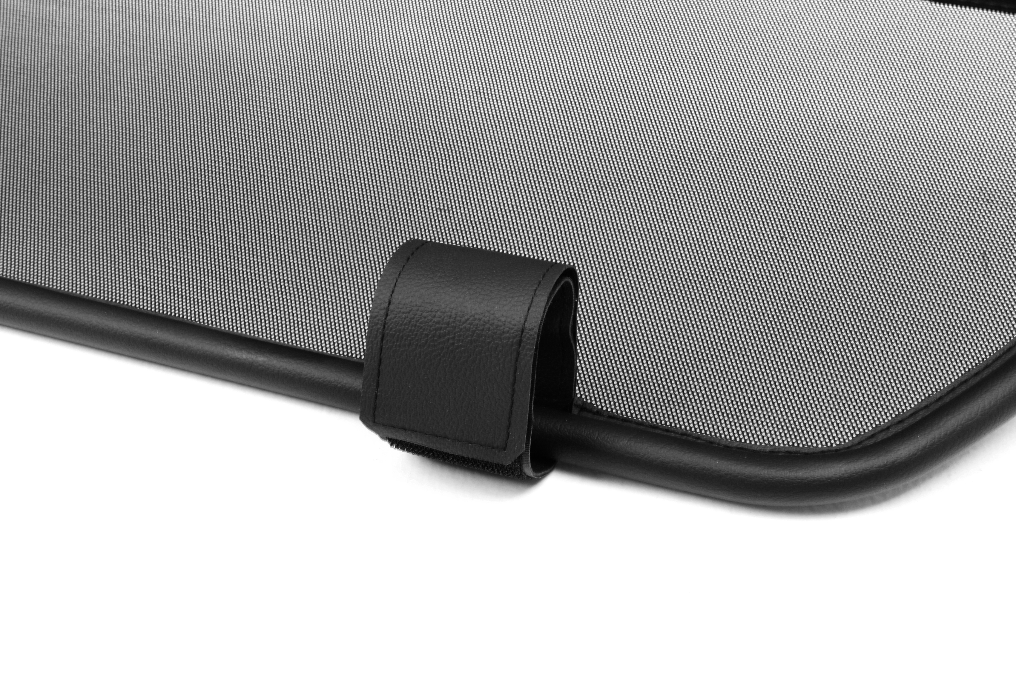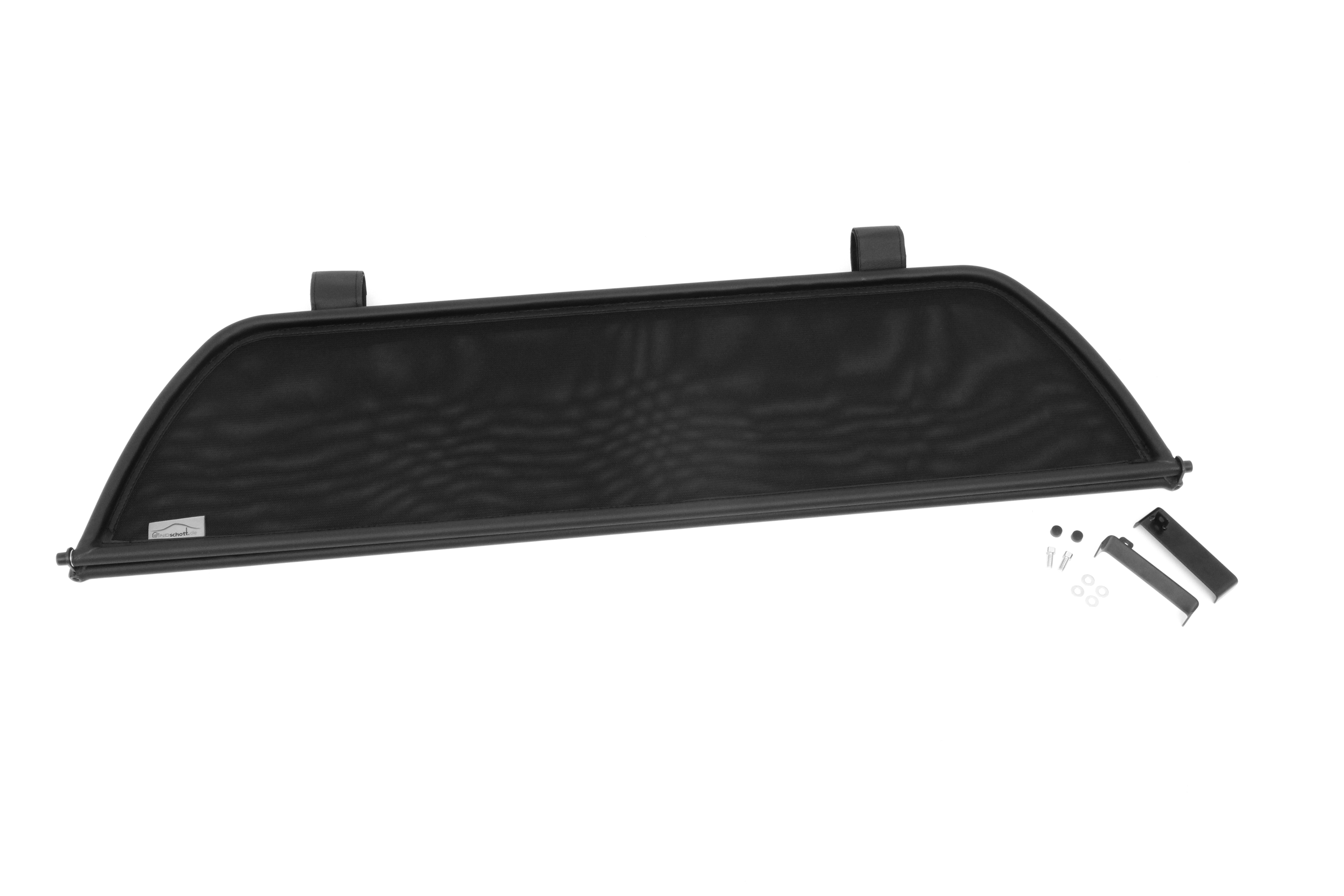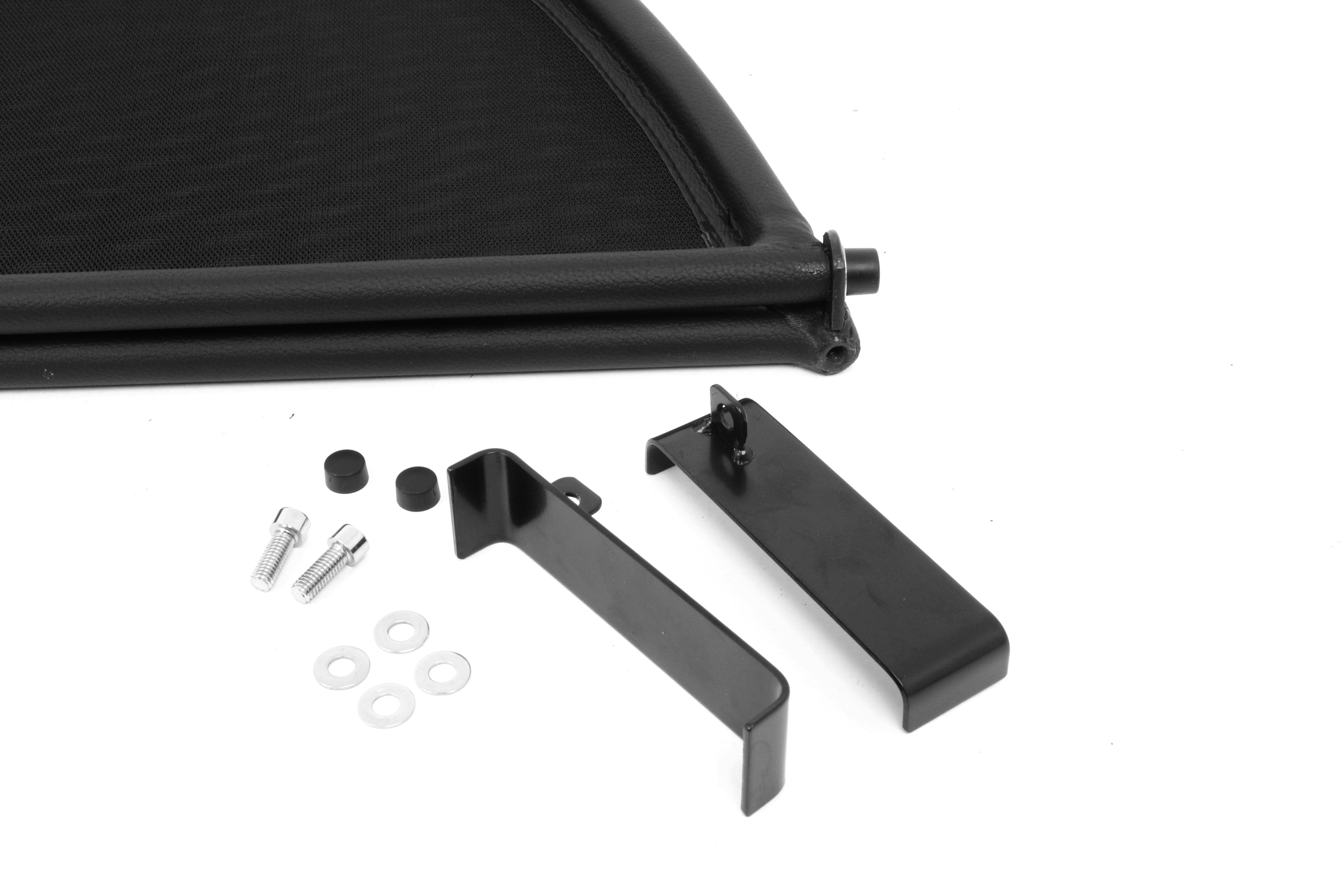 ¿Pero qué es exactamente un deflector de viento? Un deflector de viento en la versión simple es un bastidor de tubos de acero forrado con red y montado detrás de la zona del conductor. Sirve para garantizar que las turbulencias del aire habituales en un descapotable se desvíen a través del interior del vehículo. Los bastidores de los deflectores de viento están hechos de tubos de acero de alta calidad, curvados según el grosor específico del modelo, soldados cuidadosamente y cosidos con cuero artificial muy resistente a la intemperie. Para la red utilizamos un tejido mixto de nylon-poliéster de alta calidad, que se distingue por su alta resistencia a la tracción y a los rayos UV. Incluso el personal no especializado puede montar en pocos minutos el conjunto de red y del bastidor con sus accesorios y piezas de sujeción correspondientes.