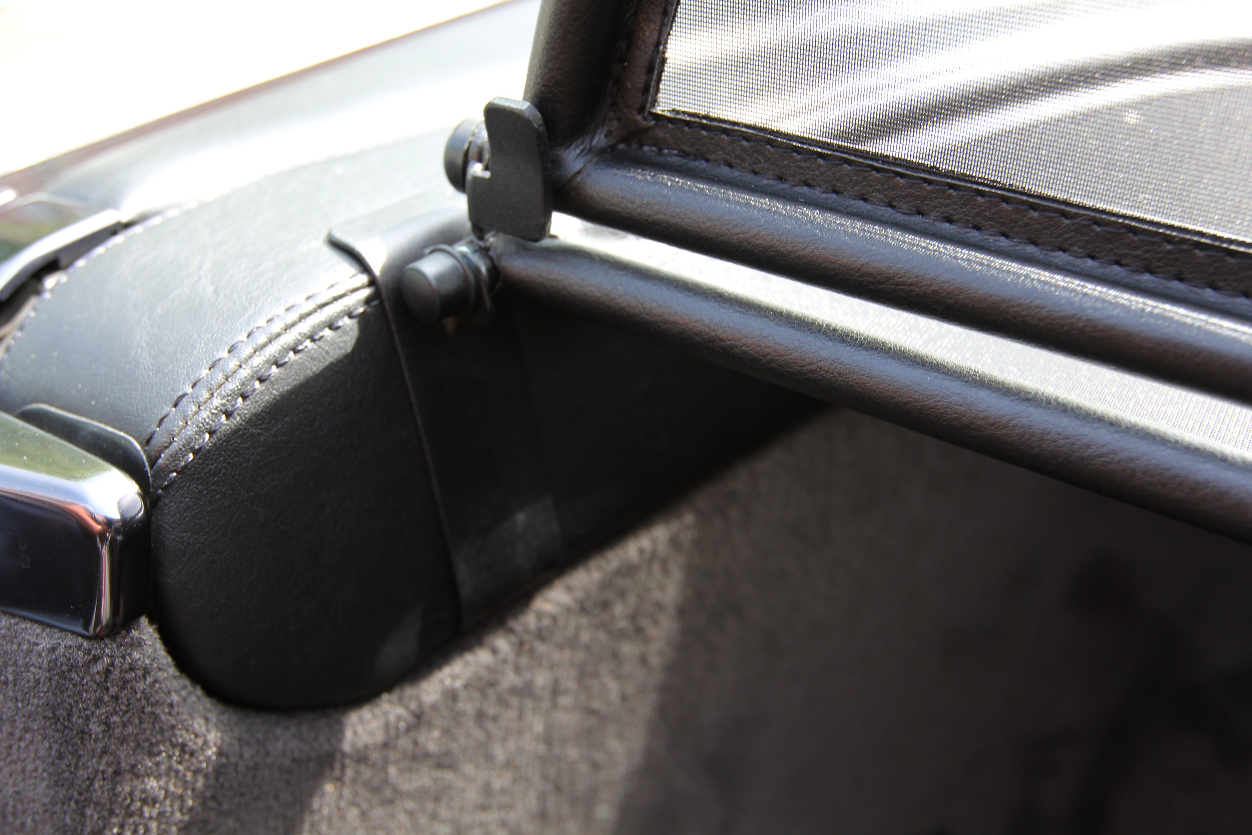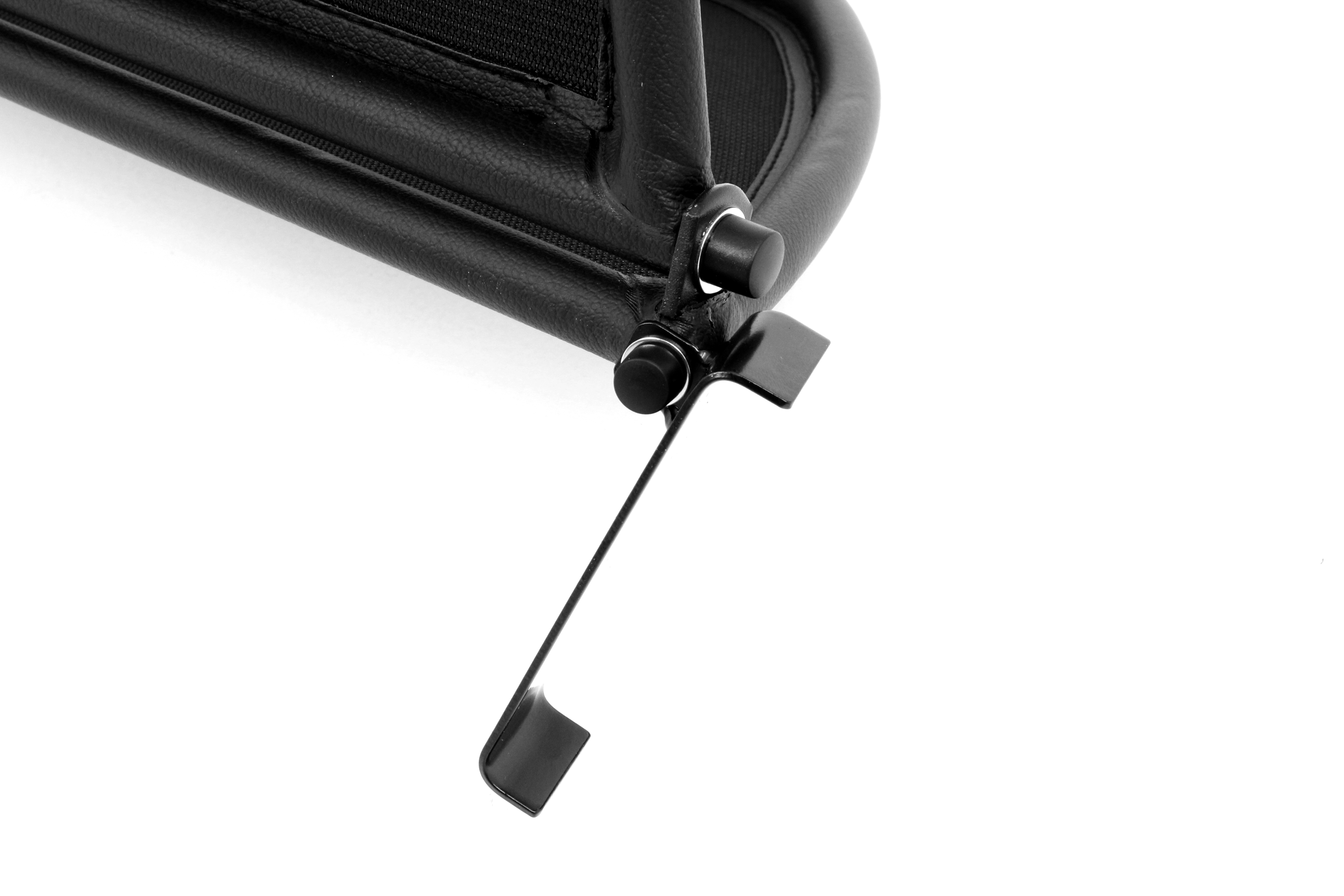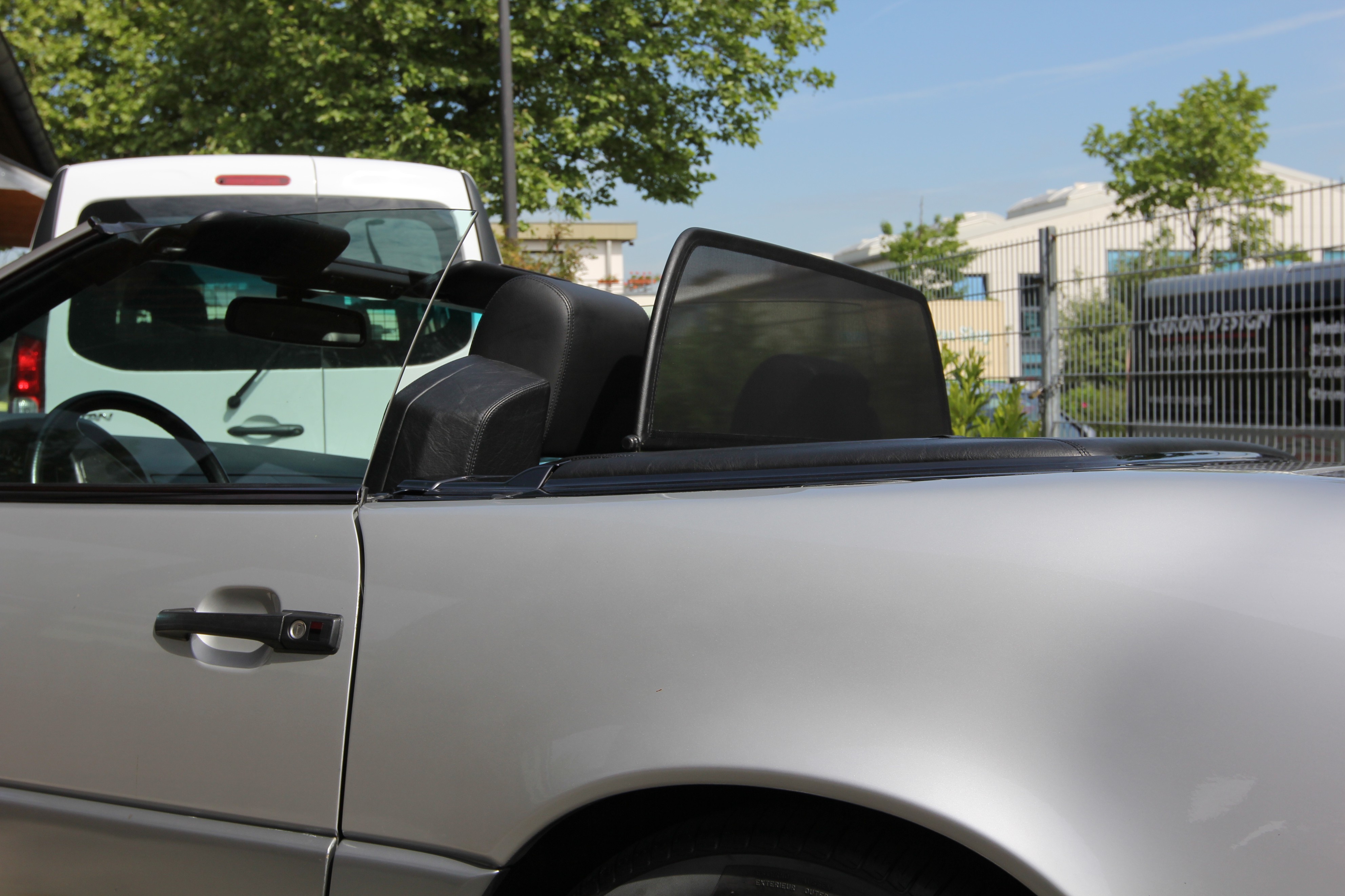 ¿Pero qué es exactamente un deflector de viento? Un deflector de viento en la versión simple es un bastidor de tubos de acero forrado con red y montado detrás de la zona del conductor. Sirve para garantizar que las turbulencias del aire habituales en un descapotable se desvíen a través del interior del vehículo. Los bastidores de los deflectores de viento están hechos de tubos de acero de alta calidad, curvados según el grosor específico del modelo, soldados cuidadosamente y cosidos con cuero artificial muy resistente a la intemperie. Para la red utilizamos un tejido mixto de nylon-poliéster de alta calidad, que se distingue por su alta resistencia a la tracción y a los rayos UV. Incluso el personal no especializado puede montar en pocos minutos el conjunto de red y del bastidor con sus accesorios y piezas de sujeción correspondientes.