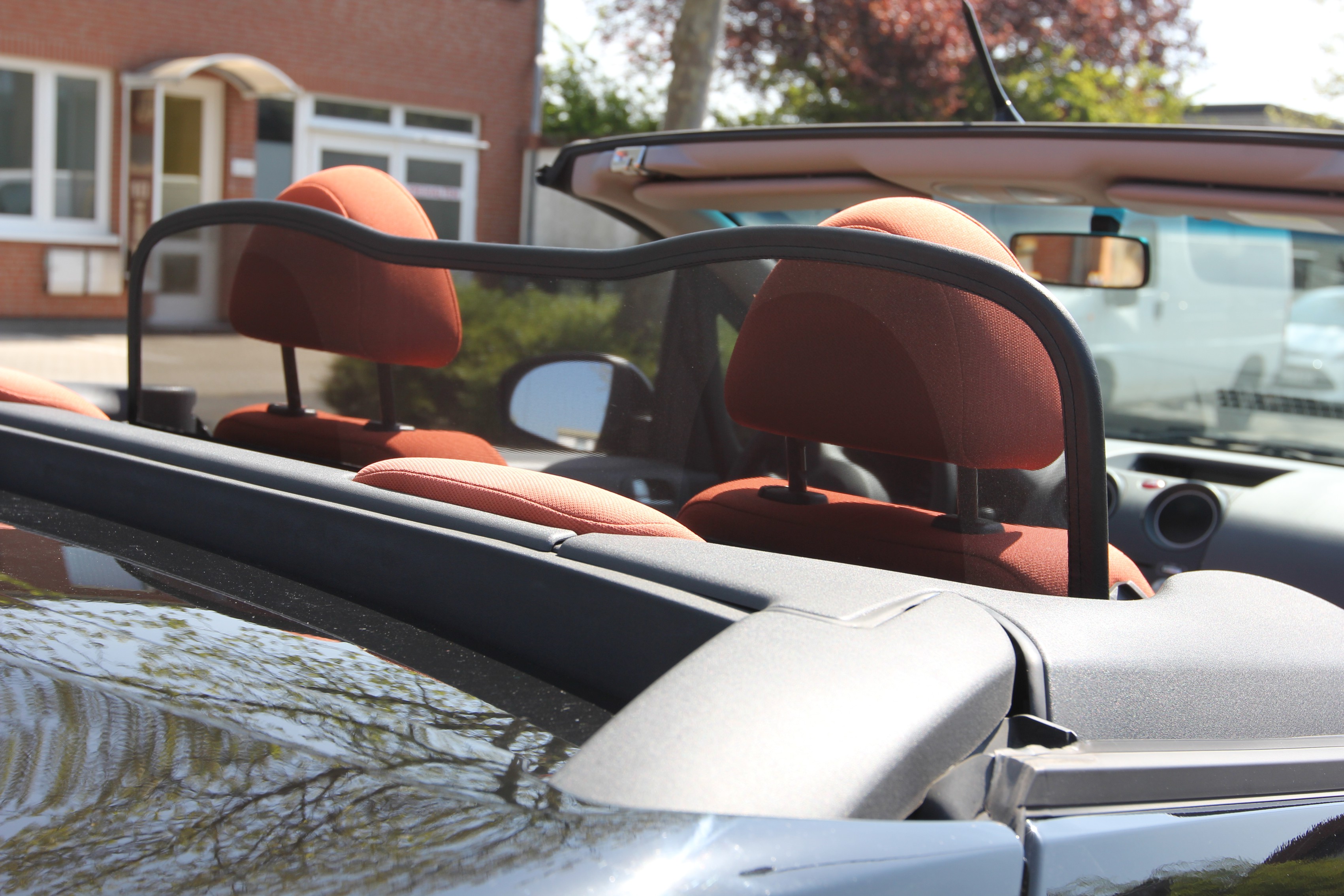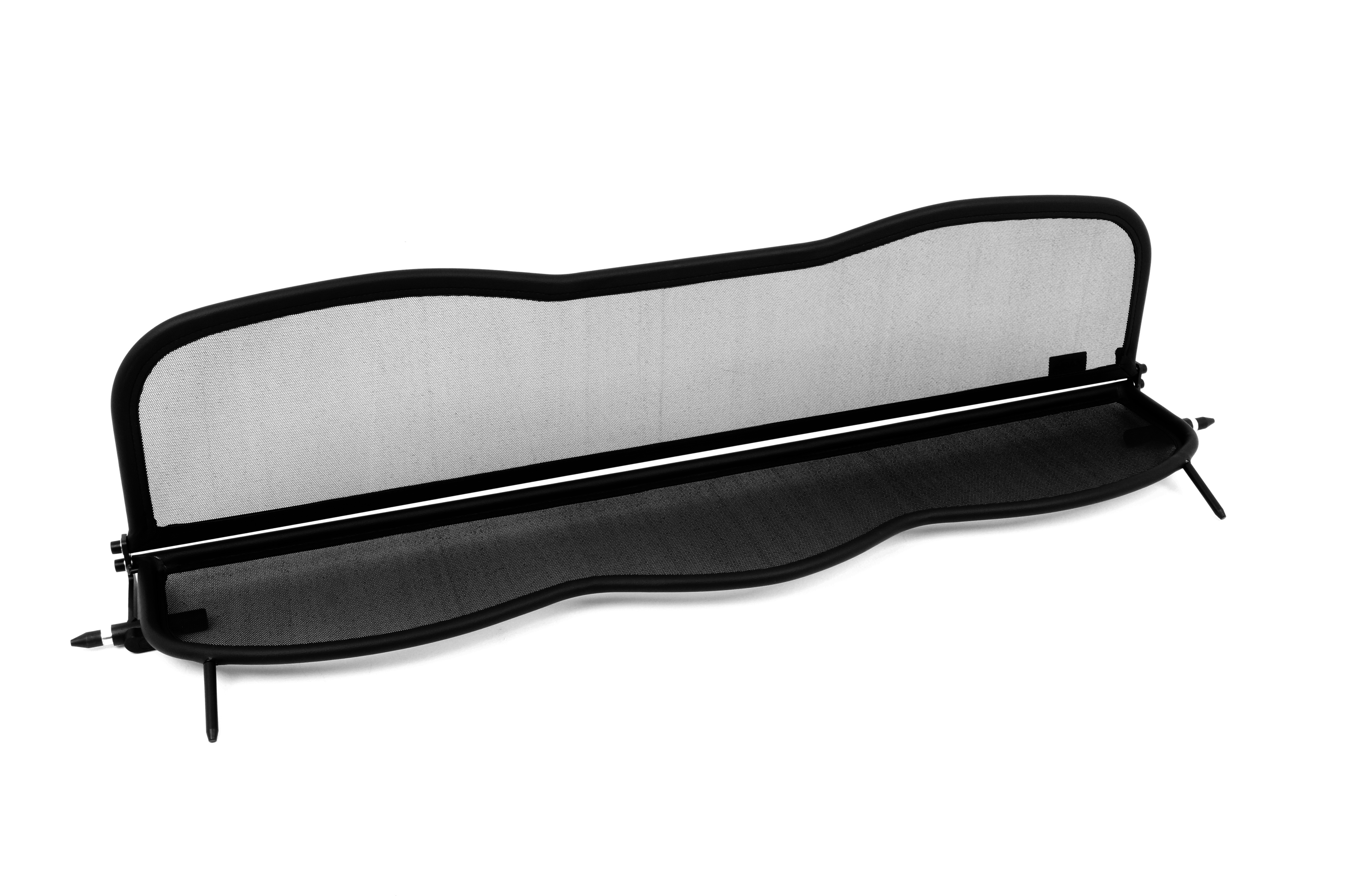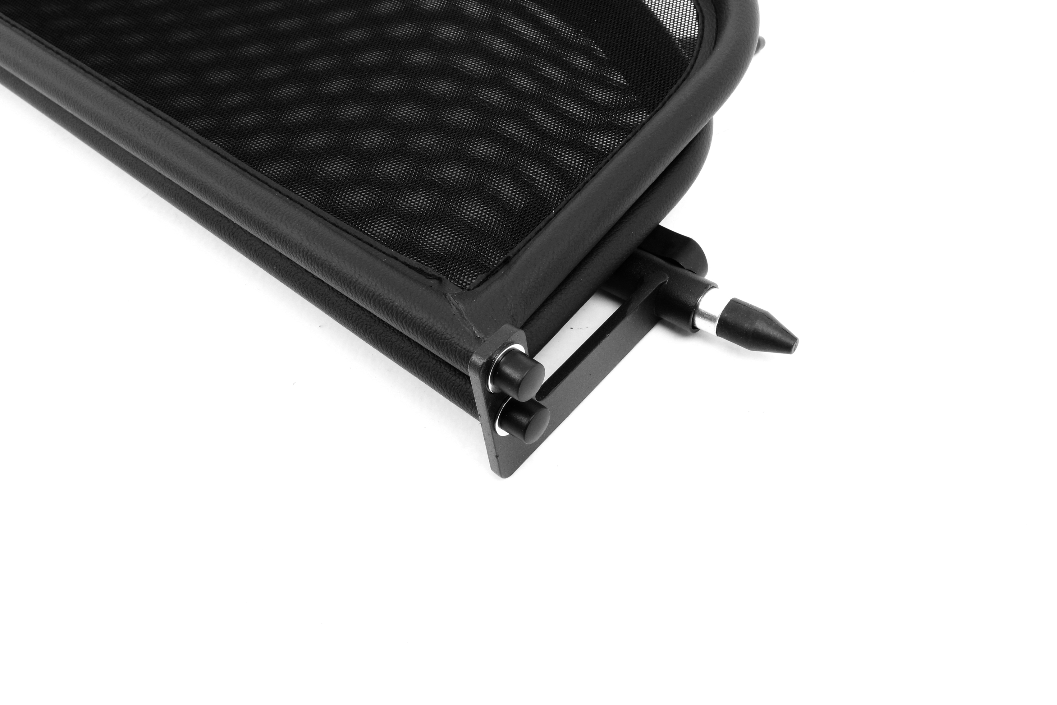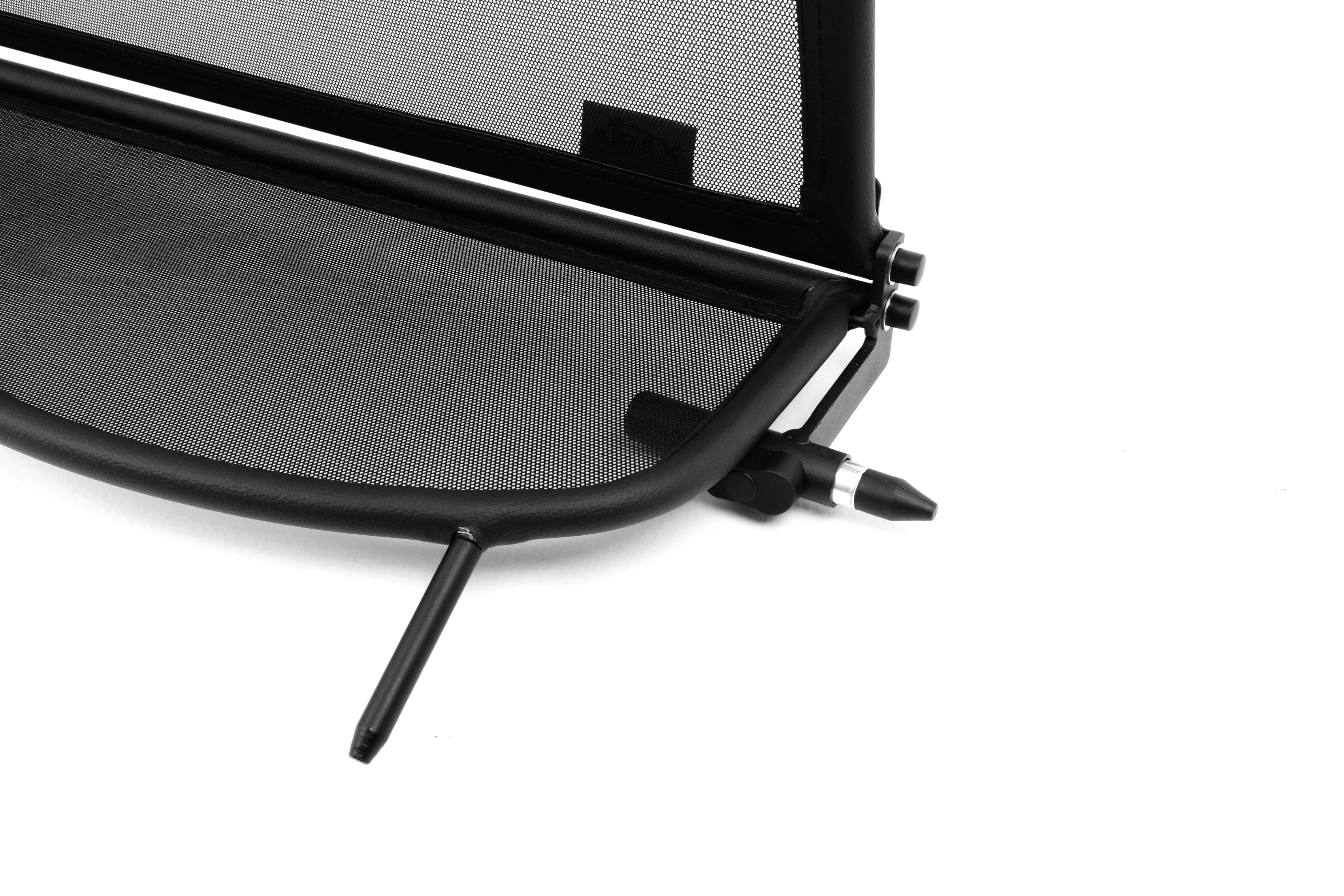 ¿Pero qué es exactamente un deflector de viento? Un deflector de viento en la versión simple es un bastidor de tubos de acero forrado con red y montado detrás de la zona del conductor. Sirve para garantizar que las turbulencias del aire habituales en un descapotable se desvíen a través del interior del vehículo. Los bastidores de los deflectores de viento están hechos de tubos de acero de alta calidad, curvados según el grosor específico del modelo, soldados cuidadosamente y cosidos con cuero artificial muy resistente a la intemperie. Para la red utilizamos un tejido mixto de nylon-poliéster de alta calidad, que se distingue por su alta resistencia a la tracción y a los rayos UV. Incluso el personal no especializado puede montar en pocos minutos el conjunto de red y del bastidor con sus accesorios y piezas de sujeción correspondientes.