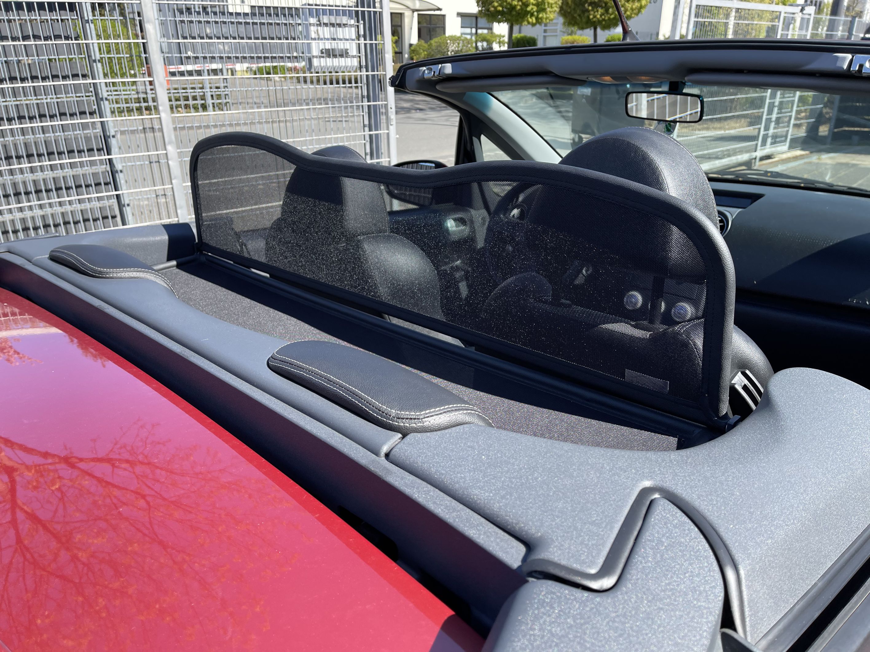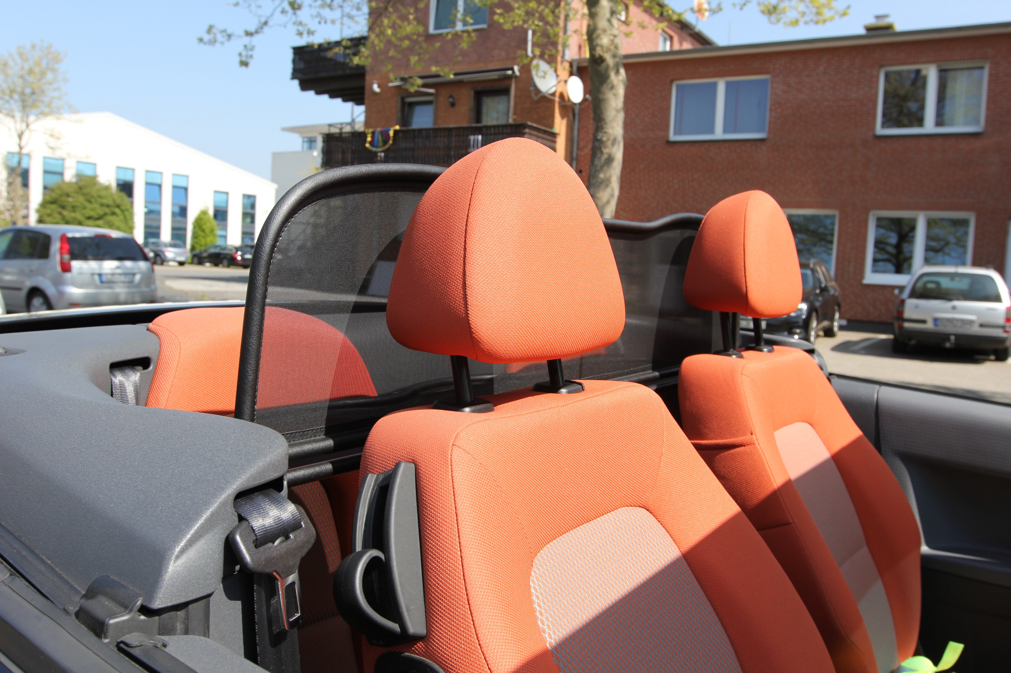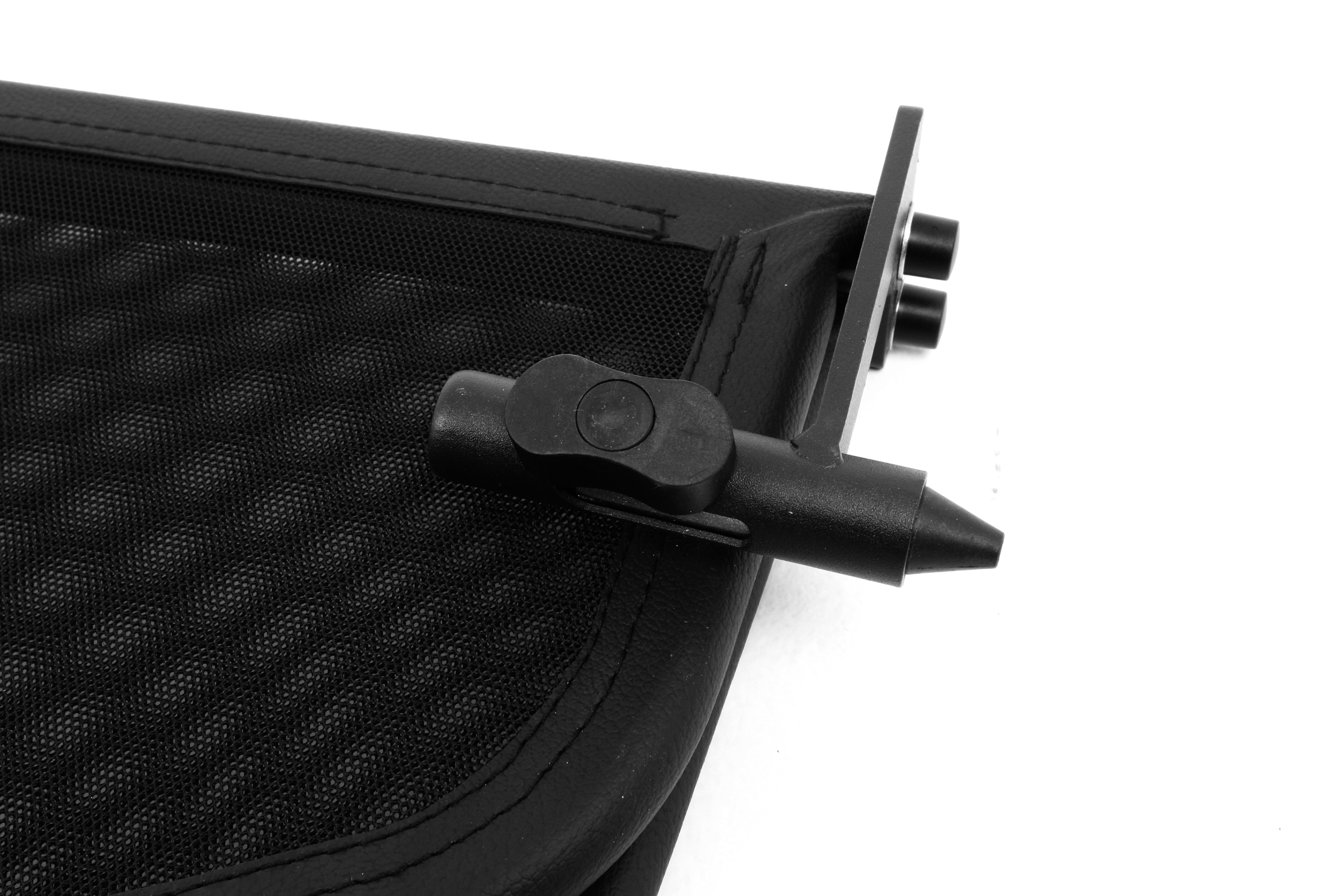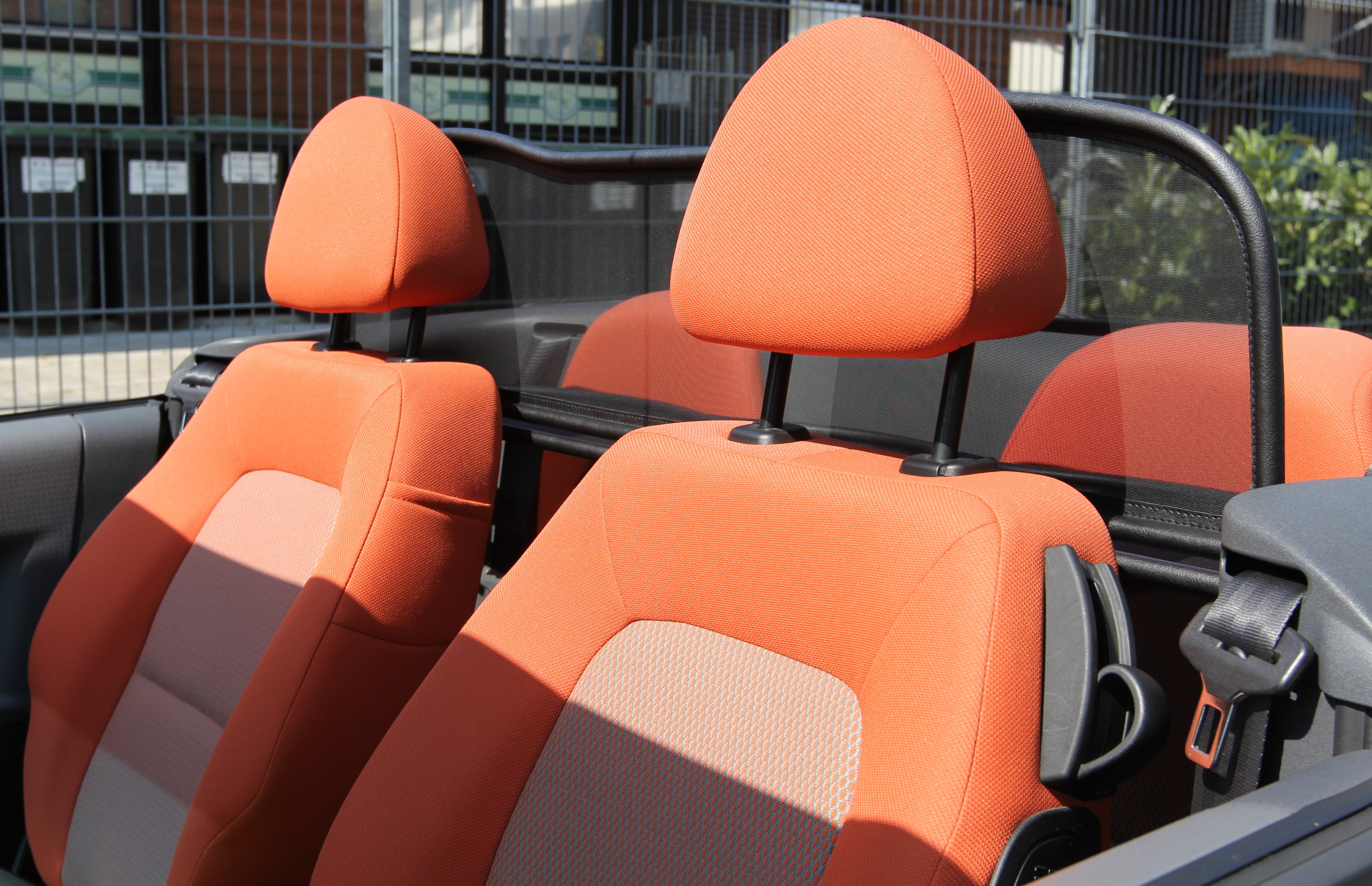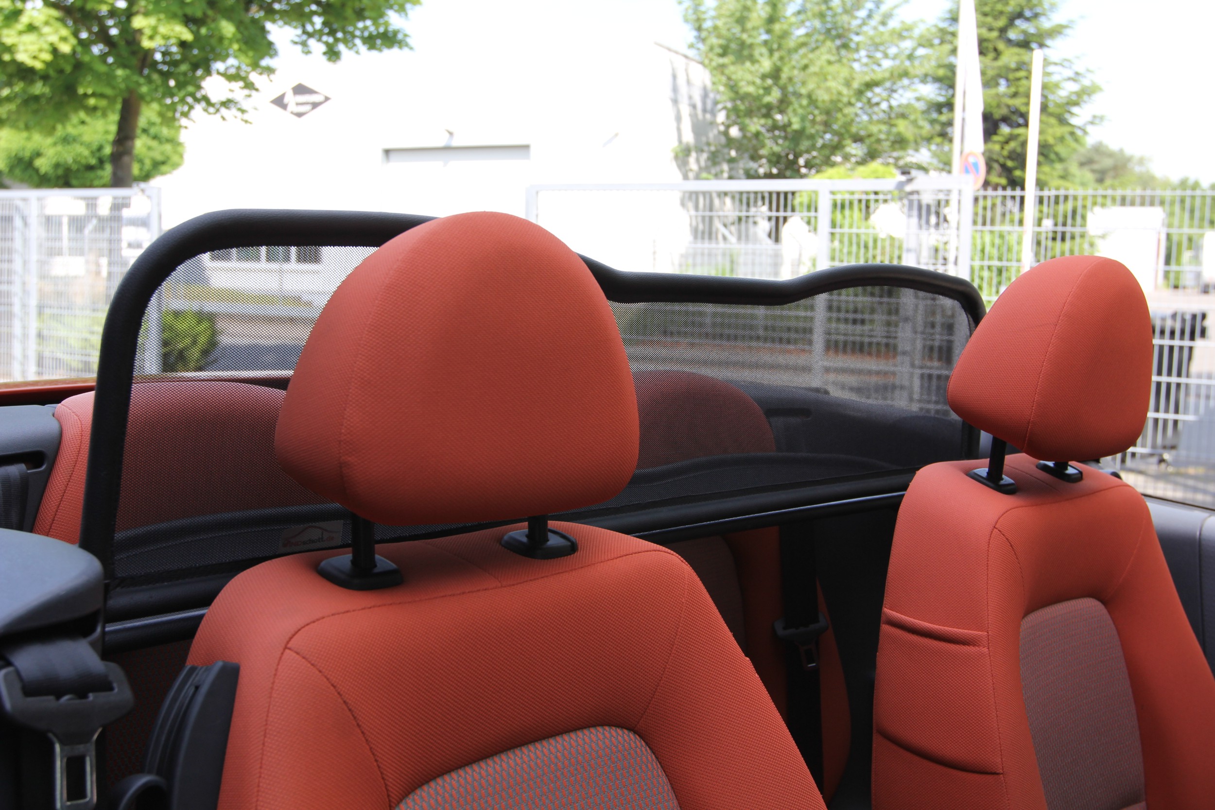 ¿Pero qué es exactamente un deflector de viento? Un deflector de viento en la versión simple es un bastidor de tubos de acero forrado con red y montado detrás de la zona del conductor. Sirve para garantizar que las turbulencias del aire habituales en un descapotable se desvíen a través del interior del vehículo. Los bastidores de los deflectores de viento están hechos de tubos de acero de alta calidad, curvados según el grosor específico del modelo, soldados cuidadosamente y cosidos con cuero artificial muy resistente a la intemperie. Para la red utilizamos un tejido mixto de nylon-poliéster de alta calidad, que se distingue por su alta resistencia a la tracción y a los rayos UV. Incluso el personal no especializado puede montar en pocos minutos el conjunto de red y del bastidor con sus accesorios y piezas de sujeción correspondientes.