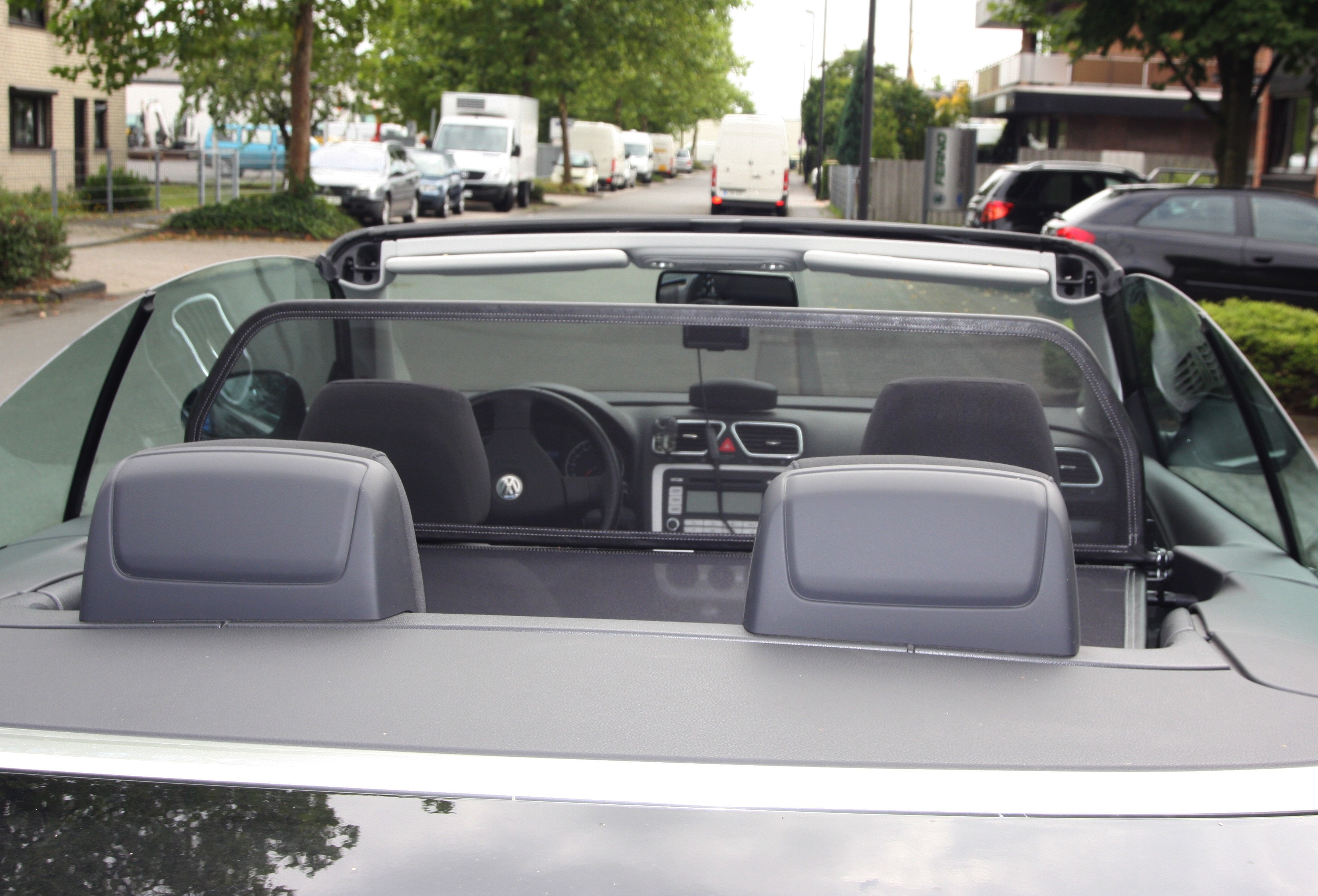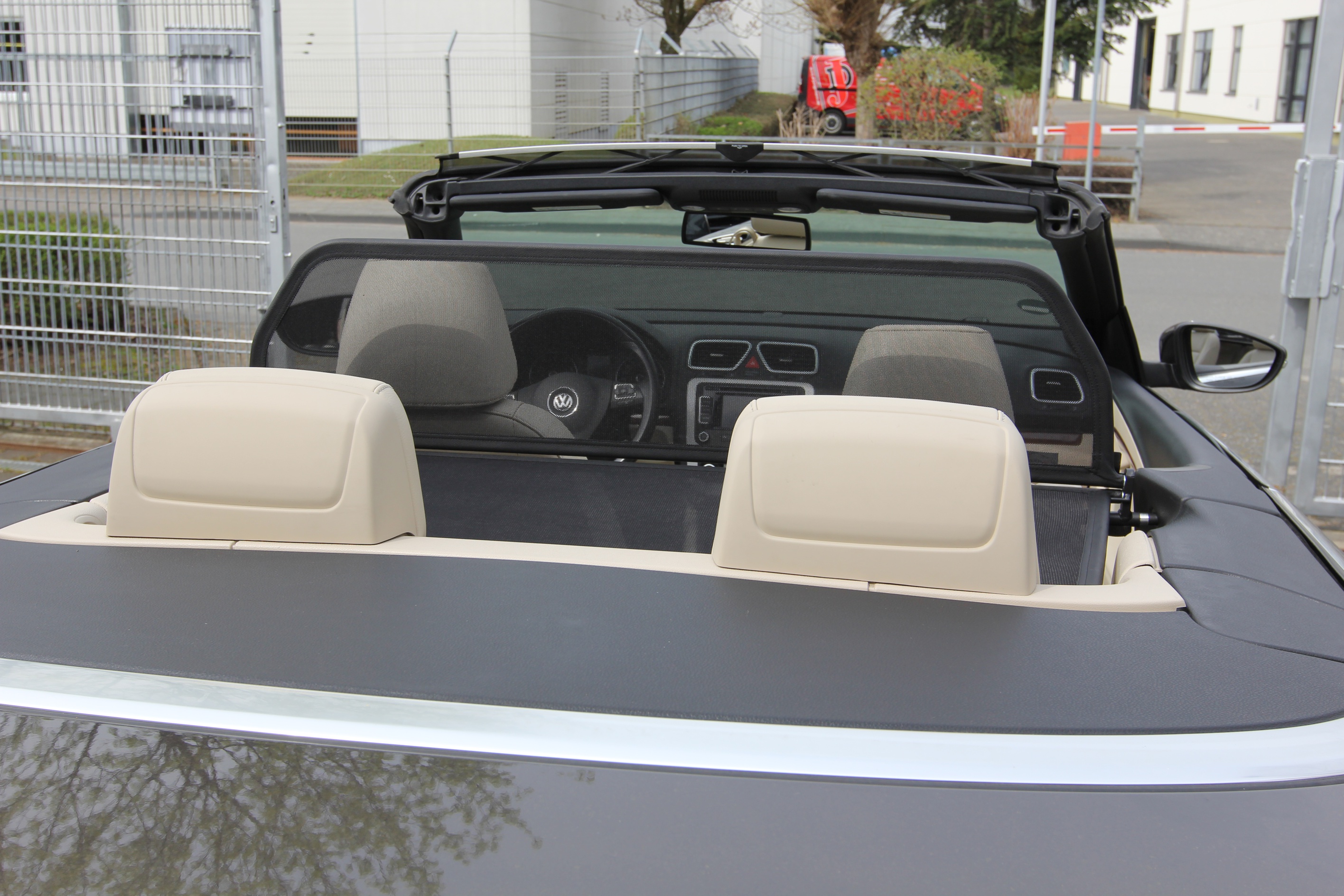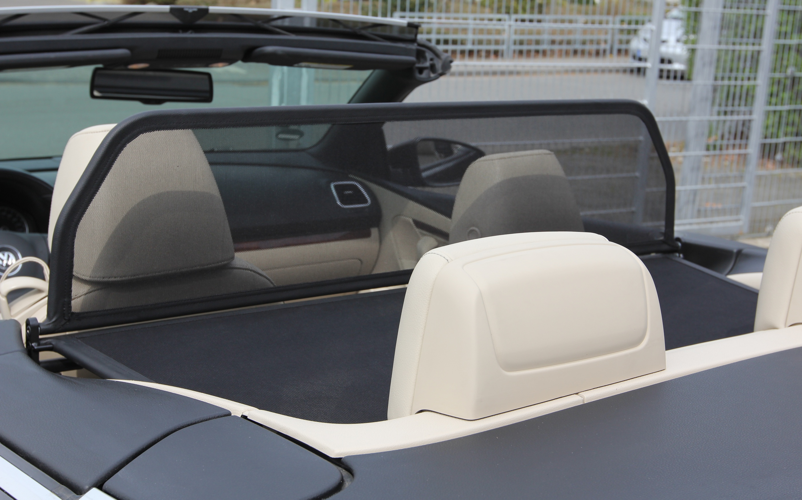 ¿Pero qué es exactamente un deflector de viento? Un deflector de viento en la versión simple es un bastidor de tubos de acero forrado con red y montado detrás de la zona del conductor. Sirve para garantizar que las turbulencias del aire habituales en un descapotable se desvíen a través del interior del vehículo. Los bastidores de los deflectores de viento están hechos de tubos de acero de alta calidad, curvados según el grosor específico del modelo, soldados cuidadosamente y cosidos con cuero artificial muy resistente a la intemperie. Para la red utilizamos un tejido mixto de nylon-poliéster de alta calidad, que se distingue por su alta resistencia a la tracción y a los rayos UV. Incluso el personal no especializado puede montar en pocos minutos el conjunto de red y del bastidor con sus accesorios y piezas de sujeción correspondientes.