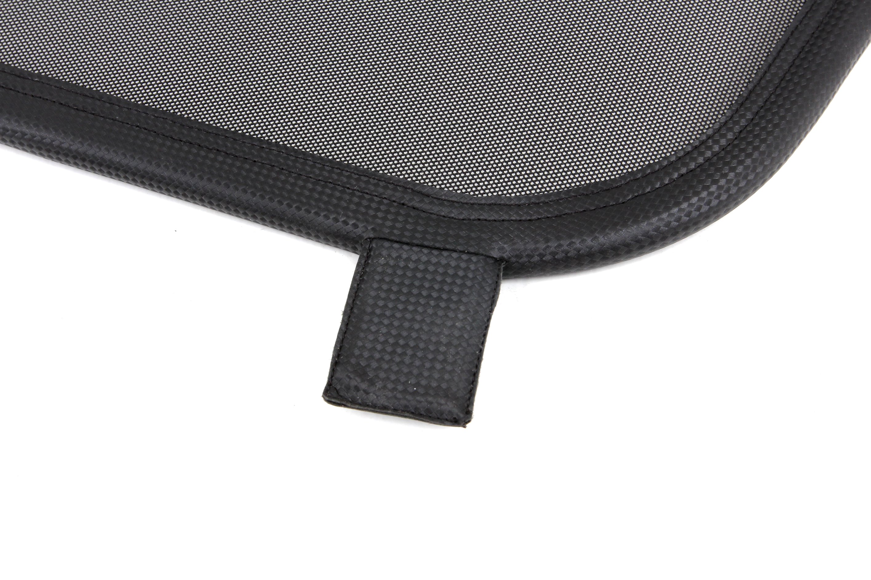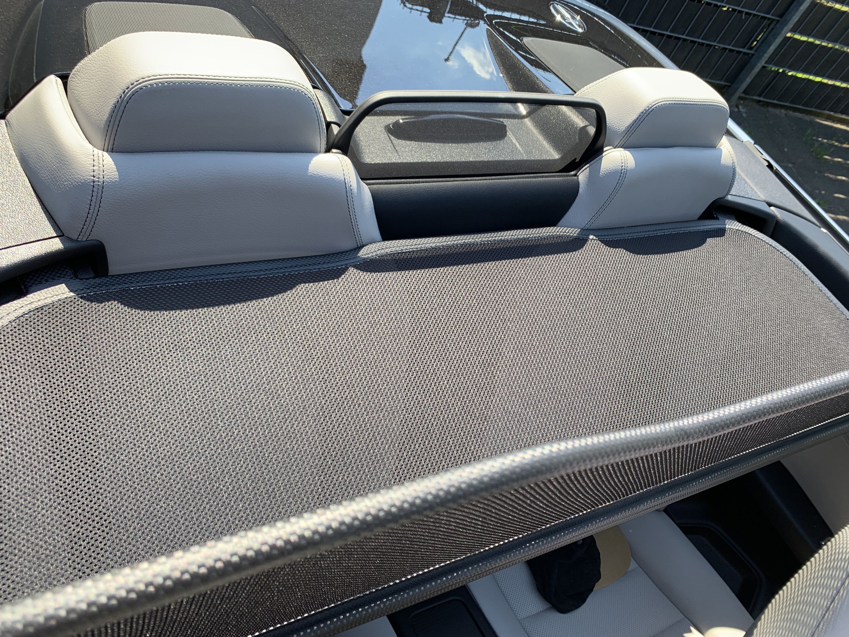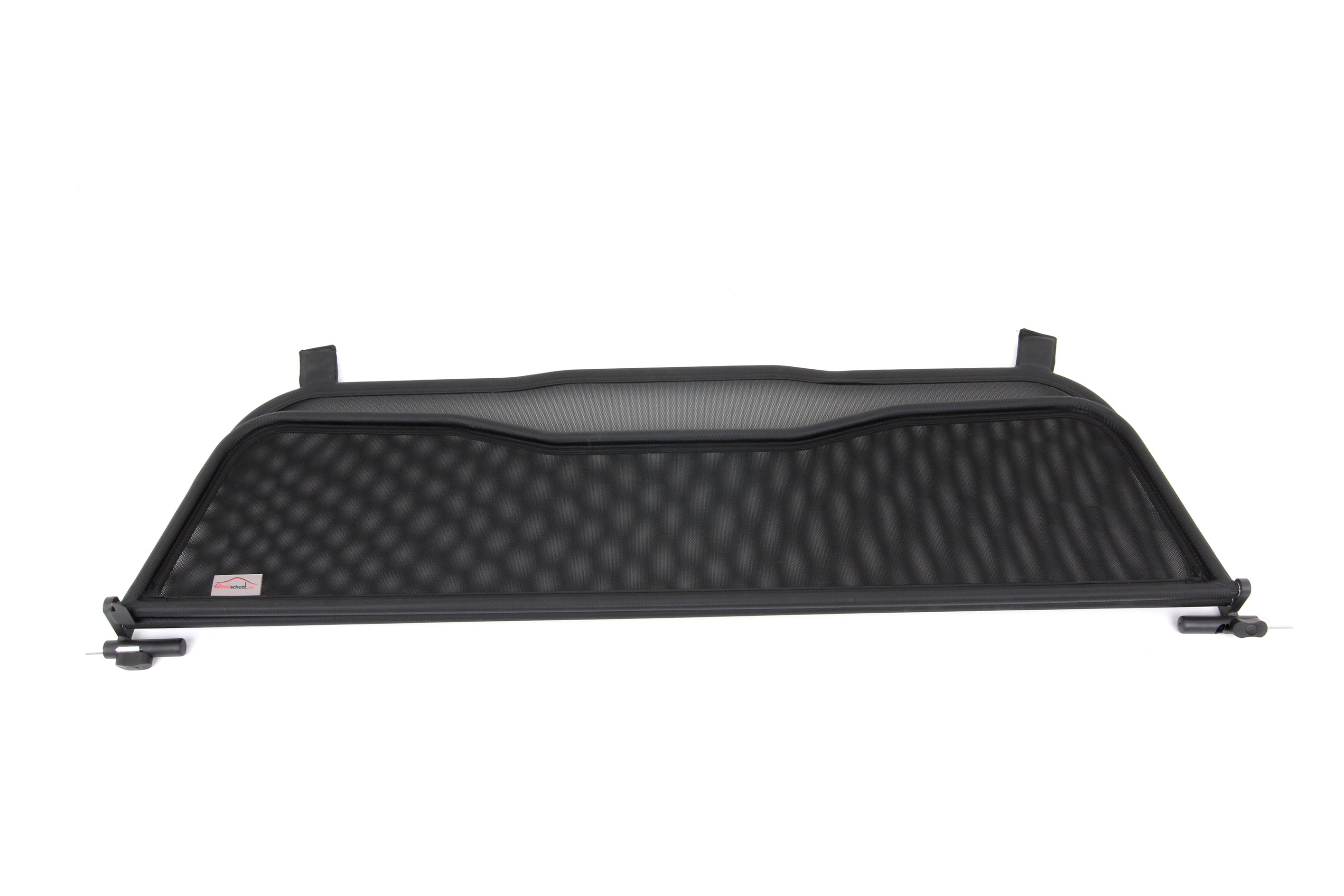 ¿Pero qué es exactamente un deflector de viento? Un deflector de viento en la versión simple es un bastidor de tubos de acero forrado con red y montado detrás de la zona del conductor. Sirve para garantizar que las turbulencias del aire habituales en un descapotable se desvíen a través del interior del vehículo. Los bastidores de los deflectores de viento están hechos de tubos de acero de alta calidad, curvados según el grosor específico del modelo, soldados cuidadosamente y cosidos con cuero artificial muy resistente a la intemperie. Para la red utilizamos un tejido mixto de nylon-poliéster de alta calidad, que se distingue por su alta resistencia a la tracción y a los rayos UV. Incluso el personal no especializado puede montar en pocos minutos el conjunto de red y del bastidor con sus accesorios y piezas de sujeción correspondientes.
