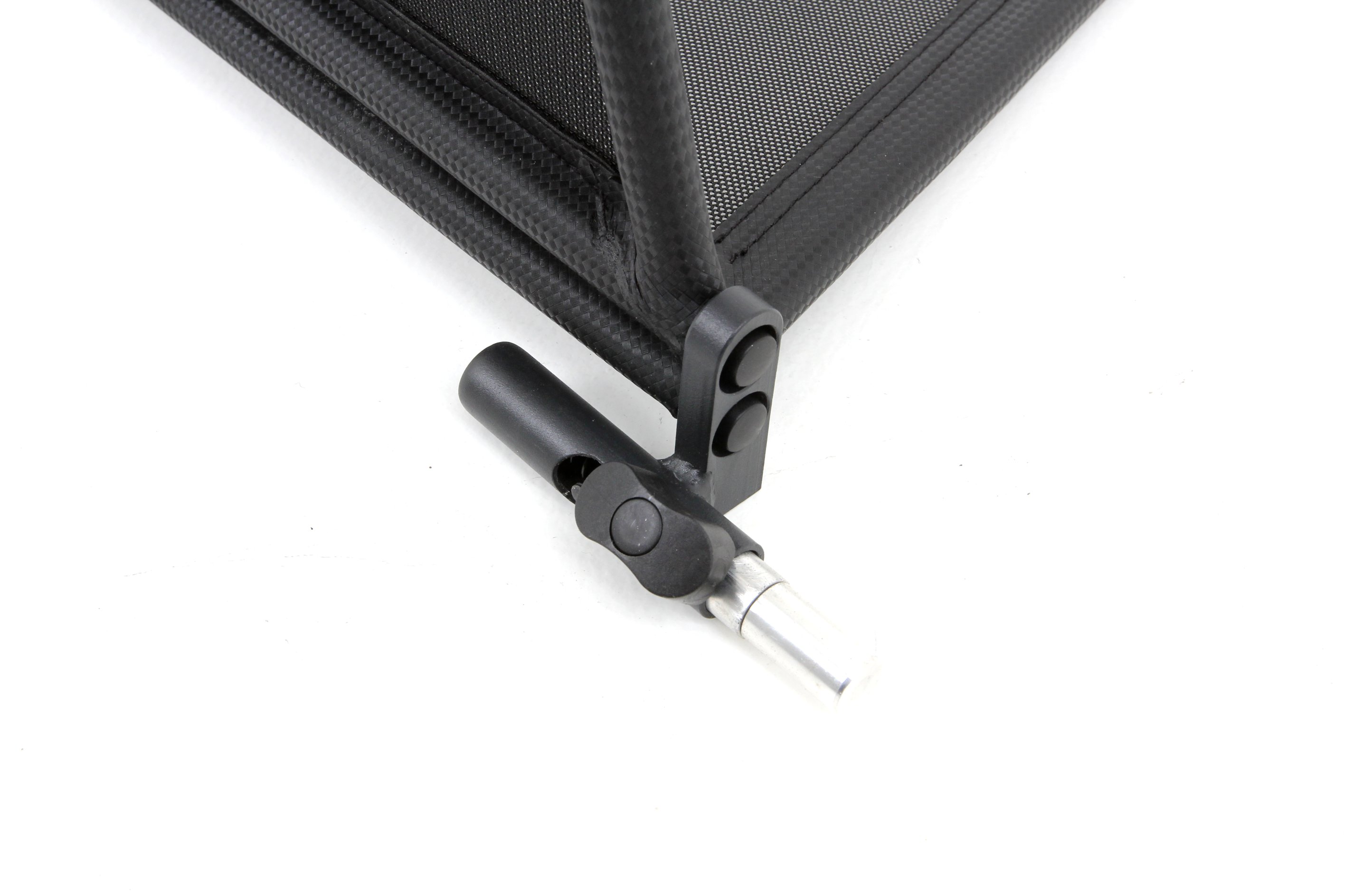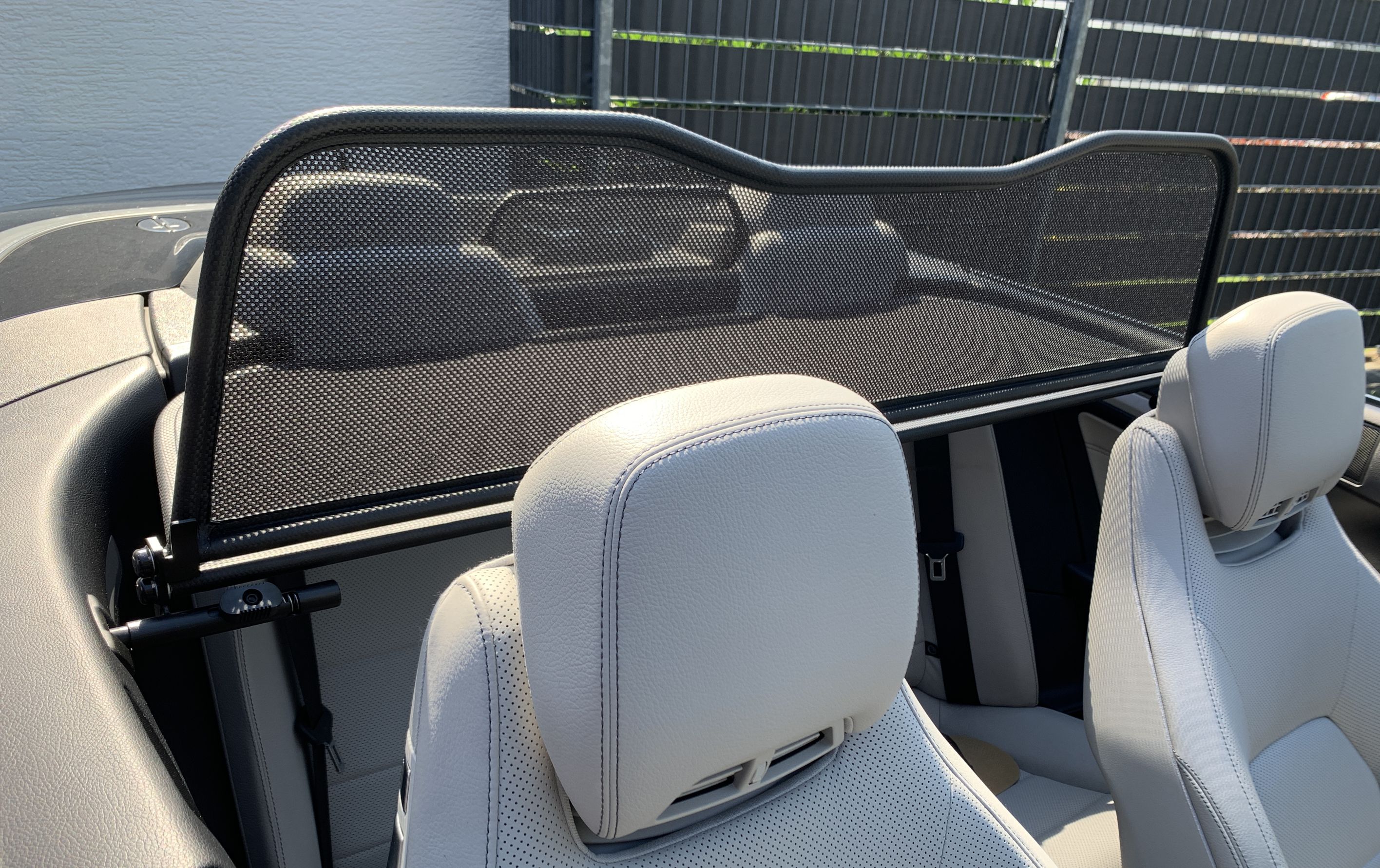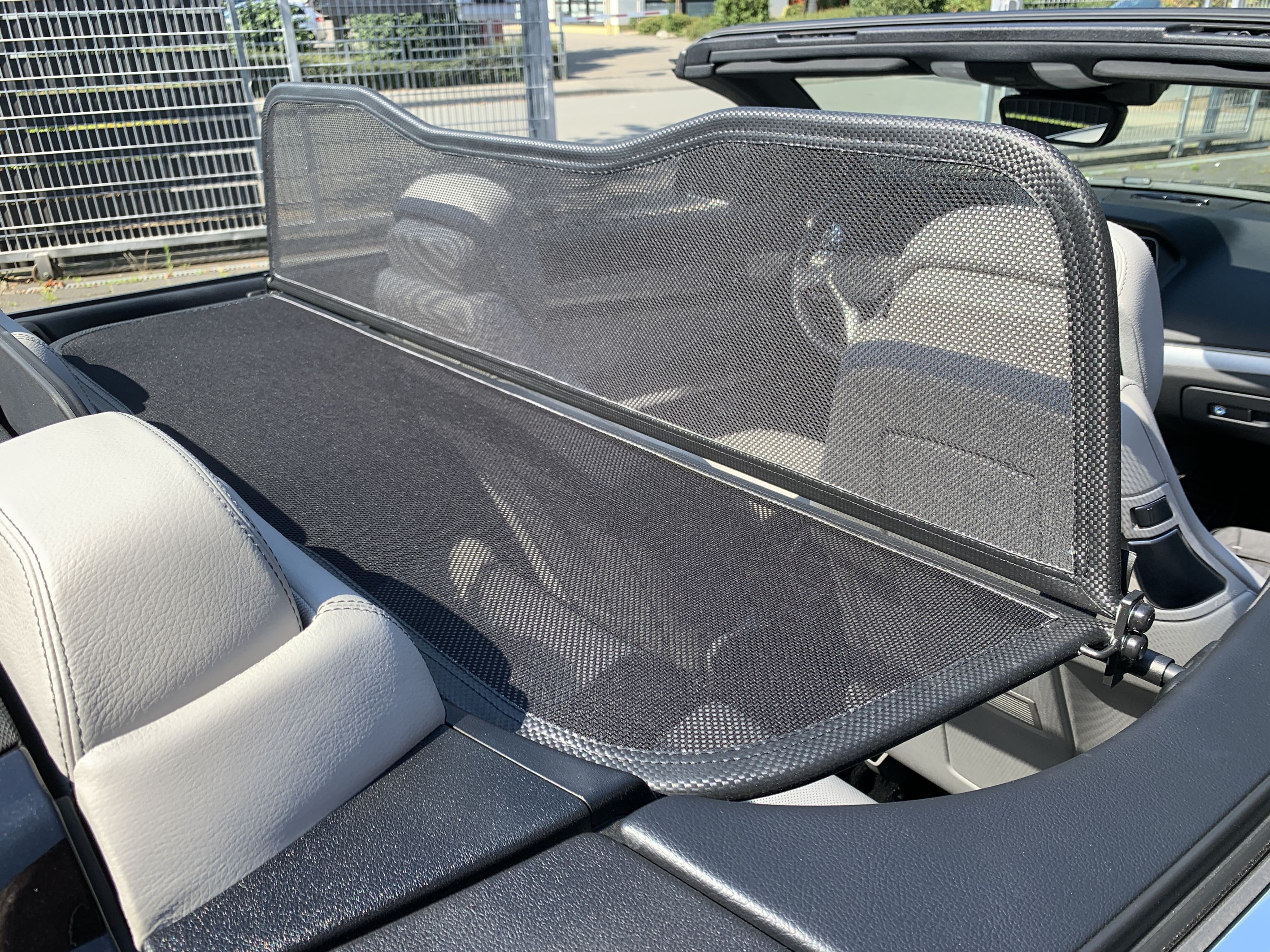 ¿Pero qué es exactamente un deflector de viento? Un deflector de viento en la versión simple es un bastidor de tubos de acero forrado con red y montado detrás de la zona del conductor. Sirve para garantizar que las turbulencias del aire habituales en un descapotable se desvíen a través del interior del vehículo. Los bastidores de los deflectores de viento están hechos de tubos de acero de alta calidad, curvados según el grosor específico del modelo, soldados cuidadosamente y cosidos con cuero artificial muy resistente a la intemperie. Para la red utilizamos un tejido mixto de nylon-poliéster de alta calidad, que se distingue por su alta resistencia a la tracción y a los rayos UV. Incluso el personal no especializado puede montar en pocos minutos el conjunto de red y del bastidor con sus accesorios y piezas de sujeción correspondientes.