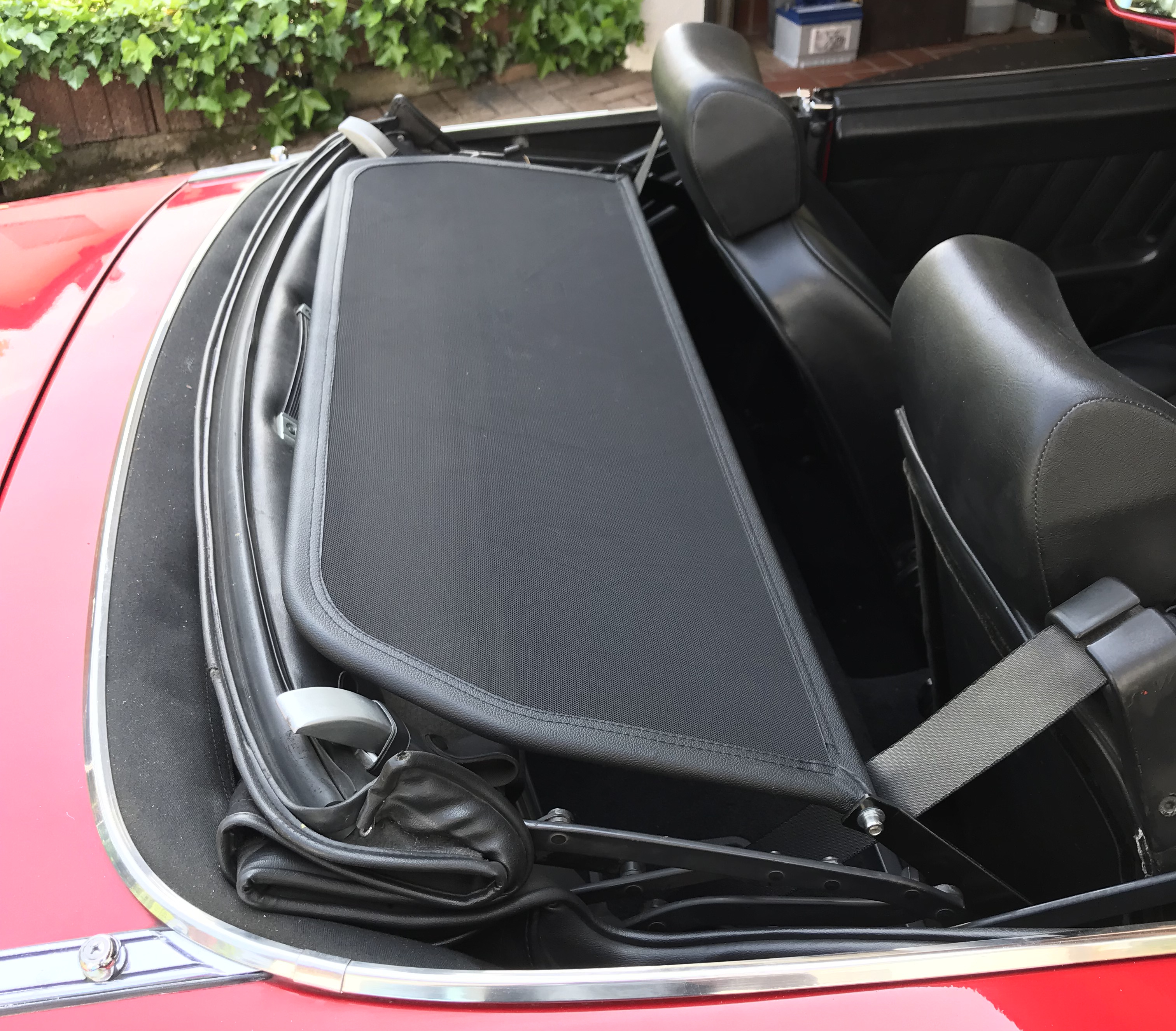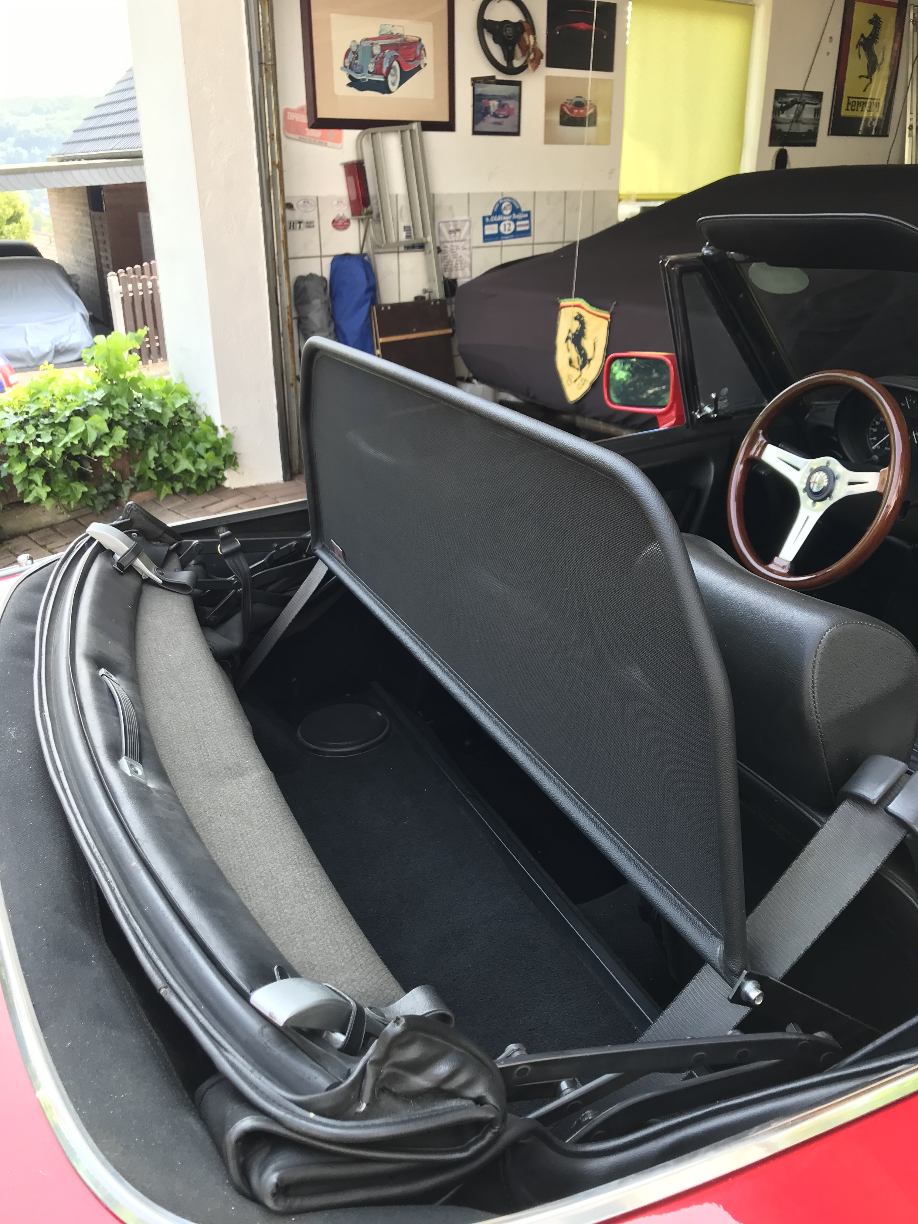 Mais en fait, un filet pare-vent, qu’est-ce que c’est exactement ? Un filet pare-vent est constitué, dans sa forme la plus simple, d’un filet tendu sur un cadre de tubes d’acier monté derrière le poste de conduite lui-même. Il assure que les tourbillons d’air, qui sont normalement produits lorsque l’on roule dans un cabriolet décapoté, soient déviés en ne pénètrent pas dans l’habitacle. Les cadres des pare-vents sont constitués de tubes d’acier haut de gamme, pliés pour correspondre aux besoins du modèle, soudés avec le plus grand soin et autour desquels un similicuir résistant aux intempéries est cousu. Pour le filet, nous utilisons un mélange de nylon et de polyester de grande qualité, caractérisé par sa capacité de tension et par sa résistance aux UV. Le filet comme le cadre, avec les pièces de montage et de tension correspondantes, permettent même à l’amateur de monter le pare-vent le plus souvent en quelques minutes seulement.