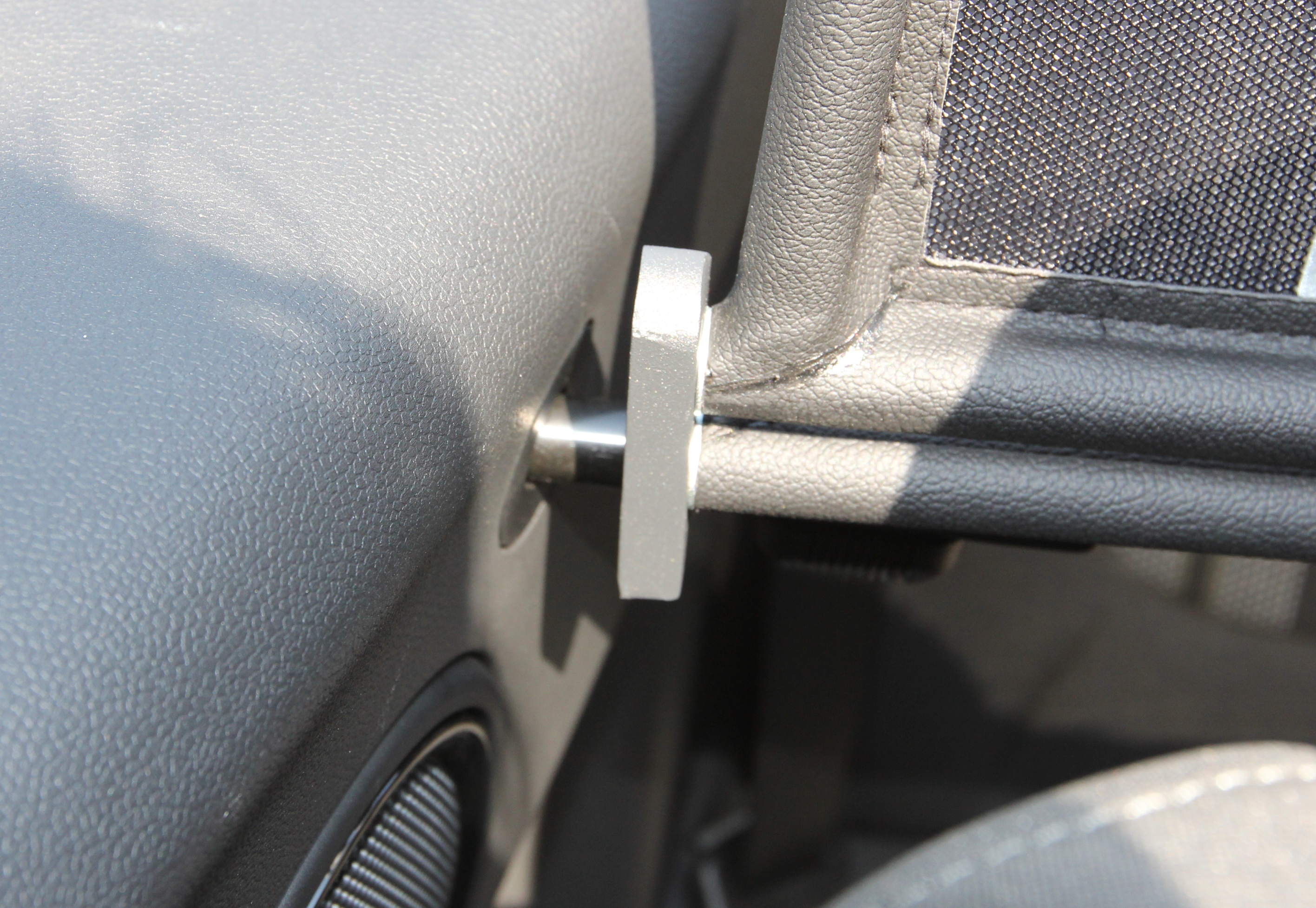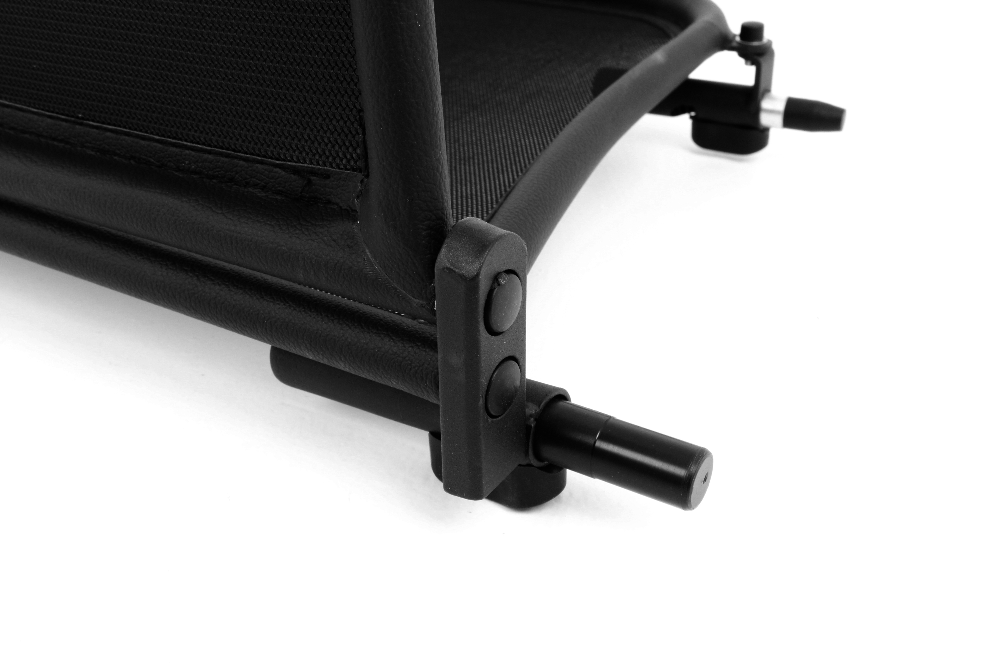 Monté dans le cabriolet, le filet pare-vent protège les passagers des tourbillons gênants autour de la tête, des épaules et de la nuque – pour un plaisir de conduite « à ciel ouvert »» sans limite. Les deux illustrations suivantes vous permettent de faire clairement la différence entre les flux d’air.Une attache rapide, qu’est-ce que c’est ? Avec cette attache rapide, le support ou le boulon est pressé vers l’extérieur par un ressort sous tension. Pour le montage comme pour le démontage.