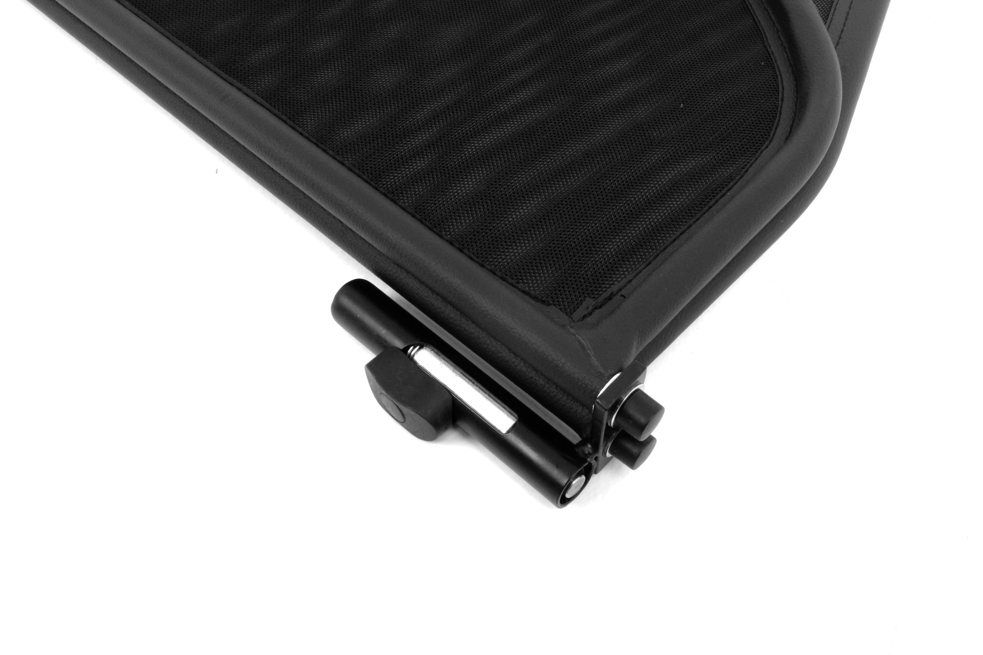 Mais en fait, un filet pare-vent, qu’est-ce que c’est exactement ? Un filet pare-vent est constitué, dans sa forme la plus simple, d’un filet tendu sur un cadre de tubes d’acier monté derrière le poste de conduite lui-même. Il assure que les tourbillons d’air, qui sont normalement produits lorsque l’on roule dans un cabriolet décapoté, soient déviés en ne pénètrent pas dans l’habitacle. Les cadres des pare-vents sont constitués de tubes d’acier haut de gamme, pliés pour correspondre aux besoins du modèle, soudés avec le plus grand soin et autour desquels un similicuir résistant aux intempéries est cousu. Pour le filet, nous utilisons un mélange de nylon et de polyester de grande qualité, caractérisé par sa capacité de tension et par sa résistance aux UV. Le filet comme le cadre, avec les pièces de montage et de tension correspondantes, permettent même à l’amateur de monter le pare-vent le plus souvent en quelques minutes seulement.