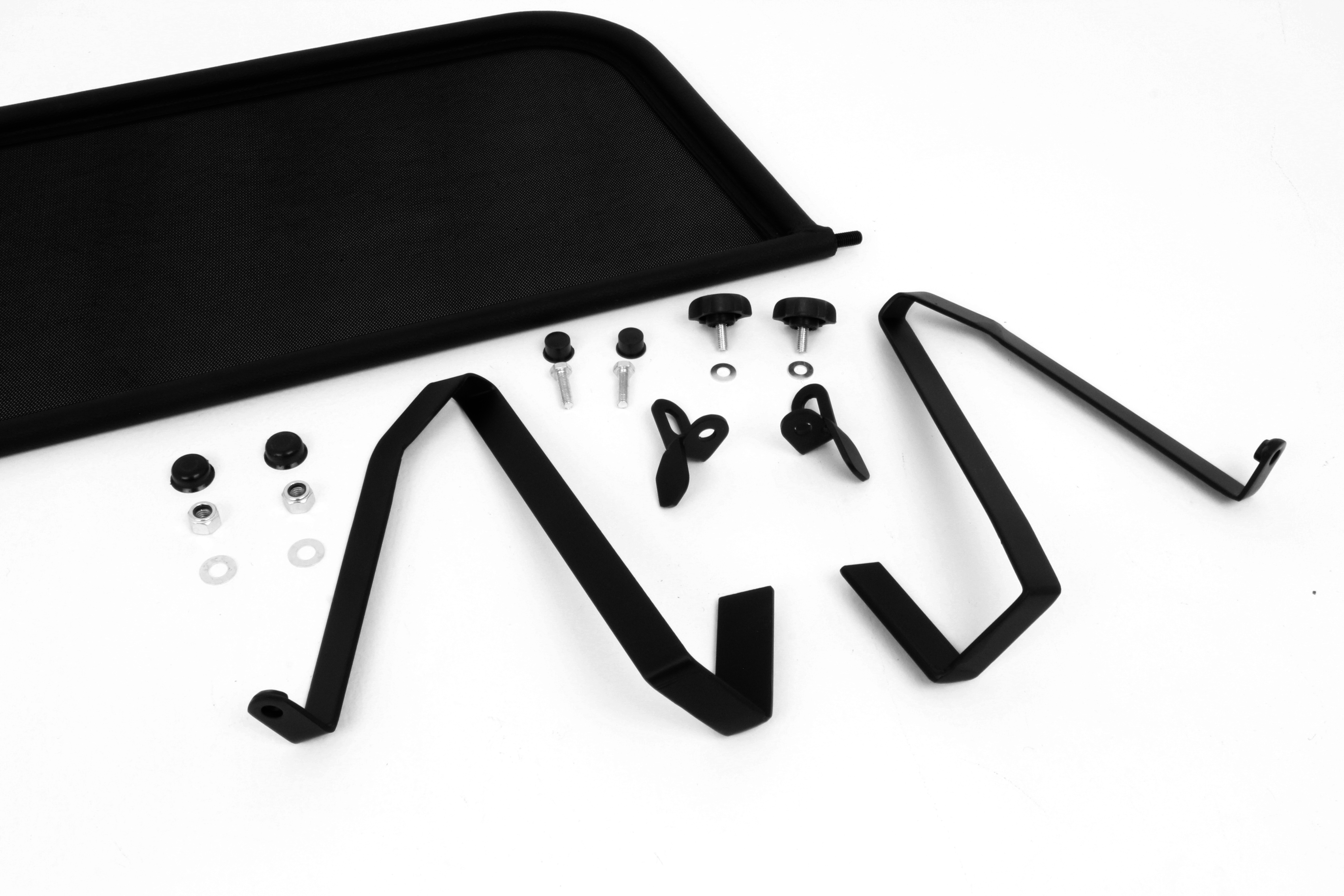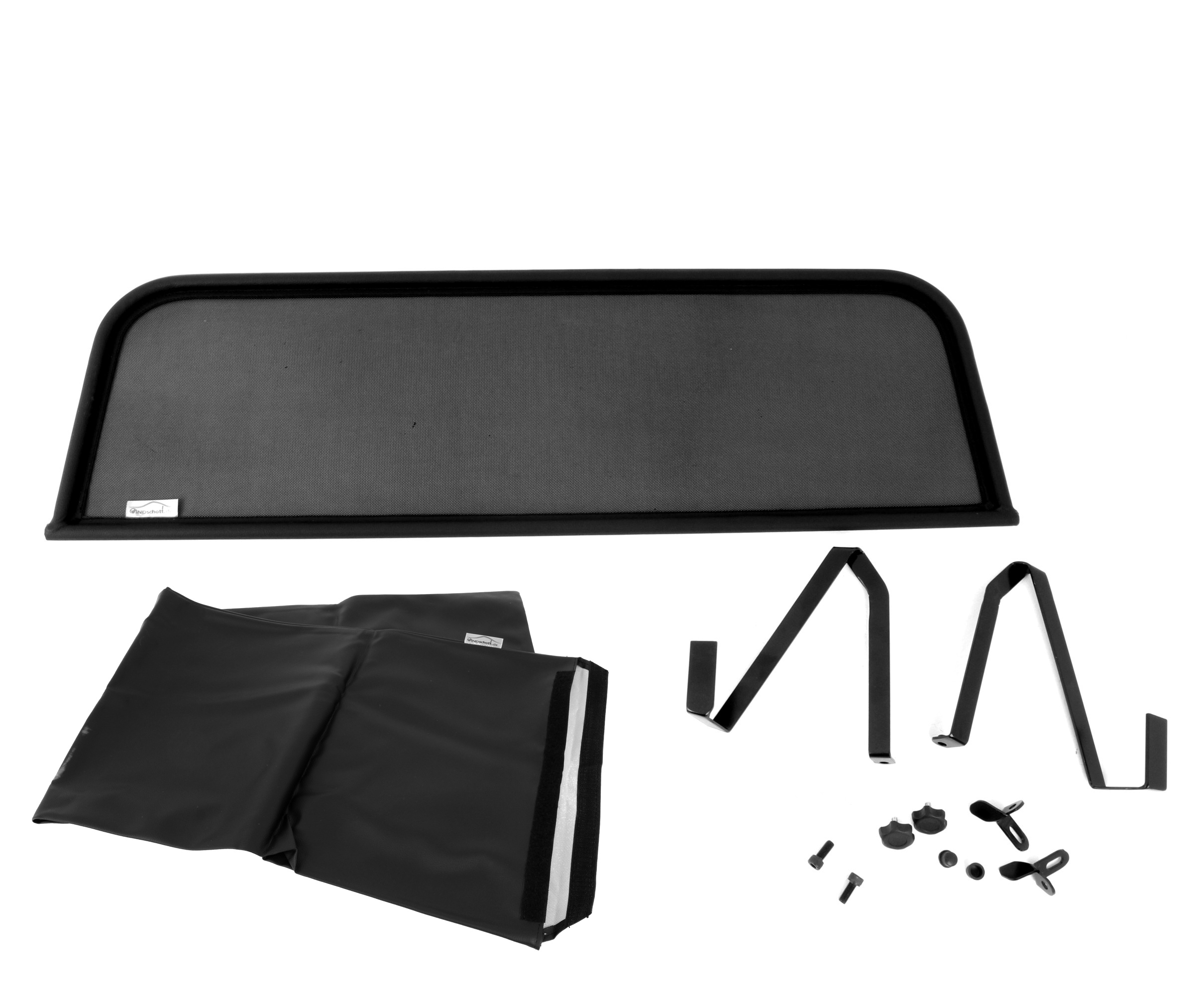 Mais en fait, un filet pare-vent, qu’est-ce que c’est exactement ? Un filet pare-vent est constitué, dans sa forme la plus simple, d’un filet tendu sur un cadre de tubes d’acier monté derrière le poste de conduite lui-même. Il assure que les tourbillons d’air, qui sont normalement produits lorsque l’on roule dans un cabriolet décapoté, soient déviés en ne pénètrent pas dans l’habitacle. Les cadres des pare-vents sont constitués de tubes d’acier haut de gamme, pliés pour correspondre aux besoins du modèle, soudés avec le plus grand soin et autour desquels un similicuir résistant aux intempéries est cousu. Pour le filet, nous utilisons un mélange de nylon et de polyester de grande qualité, caractérisé par sa capacité de tension et par sa résistance aux UV. Le filet comme le cadre, avec les pièces de montage et de tension correspondantes, permettent même à l’amateur de monter le pare-vent le plus souvent en quelques minutes seulement.