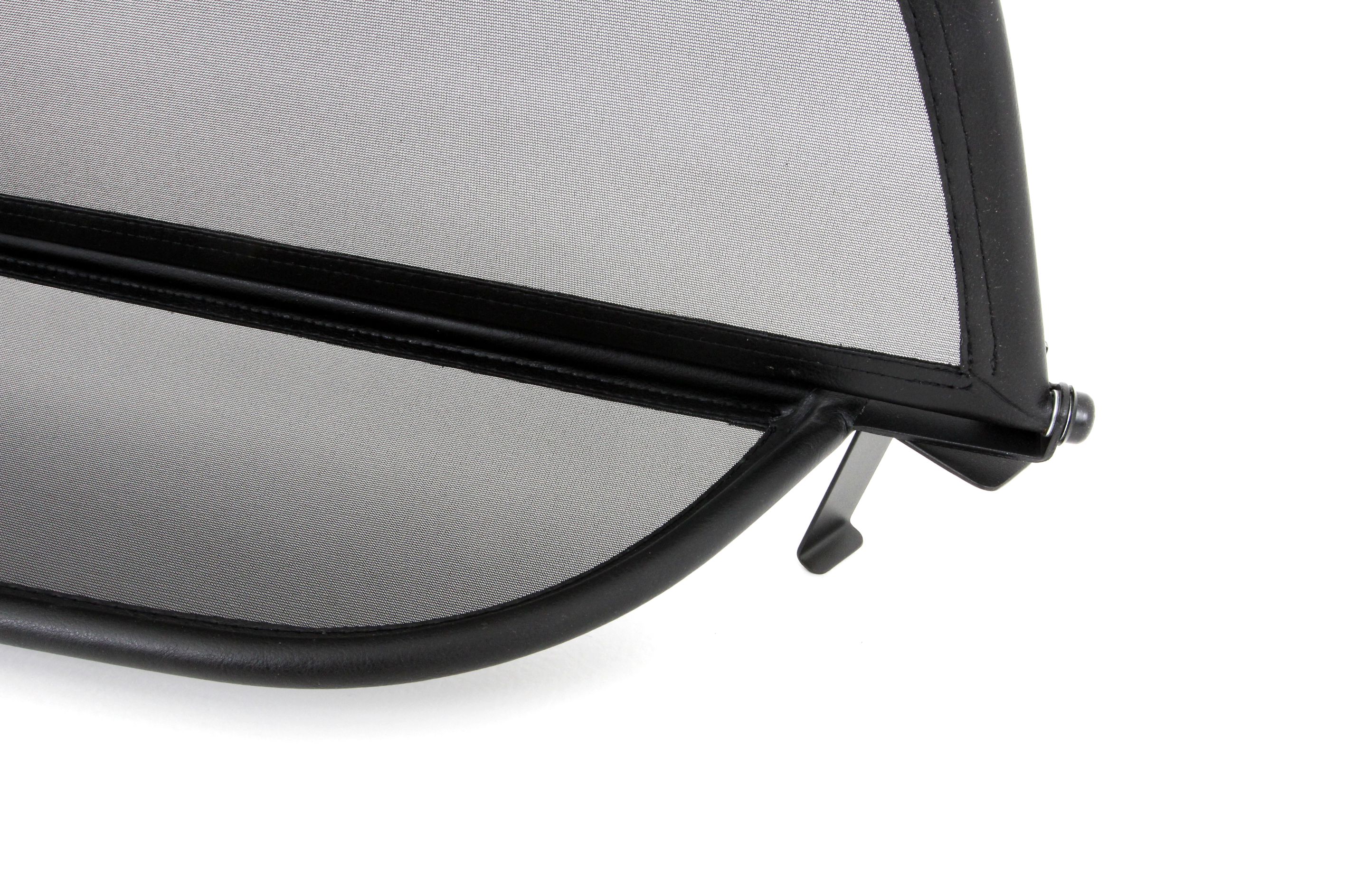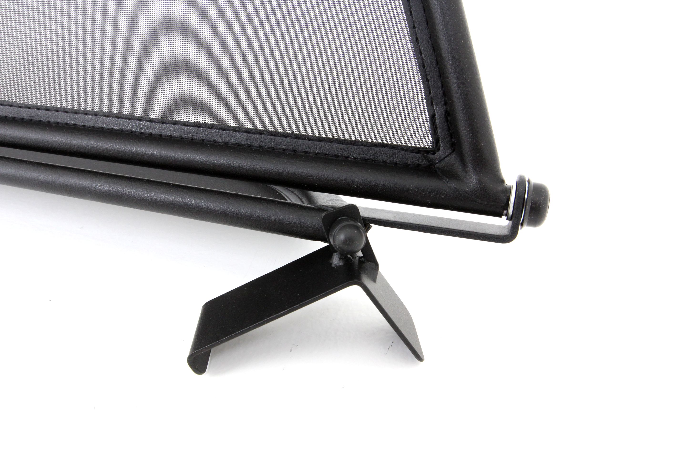 Mais en fait, un filet pare-vent, qu’est-ce que c’est exactement ? Un filet pare-vent est constitué, dans sa forme la plus simple, d’un filet tendu sur un cadre de tubes d’acier monté derrière le poste de conduite lui-même. Il assure que les tourbillons d’air, qui sont normalement produits lorsque l’on roule dans un cabriolet décapoté, soient déviés en ne pénètrent pas dans l’habitacle. Les cadres des pare-vents sont constitués de tubes d’acier haut de gamme, pliés pour correspondre aux besoins du modèle, soudés avec le plus grand soin et autour desquels un similicuir résistant aux intempéries est cousu. Pour le filet, nous utilisons un mélange de nylon et de polyester de grande qualité, caractérisé par sa capacité de tension et par sa résistance aux UV. Le filet comme le cadre, avec les pièces de montage et de tension correspondantes, permettent même à l’amateur de monter le pare-vent le plus souvent en quelques minutes seulement.