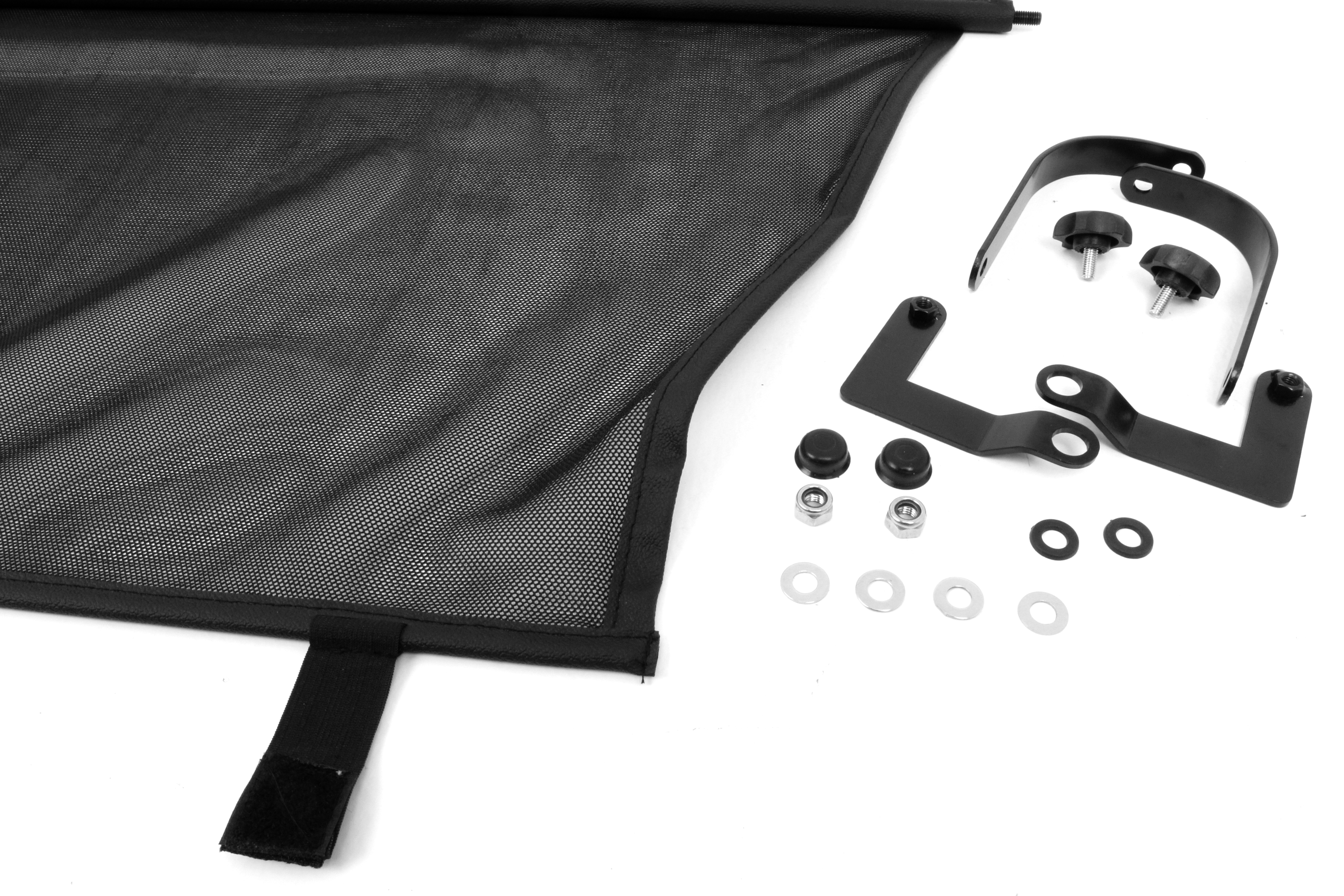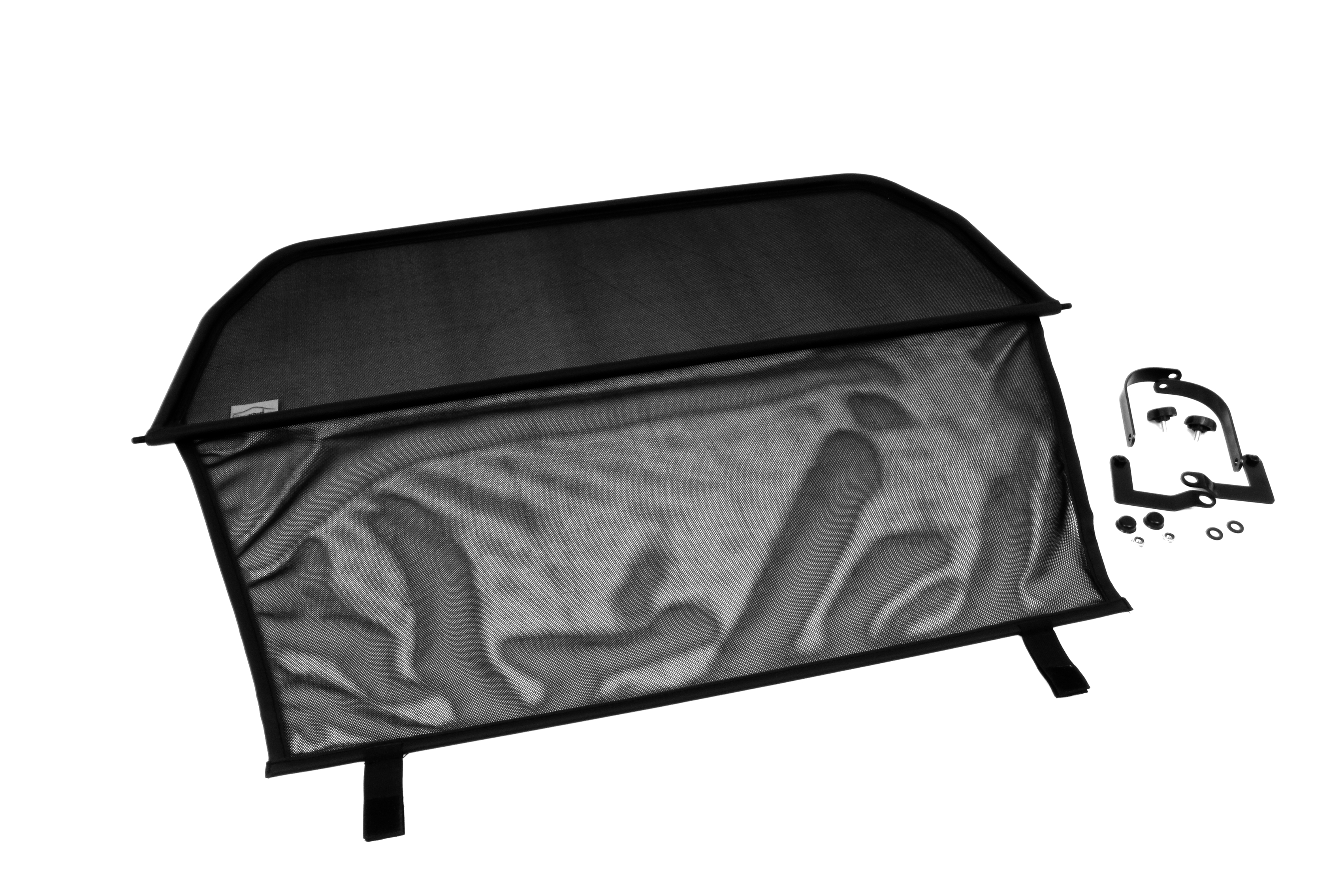 Mais en fait, un filet pare-vent, qu’est-ce que c’est exactement ? Un filet pare-vent est constitué, dans sa forme la plus simple, d’un filet tendu sur un cadre de tubes d’acier monté derrière le poste de conduite lui-même. Il assure que les tourbillons d’air, qui sont normalement produits lorsque l’on roule dans un cabriolet décapoté, soient déviés en ne pénètrent pas dans l’habitacle. Les cadres des pare-vents sont constitués de tubes d’acier haut de gamme, pliés pour correspondre aux besoins du modèle, soudés avec le plus grand soin et autour desquels un similicuir résistant aux intempéries est cousu. Pour le filet, nous utilisons un mélange de nylon et de polyester de grande qualité, caractérisé par sa capacité de tension et par sa résistance aux UV. Le filet comme le cadre, avec les pièces de montage et de tension correspondantes, permettent même à l’amateur de monter le pare-vent le plus souvent en quelques minutes seulement.