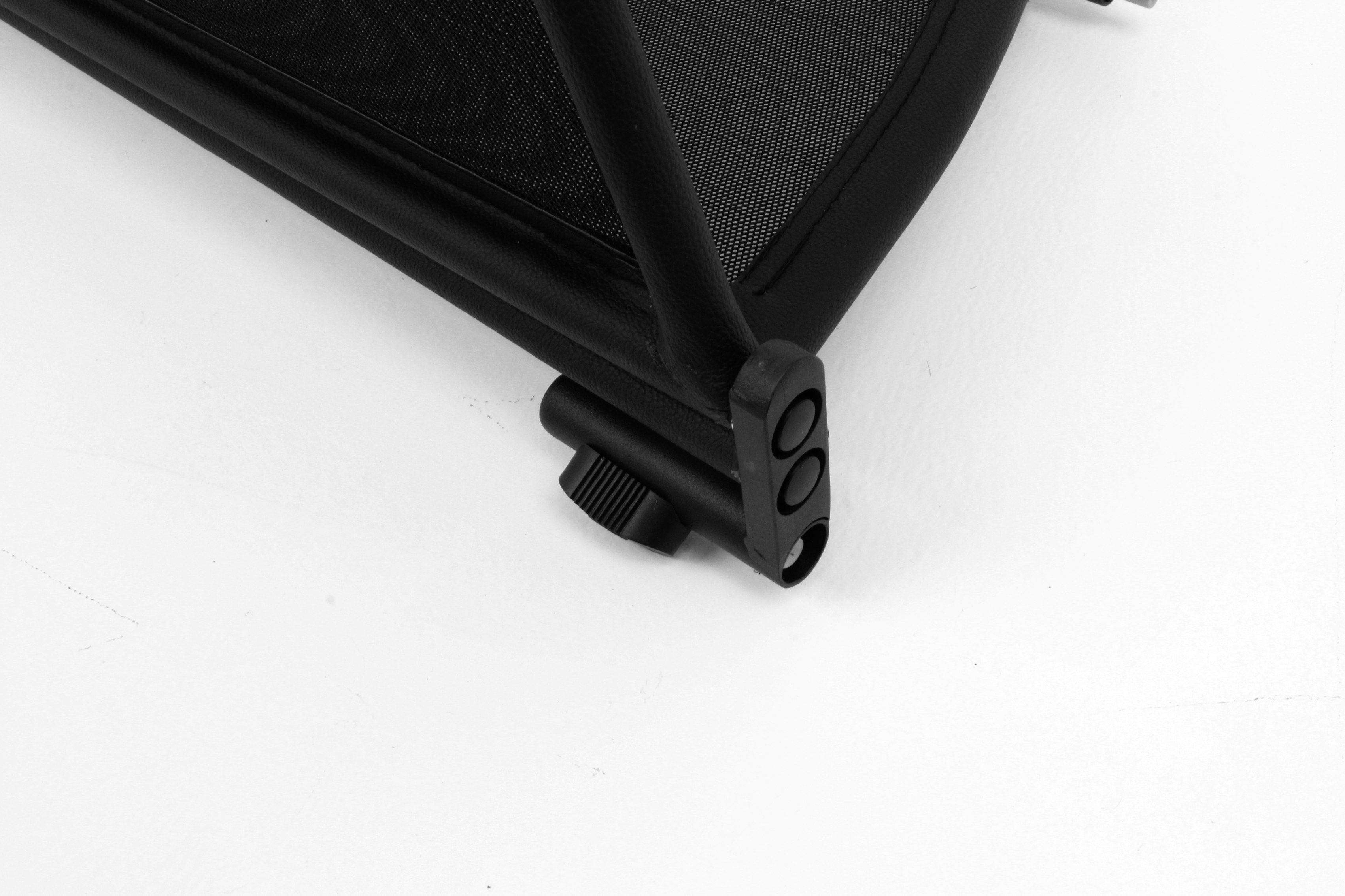 Mais en fait, un filet pare-vent, qu’est-ce que c’est exactement ? Un filet pare-vent est constitué, dans sa forme la plus simple, d’un filet tendu sur un cadre de tubes d’acier monté derrière le poste de conduite lui-même. Il assure que les tourbillons d’air, qui sont normalement produits lorsque l’on roule dans un cabriolet décapoté, soient déviés en ne pénètrent pas dans l’habitacle. Les cadres des pare-vents sont constitués de tubes d’acier haut de gamme, pliés pour correspondre aux besoins du modèle, soudés avec le plus grand soin et autour desquels un similicuir résistant aux intempéries est cousu. Pour le filet, nous utilisons un mélange de nylon et de polyester de grande qualité, caractérisé par sa capacité de tension et par sa résistance aux UV. Le filet comme le cadre, avec les pièces de montage et de tension correspondantes, permettent même à l’amateur de monter le pare-vent le plus souvent en quelques minutes seulement.