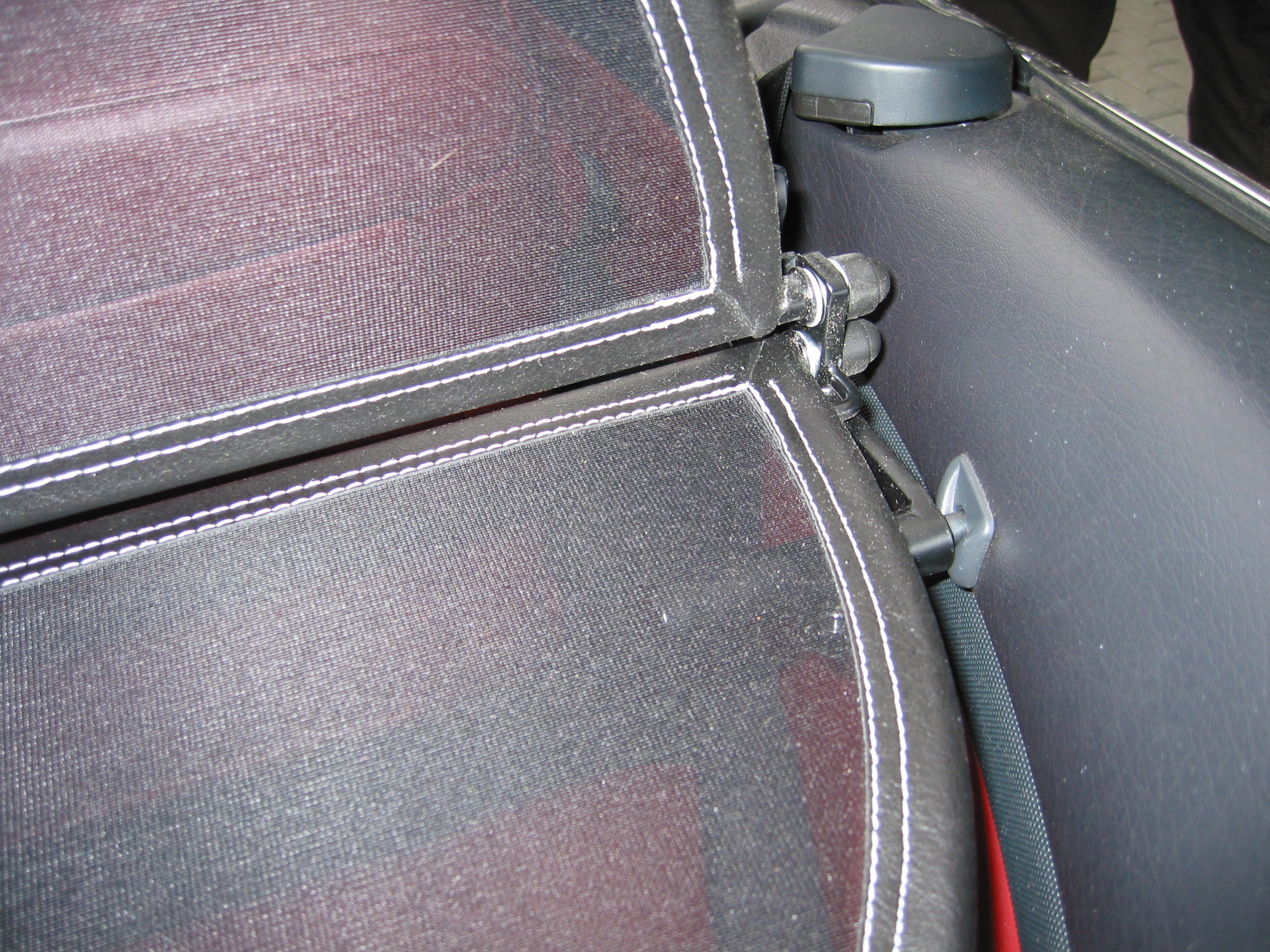 Monté dans le cabriolet, le filet pare-vent protège les passagers des tourbillons gênants autour de la tête, des épaules et de la nuque – pour un plaisir de conduite « à ciel ouvert »» sans limite. Les deux illustrations suivantes vous permettent de faire clairement la différence entre les flux d’air.Une attache rapide, qu’est-ce que c’est ? Avec cette attache rapide, le support ou le boulon est pressé vers l’extérieur par un ressort sous tension. Pour le montage comme pour le démontage.
