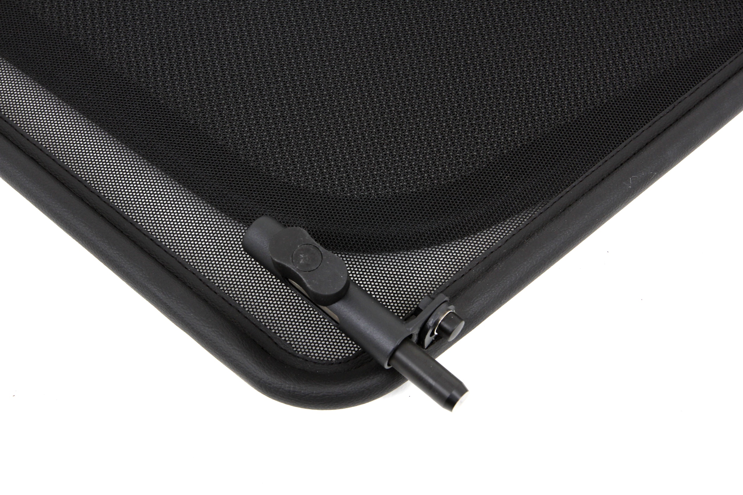 Mais en fait, un filet pare-vent, qu’est-ce que c’est exactement ? Un filet pare-vent est constitué, dans sa forme la plus simple, d’un filet tendu sur un cadre de tubes d’acier monté derrière le poste de conduite lui-même. Il assure que les tourbillons d’air, qui sont normalement produits lorsque l’on roule dans un cabriolet décapoté, soient déviés en ne pénètrent pas dans l’habitacle. Les cadres des pare-vents sont constitués de tubes d’acier haut de gamme, pliés pour correspondre aux besoins du modèle, soudés avec le plus grand soin et autour desquels un similicuir résistant aux intempéries est cousu. Pour le filet, nous utilisons un mélange de nylon et de polyester de grande qualité, caractérisé par sa capacité de tension et par sa résistance aux UV. Le filet comme le cadre, avec les pièces de montage et de tension correspondantes, permettent même à l’amateur de monter le pare-vent le plus souvent en quelques minutes seulement.