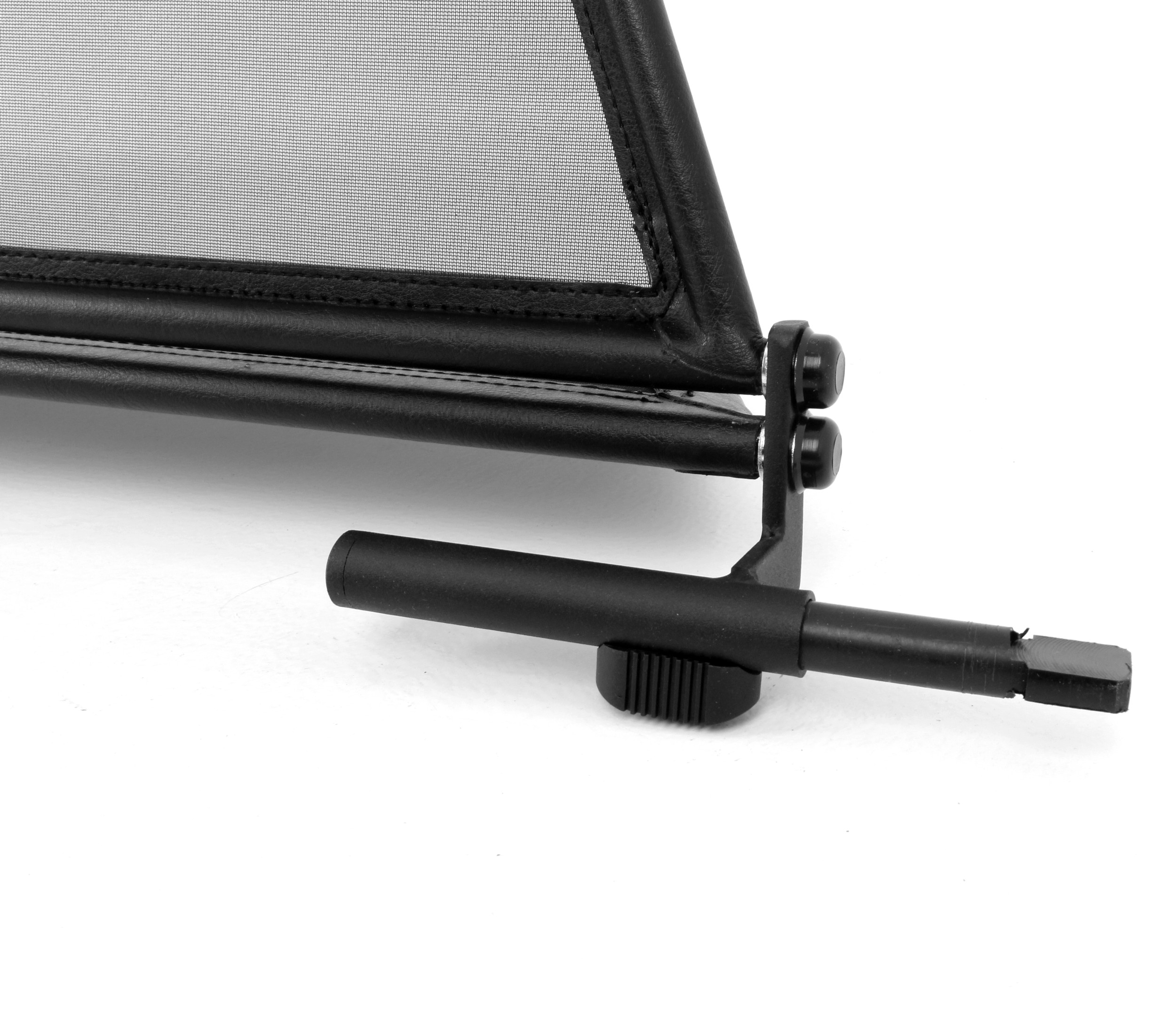 Mais en fait, un filet pare-vent, qu’est-ce que c’est exactement ? Un filet pare-vent est constitué, dans sa forme la plus simple, d’un filet tendu sur un cadre de tubes d’acier monté derrière le poste de conduite lui-même. Il assure que les tourbillons d’air, qui sont normalement produits lorsque l’on roule dans un cabriolet décapoté, soient déviés en ne pénètrent pas dans l’habitacle. Les cadres des pare-vents sont constitués de tubes d’acier haut de gamme, pliés pour correspondre aux besoins du modèle, soudés avec le plus grand soin et autour desquels un similicuir résistant aux intempéries est cousu. Pour le filet, nous utilisons un mélange de nylon et de polyester de grande qualité, caractérisé par sa capacité de tension et par sa résistance aux UV. Le filet comme le cadre, avec les pièces de montage et de tension correspondantes, permettent même à l’amateur de monter le pare-vent le plus souvent en quelques minutes seulement.