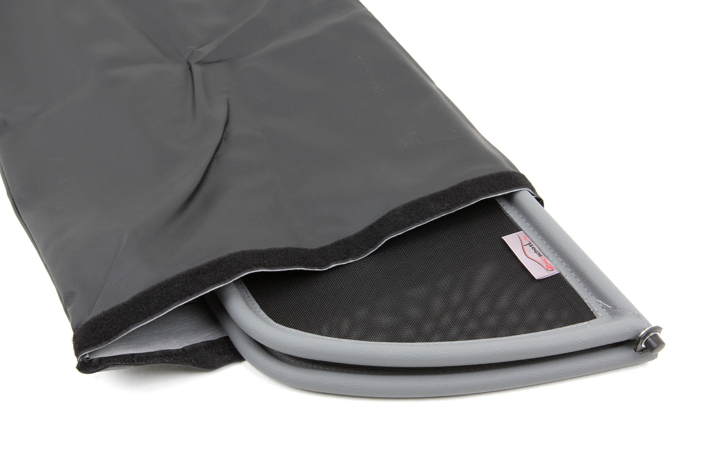 Mais en fait, un filet pare-vent, qu’est-ce que c’est exactement ? Un filet pare-vent est constitué, dans sa forme la plus simple, d’un filet tendu sur un cadre de tubes d’acier monté derrière le poste de conduite lui-même. Il assure que les tourbillons d’air, qui sont normalement produits lorsque l’on roule dans un cabriolet décapoté, soient déviés en ne pénètrent pas dans l’habitacle. Les cadres des pare-vents sont constitués de tubes d’acier haut de gamme, pliés pour correspondre aux besoins du modèle, soudés avec le plus grand soin et autour desquels un similicuir résistant aux intempéries est cousu. Pour le filet, nous utilisons un mélange de nylon et de polyester de grande qualité, caractérisé par sa capacité de tension et par sa résistance aux UV. Le filet comme le cadre, avec les pièces de montage et de tension correspondantes, permettent même à l’amateur de monter le pare-vent le plus souvent en quelques minutes seulement.