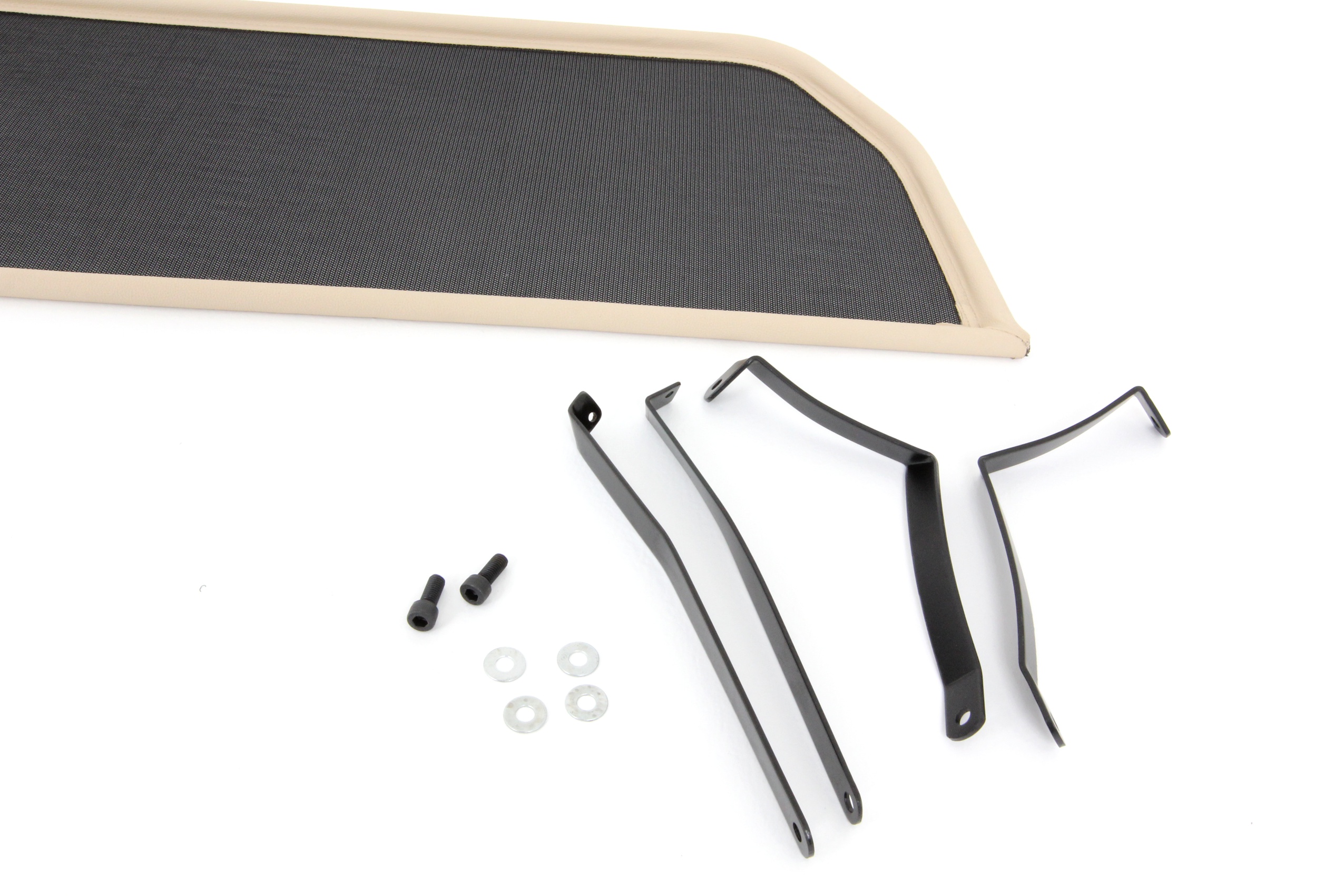 Wat doet een windscherm precies? Een windscherm in de eenvoudige versie is een stalen buisframe met net, gemonteerd achter de eigenlijke cabine, dat ervoor zorgt dat de gebruikelijke luchtwervelingen van een cabriolet worden omgeleid over het interieur van het voertuig. De frames van de windschermen zijn gemaakt van hoogwaardige stalen buizen, gebogen in de modelspecifieke dikte, netjes gelast en in weerbestendig kunstleer genaaid. Voor het netwerk gebruiken we een hoogwaardig nylon-polyester gemengd weefsel, dat zich onderscheidt door zijn hoge treksterkte en UV-bestendigheid. De net- of frameconstructie met de juiste bevestigingen en onderdelen, kan ook door een leek binnen enkele minuten worden gemonteerd.