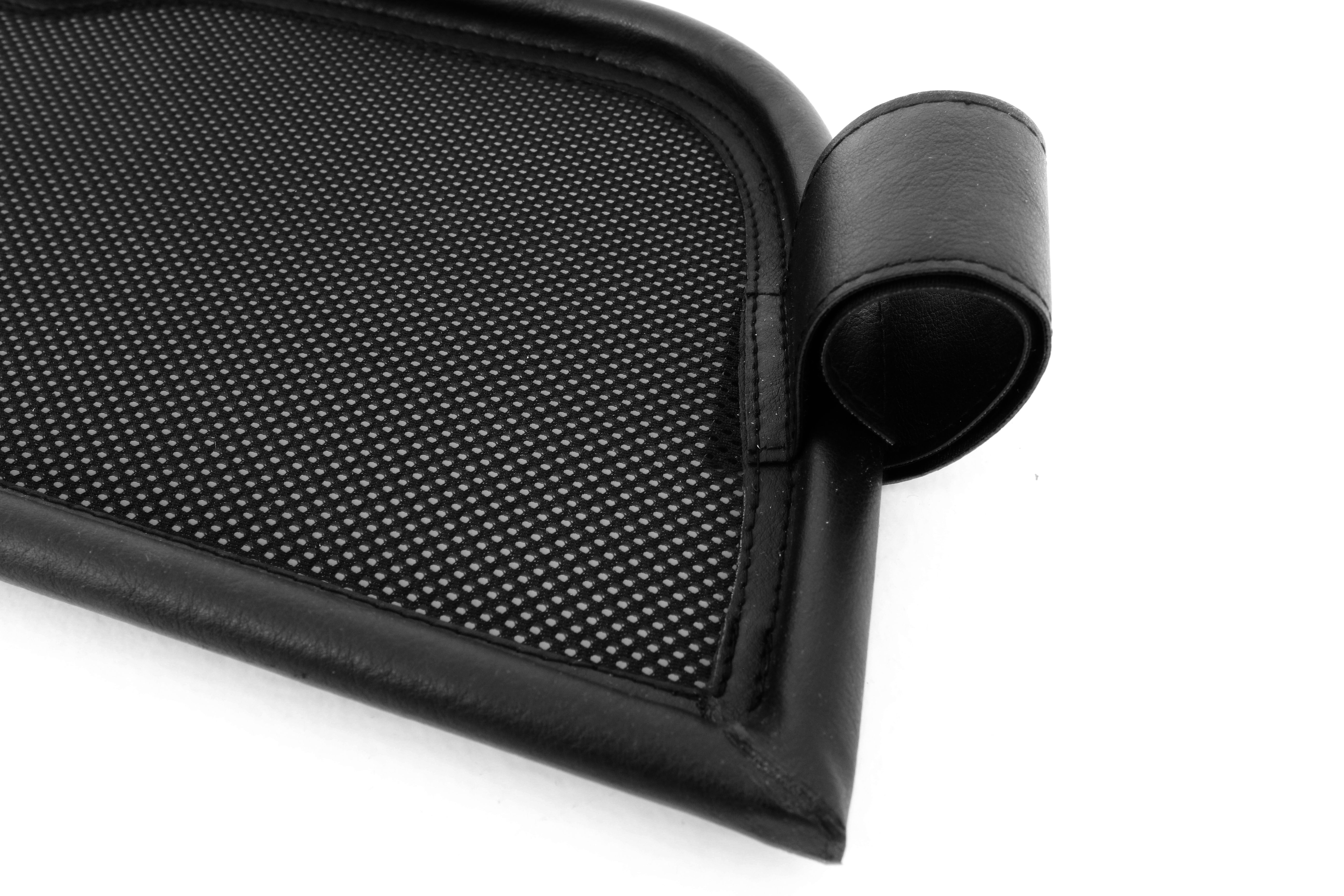 Wat doet een windscherm precies? Een windscherm in de eenvoudige versie is een stalen buisframe met net, gemonteerd achter de eigenlijke cabine, dat ervoor zorgt dat de gebruikelijke luchtwervelingen van een cabriolet worden omgeleid over het interieur van het voertuig. De frames van de windschermen zijn gemaakt van hoogwaardige stalen buizen, gebogen in de modelspecifieke dikte, netjes gelast en in weerbestendig kunstleer genaaid. Voor het netwerk gebruiken we een hoogwaardig nylon-polyester gemengd weefsel, dat zich onderscheidt door zijn hoge treksterkte en UV-bestendigheid. De net- of frameconstructie met de juiste bevestigingen en onderdelen, kan ook door een leek binnen enkele minuten worden gemonteerd.