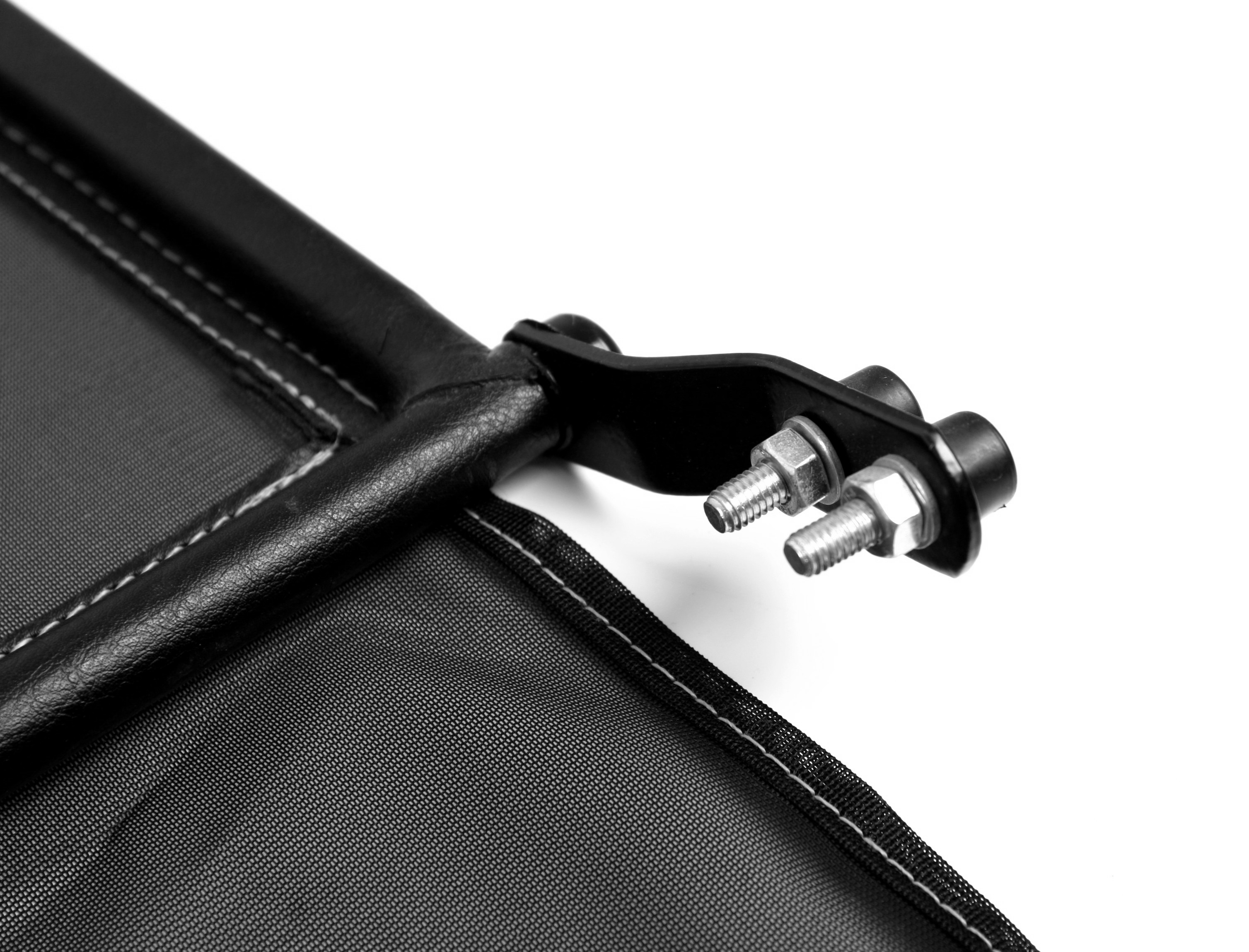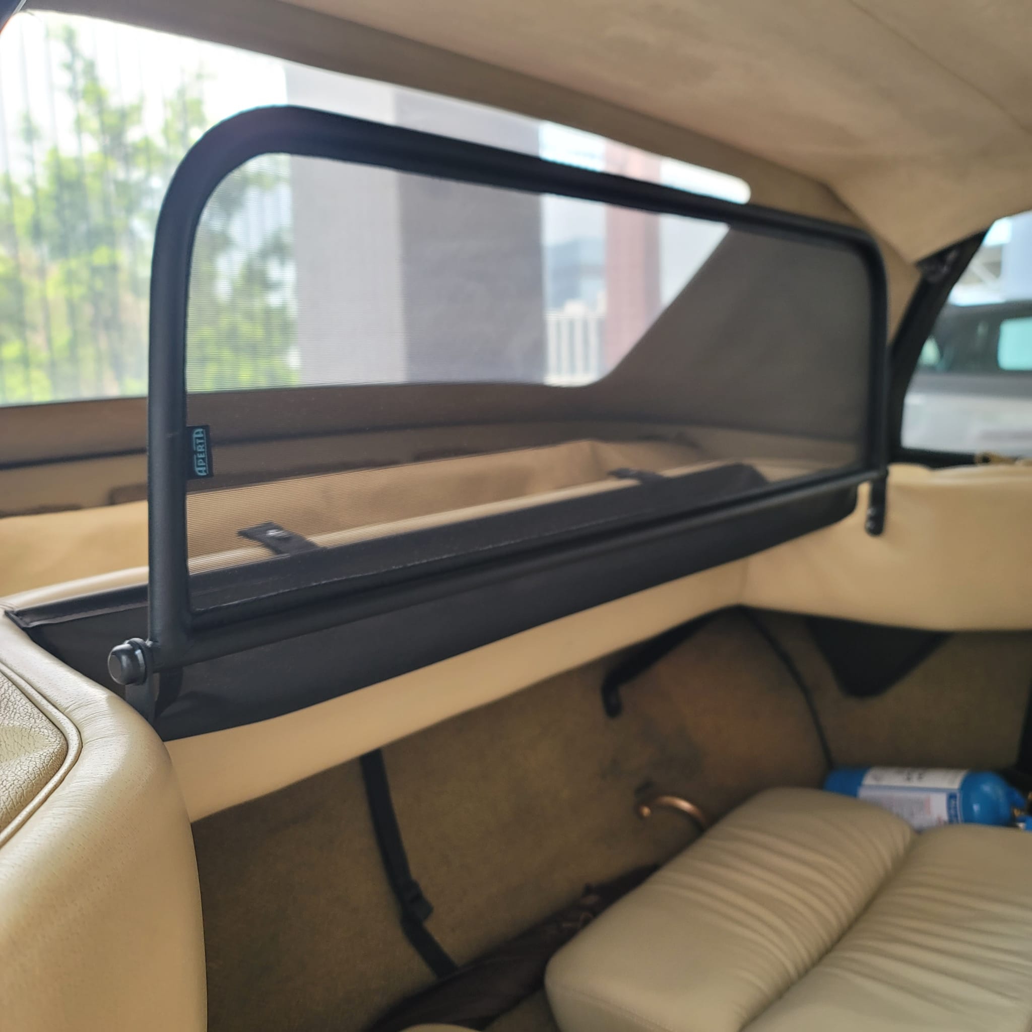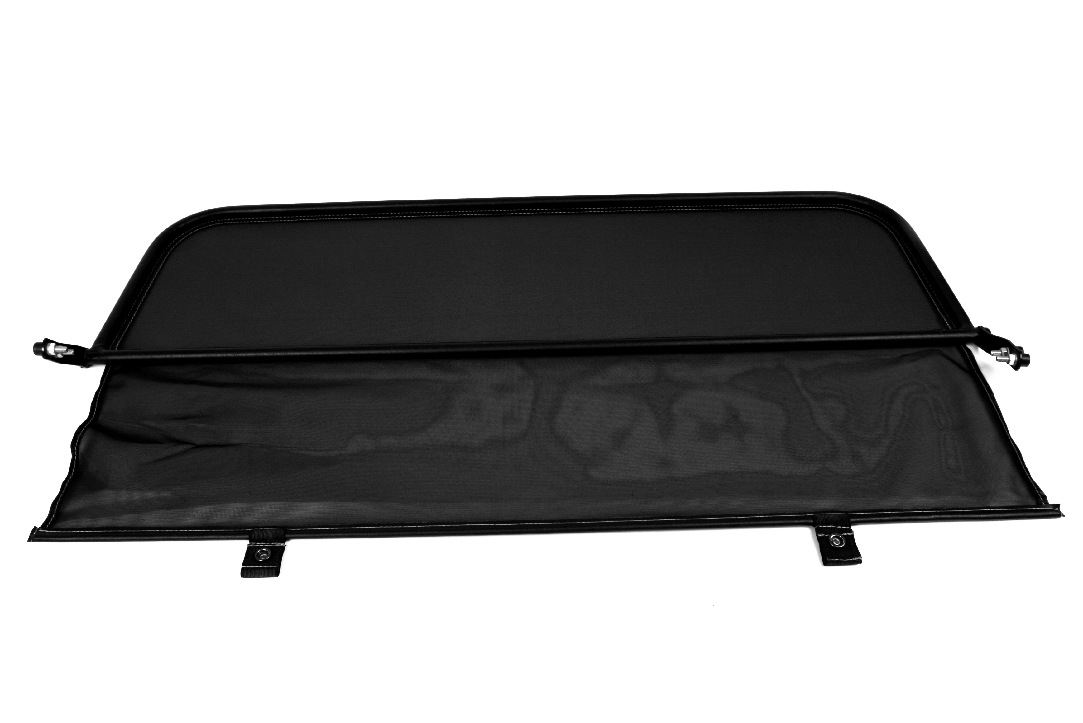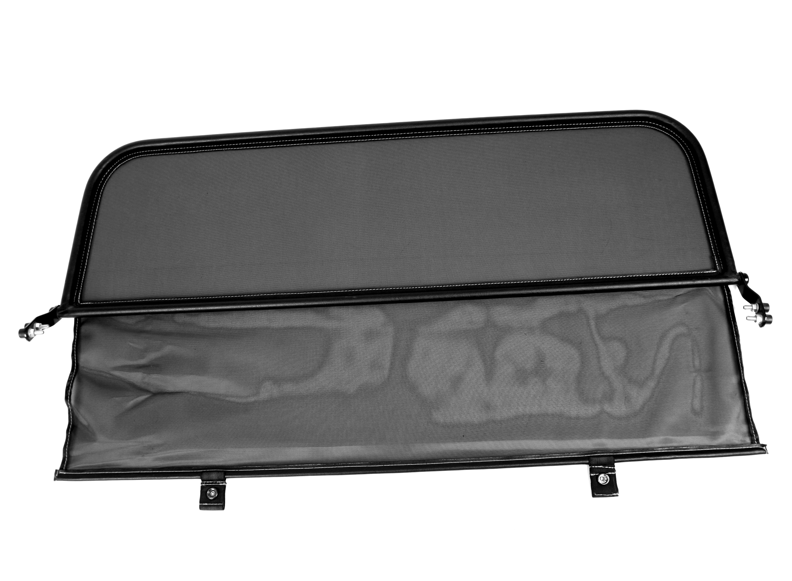 Wat doet een windscherm precies? Een windscherm in de eenvoudige versie is een stalen buisframe met net, gemonteerd achter de eigenlijke cabine, dat ervoor zorgt dat de gebruikelijke luchtwervelingen van een cabriolet worden omgeleid over het interieur van het voertuig. De frames van de windschermen zijn gemaakt van hoogwaardige stalen buizen, gebogen in de modelspecifieke dikte, netjes gelast en in weerbestendig kunstleer genaaid. Voor het netwerk gebruiken we een hoogwaardig nylon-polyester gemengd weefsel, dat zich onderscheidt door zijn hoge treksterkte en UV-bestendigheid. De net- of frameconstructie met de juiste bevestigingen en onderdelen, kan ook door een leek binnen enkele minuten worden gemonteerd.