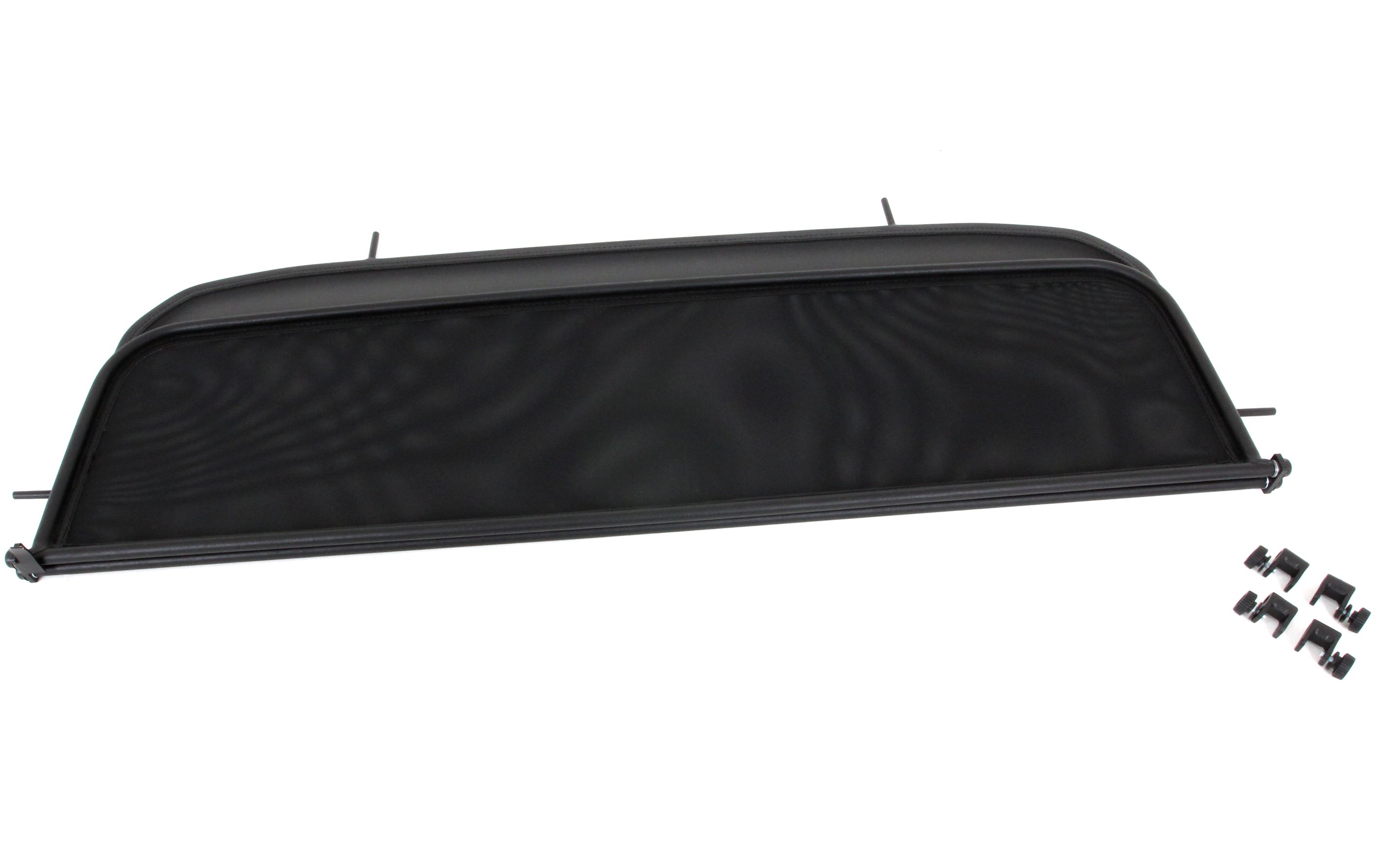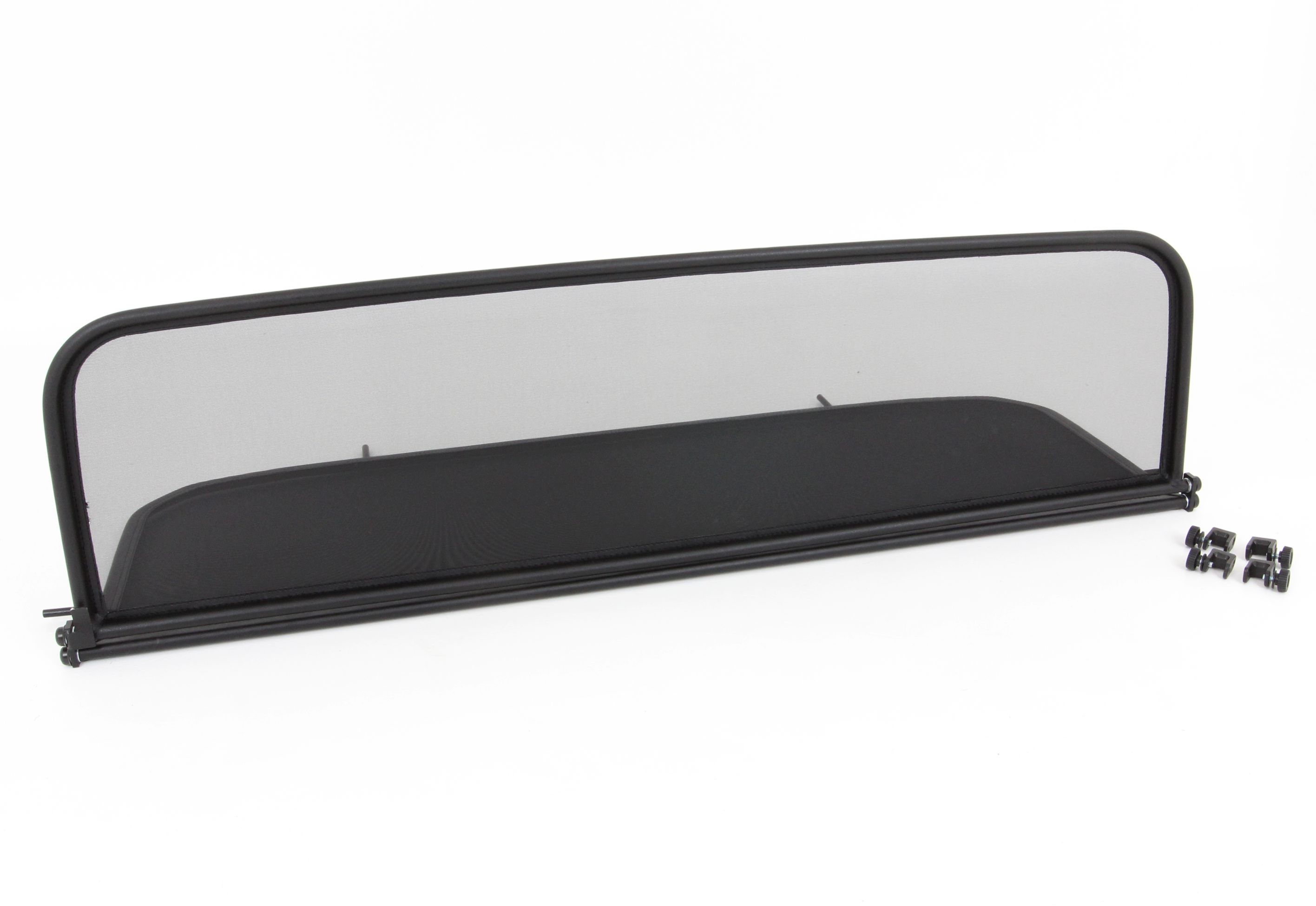 Wat doet een windscherm precies? Een windscherm in de eenvoudige versie is een stalen buisframe met net, gemonteerd achter de eigenlijke cabine, dat ervoor zorgt dat de gebruikelijke luchtwervelingen van een cabriolet worden omgeleid over het interieur van het voertuig. De frames van de windschermen zijn gemaakt van hoogwaardige stalen buizen, gebogen in de modelspecifieke dikte, netjes gelast en in weerbestendig kunstleer genaaid. Voor het netwerk gebruiken we een hoogwaardig nylon-polyester gemengd weefsel, dat zich onderscheidt door zijn hoge treksterkte en UV-bestendigheid. De net- of frameconstructie met de juiste bevestigingen en onderdelen, kan ook door een leek binnen enkele minuten worden gemonteerd.