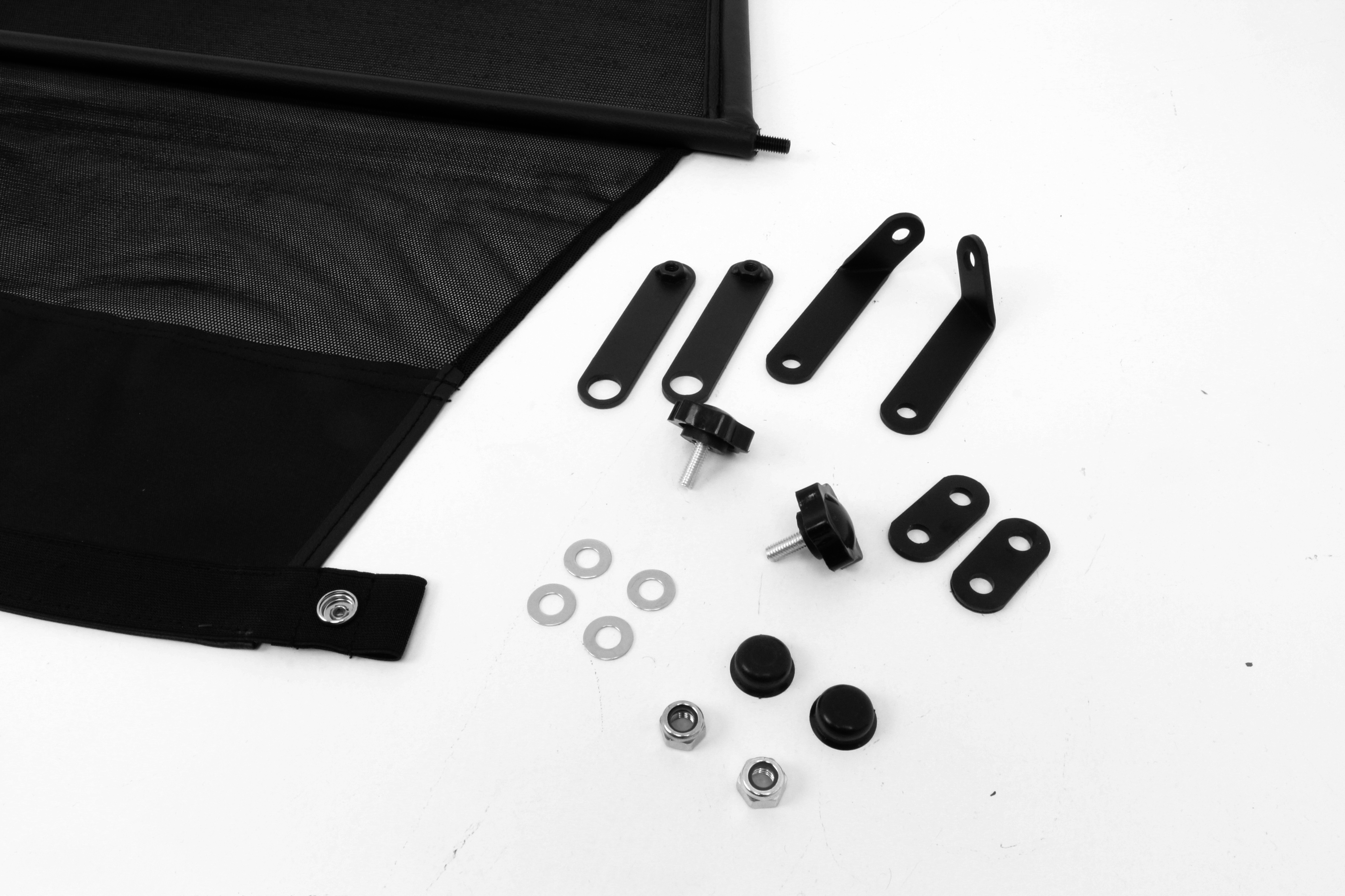 W prostej wersji osłona przeciwwiatrowa ma postać stalowej ramy rurowej z rozpiętą siatką, która po zamontowaniu za przedziałem kierowcy prowadzi strumienie powietrza nad wnętrzem pojazdu, redukując zawirowania powietrza występujące zwykle podczas jazdy kabrioletem. Ramy osłon przeciwwiatrowych wykonane są z wysokiej jakości rur stalowych o grubości dostosowanej do danego modelu, starannie zespawane i obszyte sztuczną skórą odporną na warunki atmosferyczne. Siatkę rozpinaną na ramie wytwarzamy z wysokiej jakości mieszanki nylonowo-poliestrowej, odznaczającej się wysoką sprężystością i odpornością na promieniowanie ultrafioletowe. Dzięki odpowiednim elementom montażowym i napinającym, z zamontowaniem konstrukcji ramowo-siatkowej nawet nieprofesjonalista poradzi sobie w ciągu kilku minut.