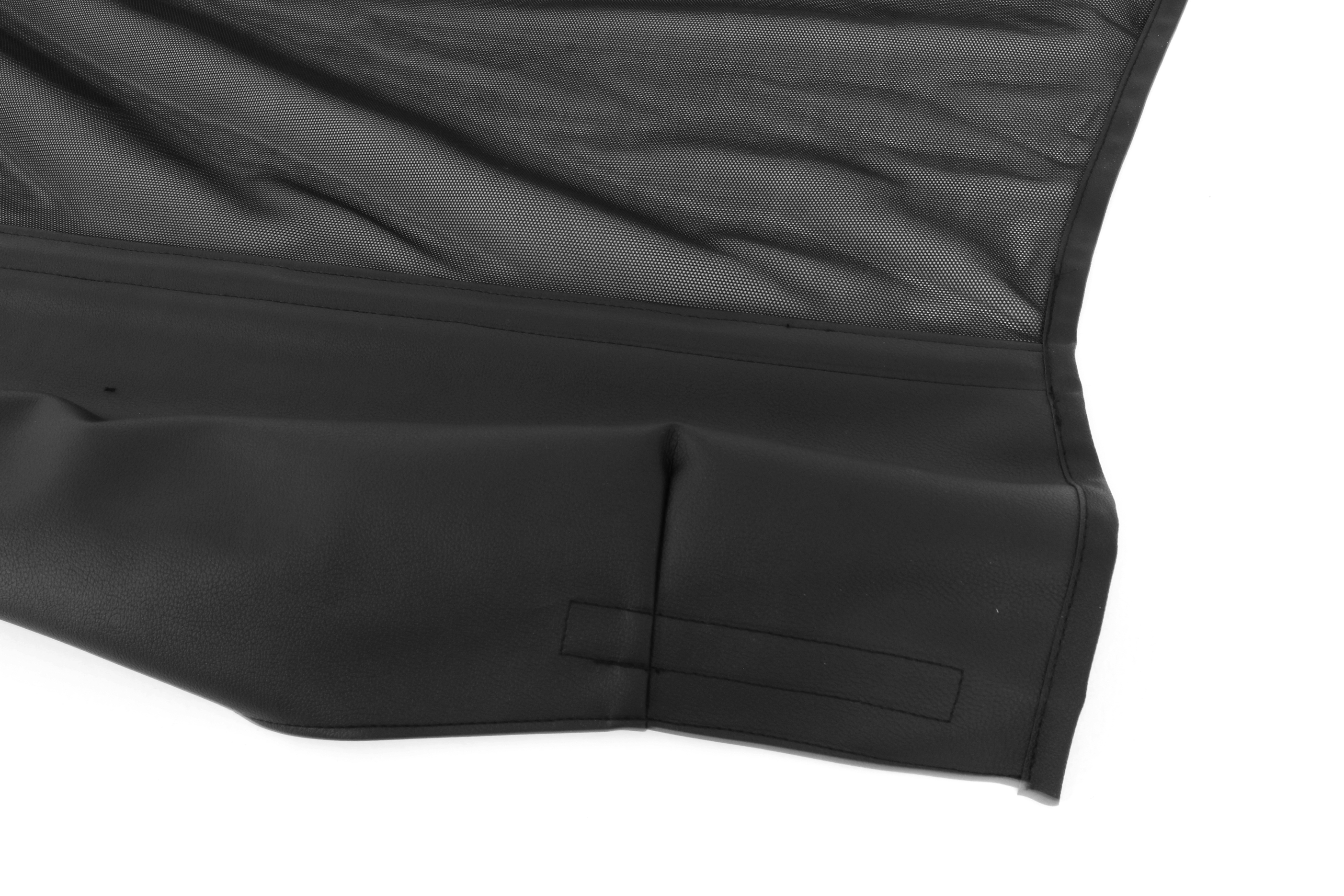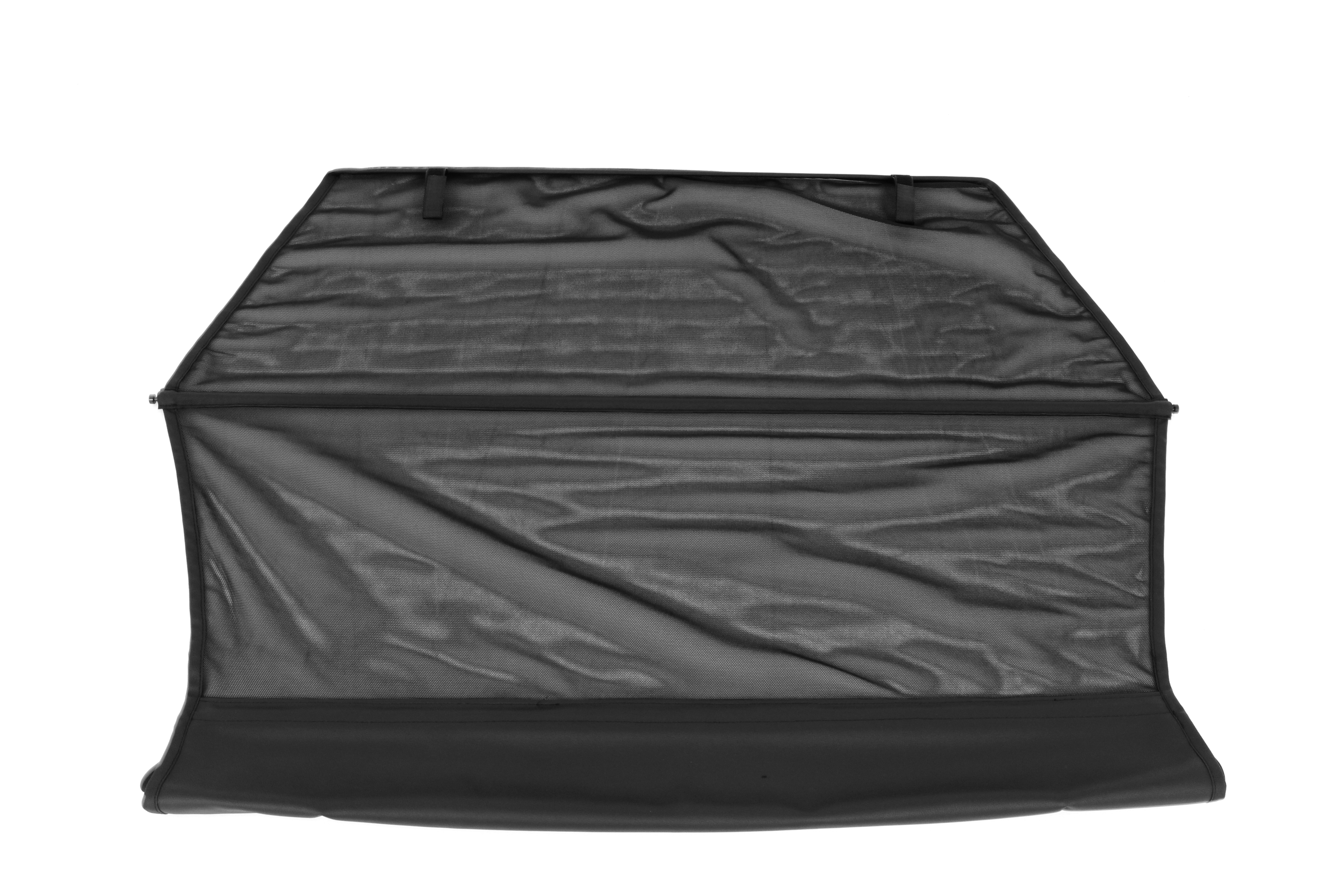 How does a wind deflector work?In its simplest form it is a mesh covered steel frame fixed behind the drivers seats, preventing the air swirling in the car every convertible driver knows. The deflector frames are made from high-grade steel tubes, bowed in car specific form and size, accurately welded and covered with weatherproof artificial leather with high-quality seams. A high-quality nylon-polyester blended fabric mesh is used as clothing, characterised by highest tensile strength and UV-resistance. Mesh, respectively frame systems can be mounted with the installation kits even by laymen within a few minutes!