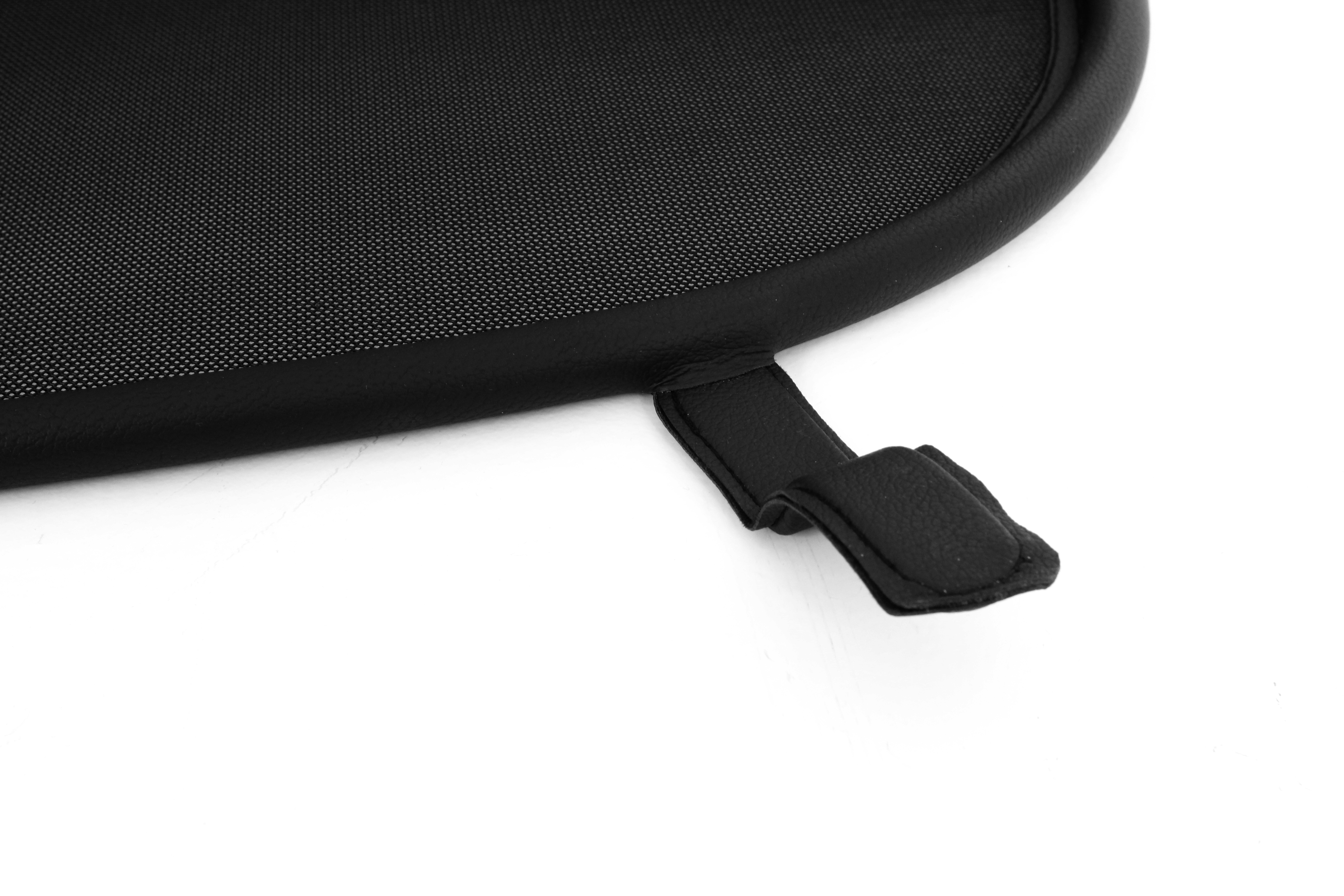 How does a wind deflector work?In its simplest form it is a mesh covered steel frame fixed behind the drivers seats, preventing the air swirling in the car every convertible driver knows. The deflector frames are made from high-grade steel tubes, bowed in car specific form and size, accurately welded and covered with weatherproof artificial leather with high-quality seams. A high-quality nylon-polyester blended fabric mesh is used as clothing, characterised by highest tensile strength and UV-resistance. Mesh, respectively frame systems can be mounted with the installation kits even by laymen within a few minutes!