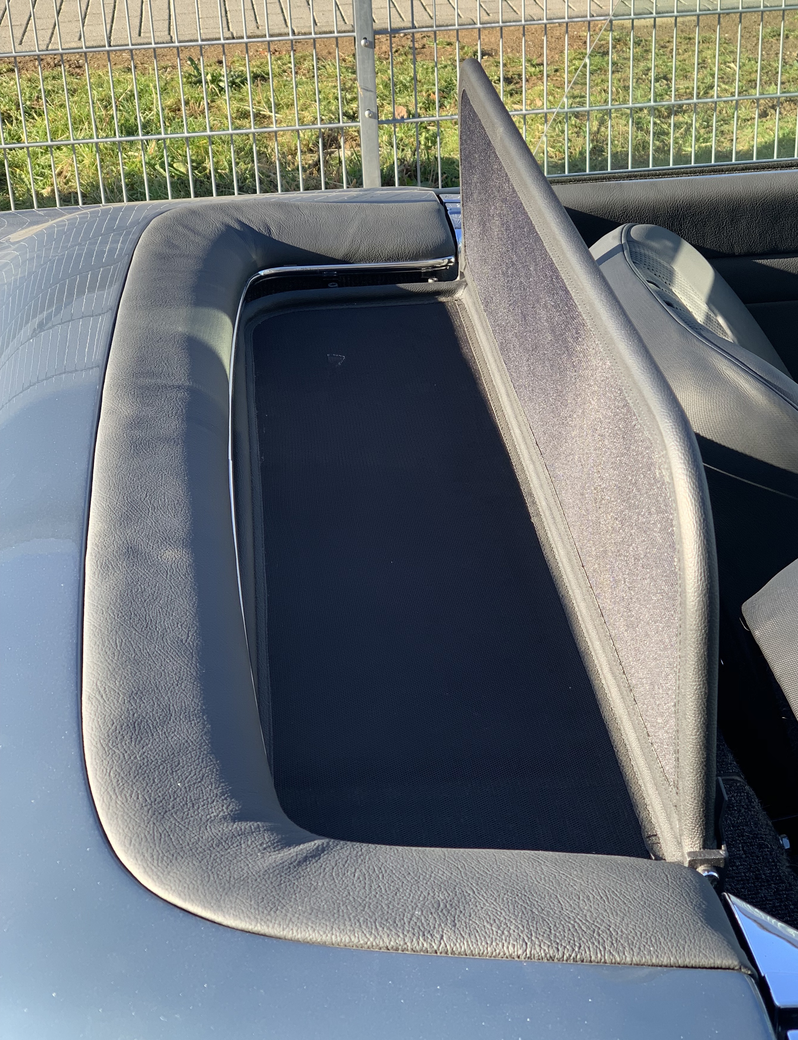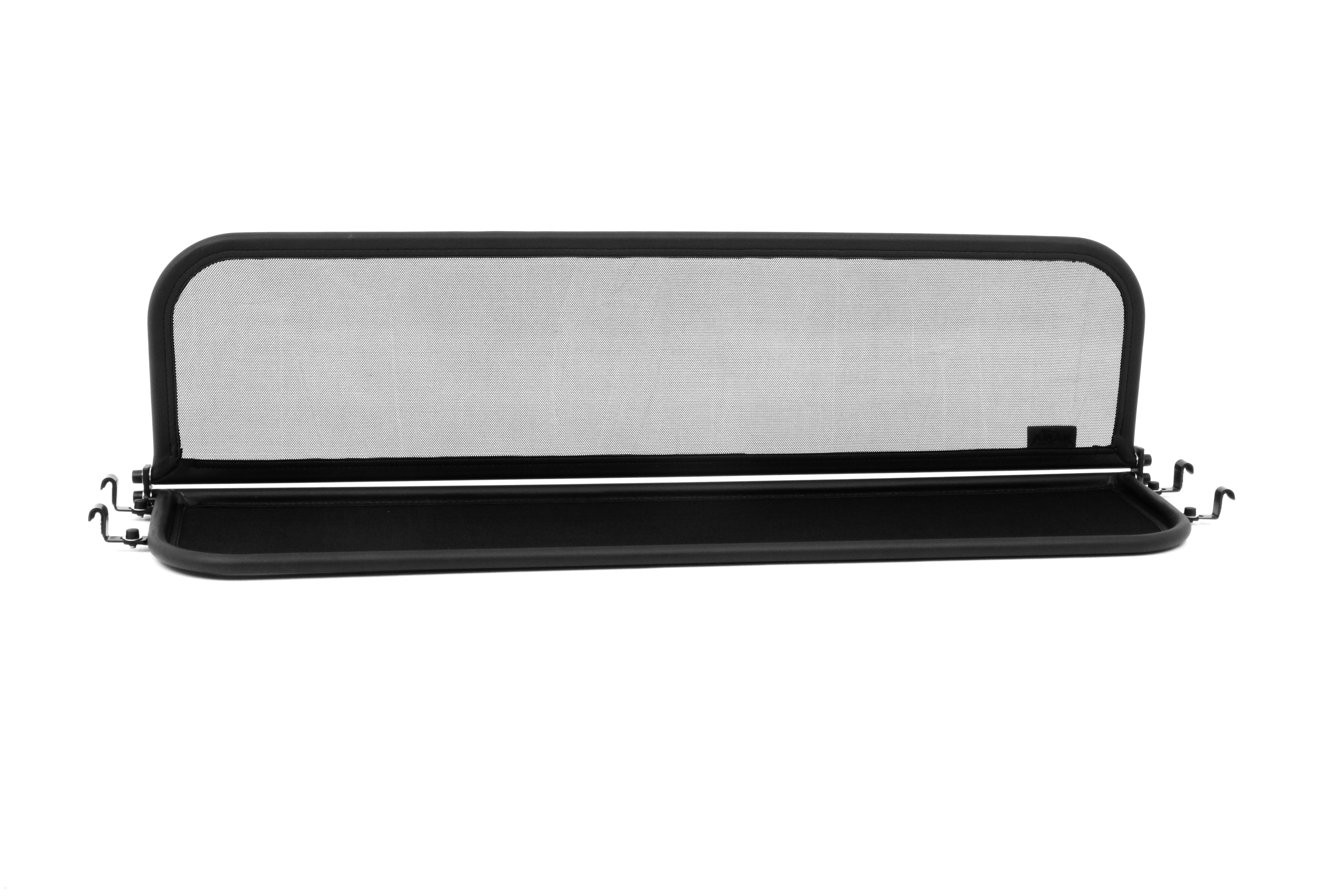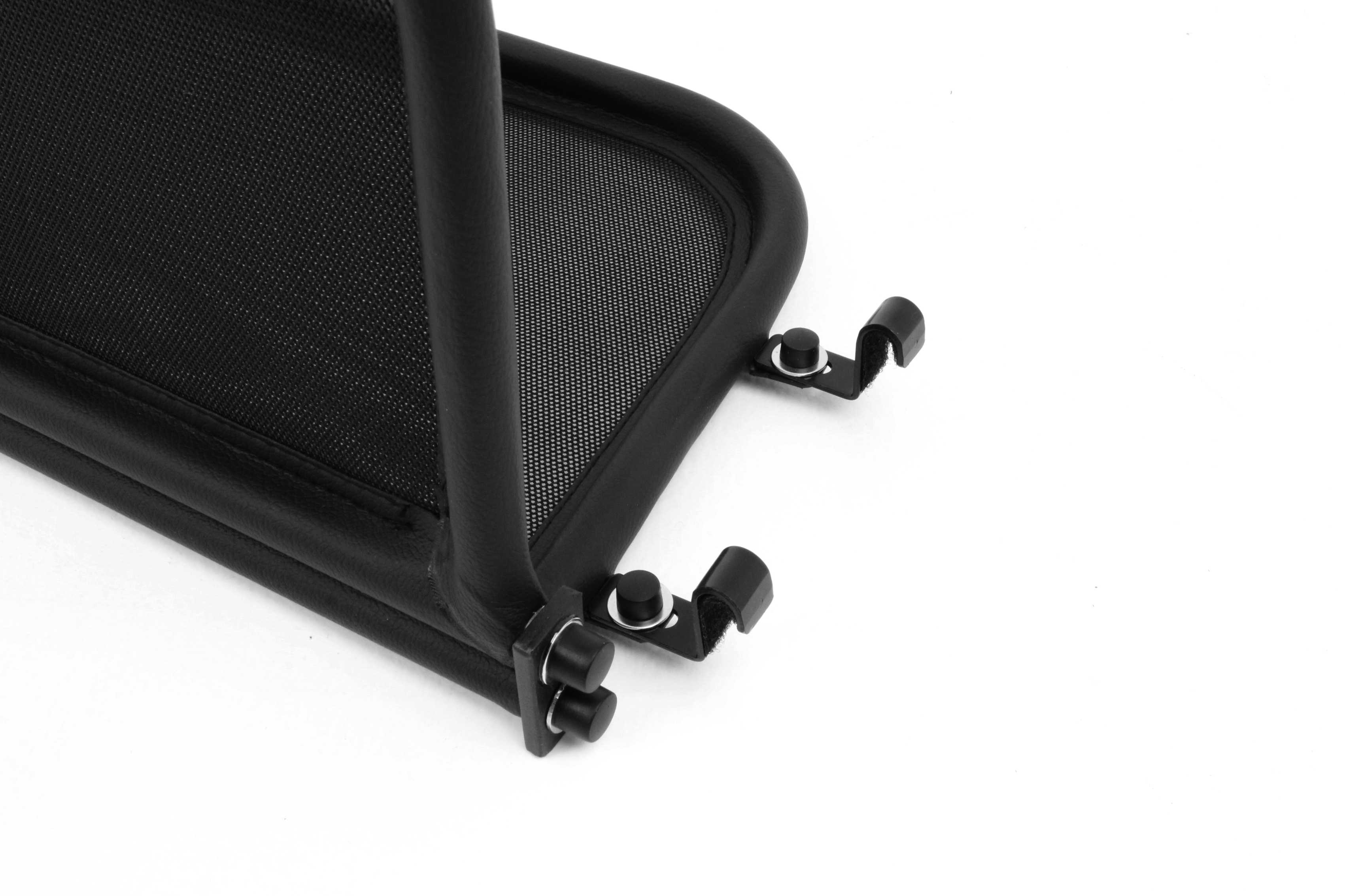 How does a wind deflector work?In its simplest form it is a mesh covered steel frame fixed behind the drivers seats, preventing the air swirling in the car every convertible driver knows. The deflector frames are made from high-grade steel tubes, bowed in car specific form and size, accurately welded and covered with weatherproof artificial leather with high-quality seams. A high-quality nylon-polyester blended fabric mesh is used as clothing, characterised by highest tensile strength and UV-resistance. Mesh, respectively frame systems can be mounted with the installation kits even by laymen within a few minutes!