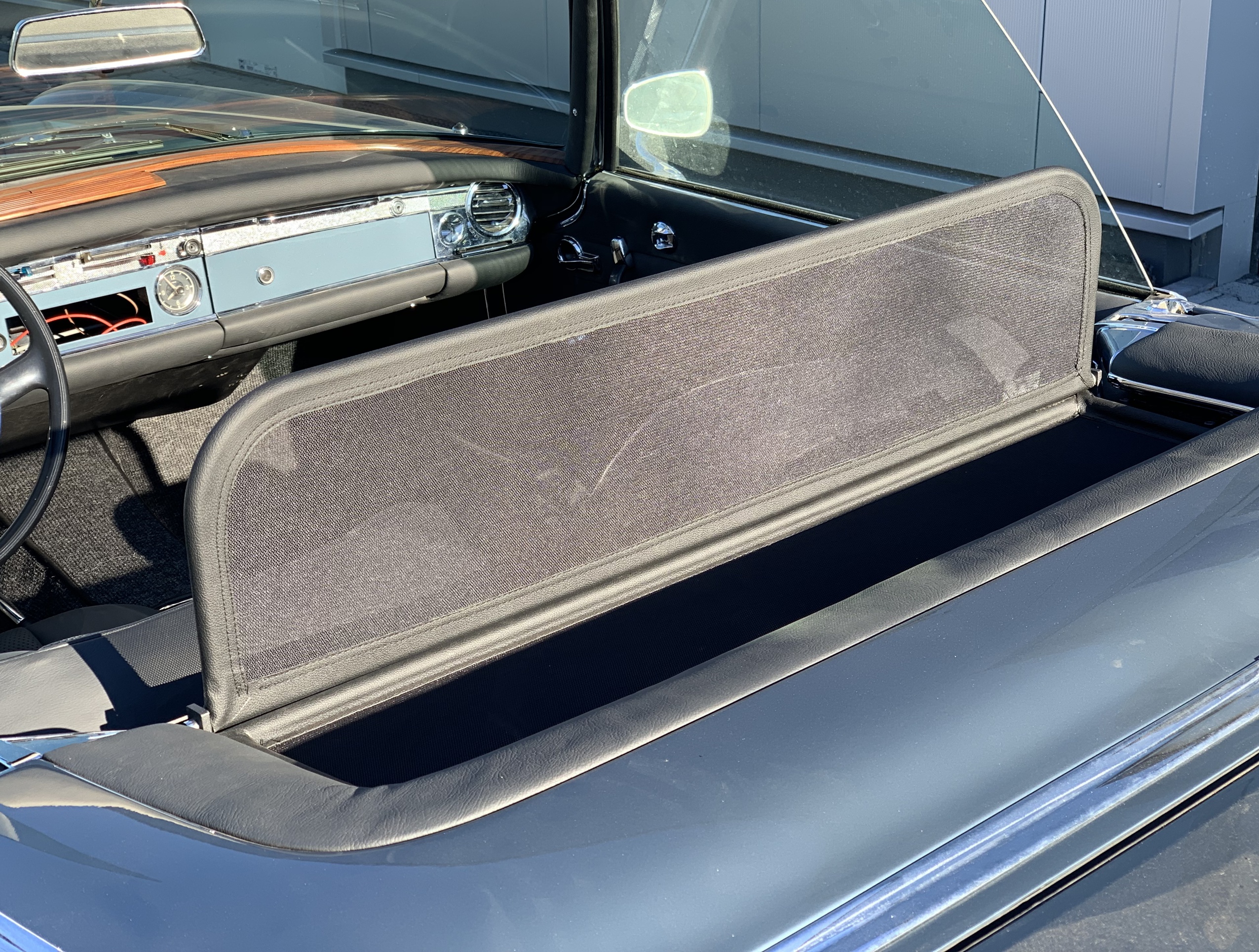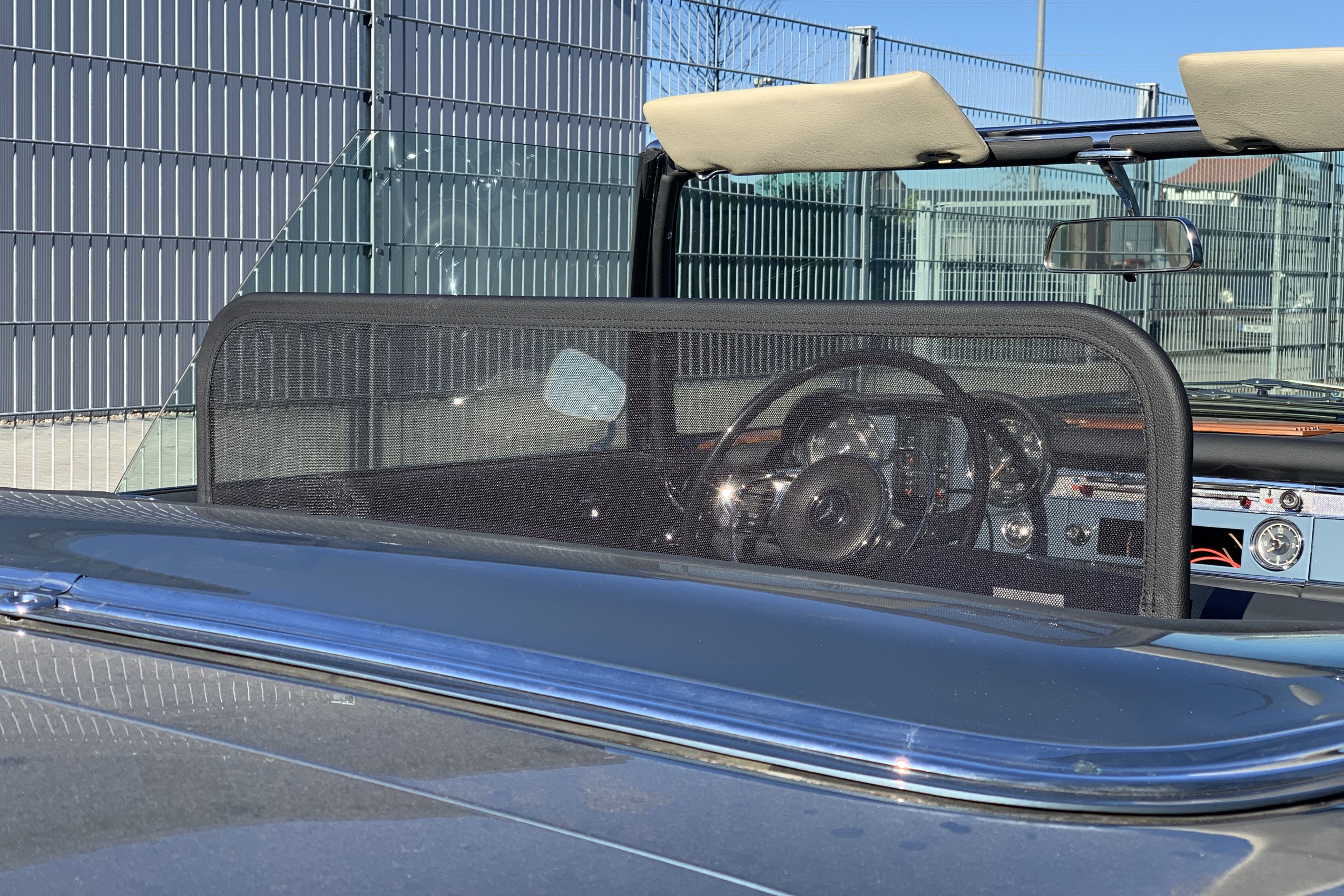 A mounted wind deflector protects passengers from unpleasant air swirling cooling head, shoulders and neck, makes driving in your convertible the perfect pleasure!