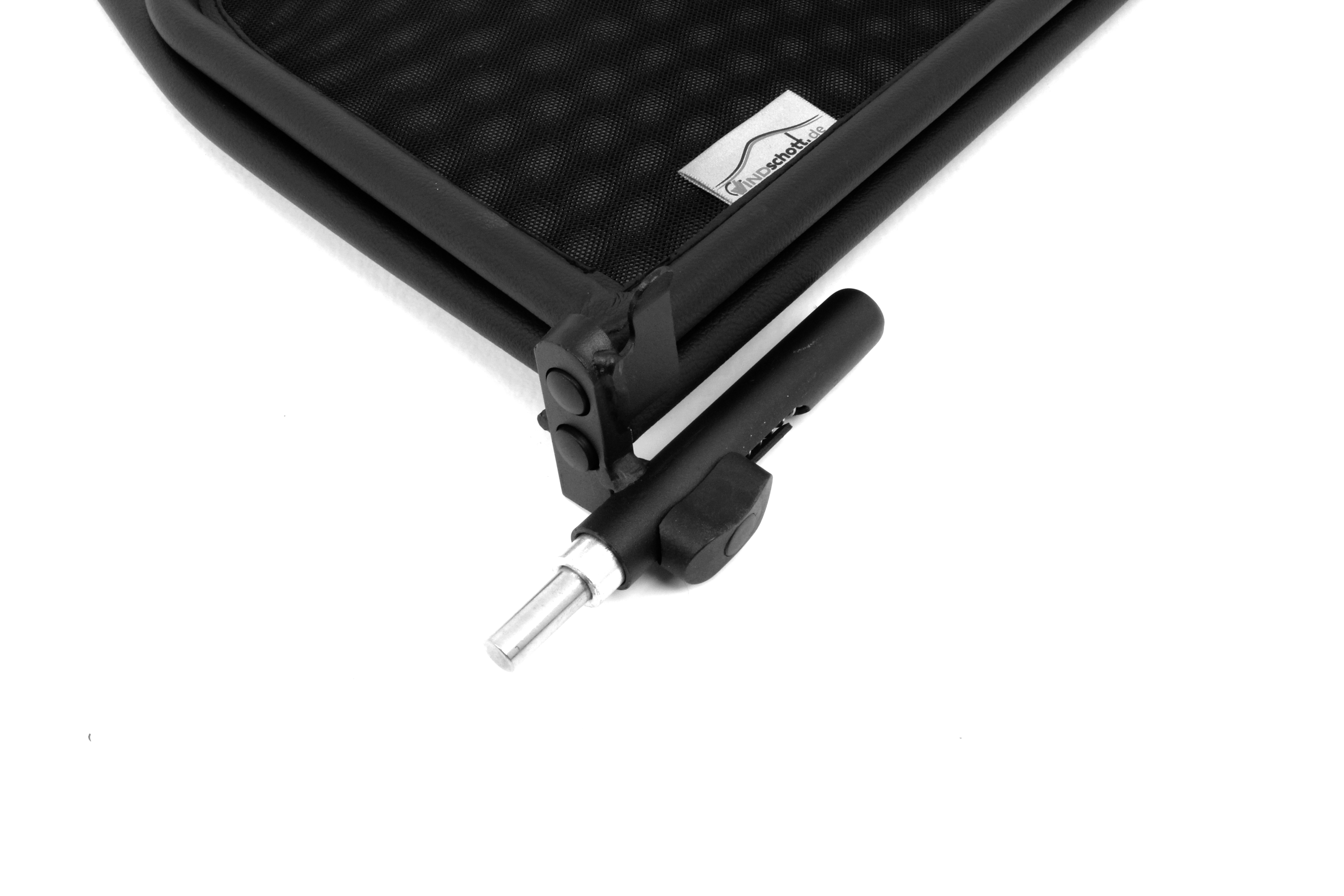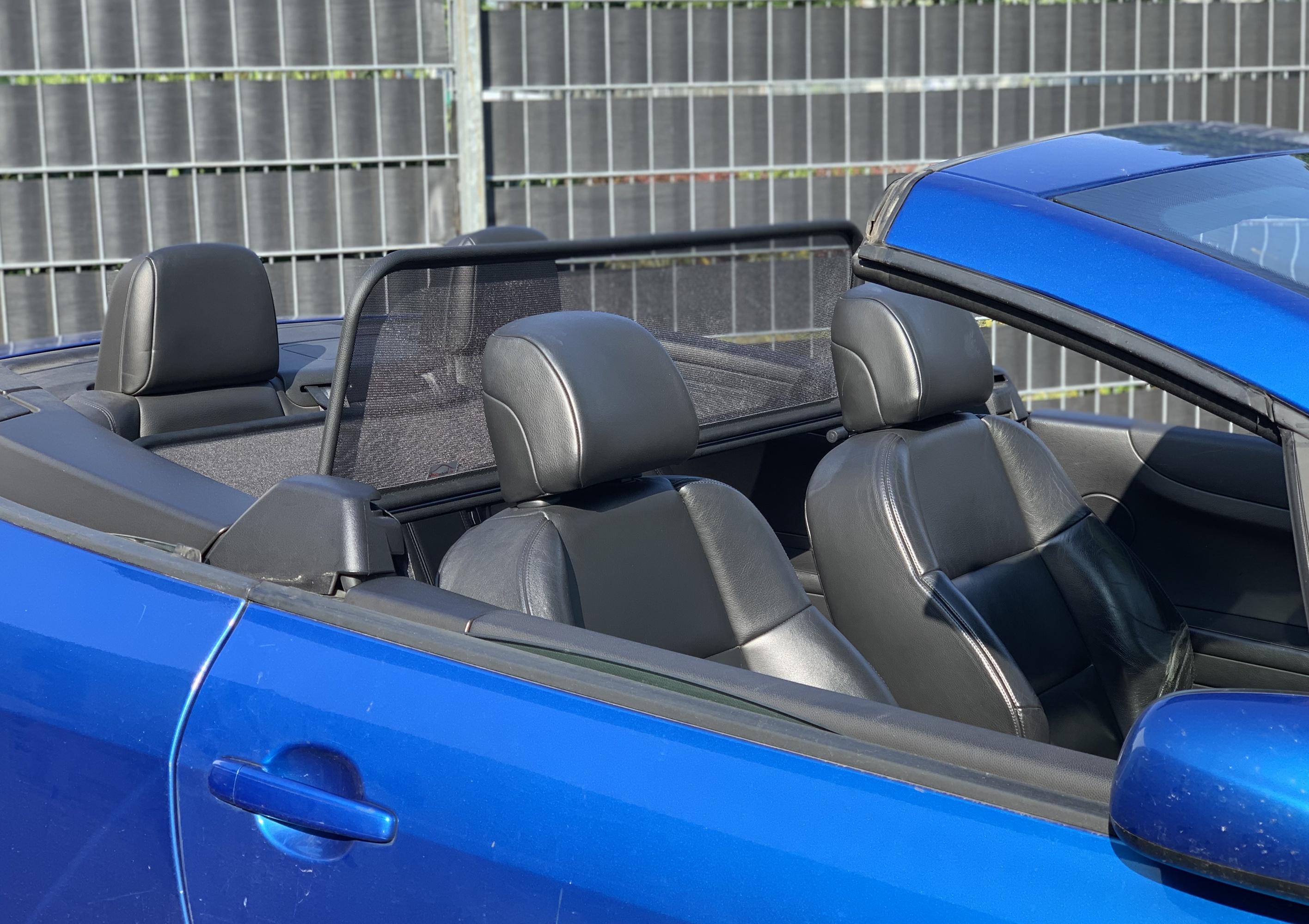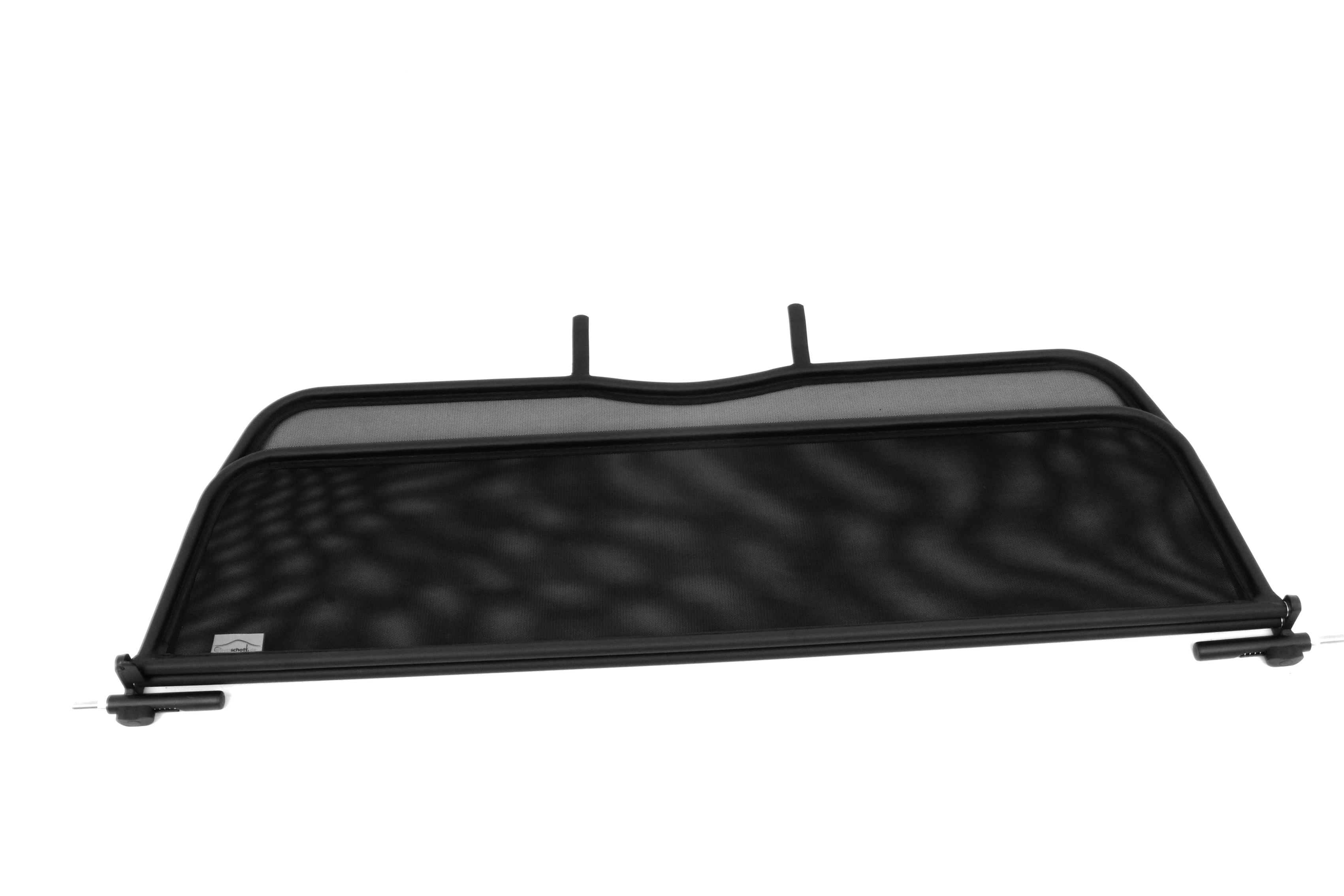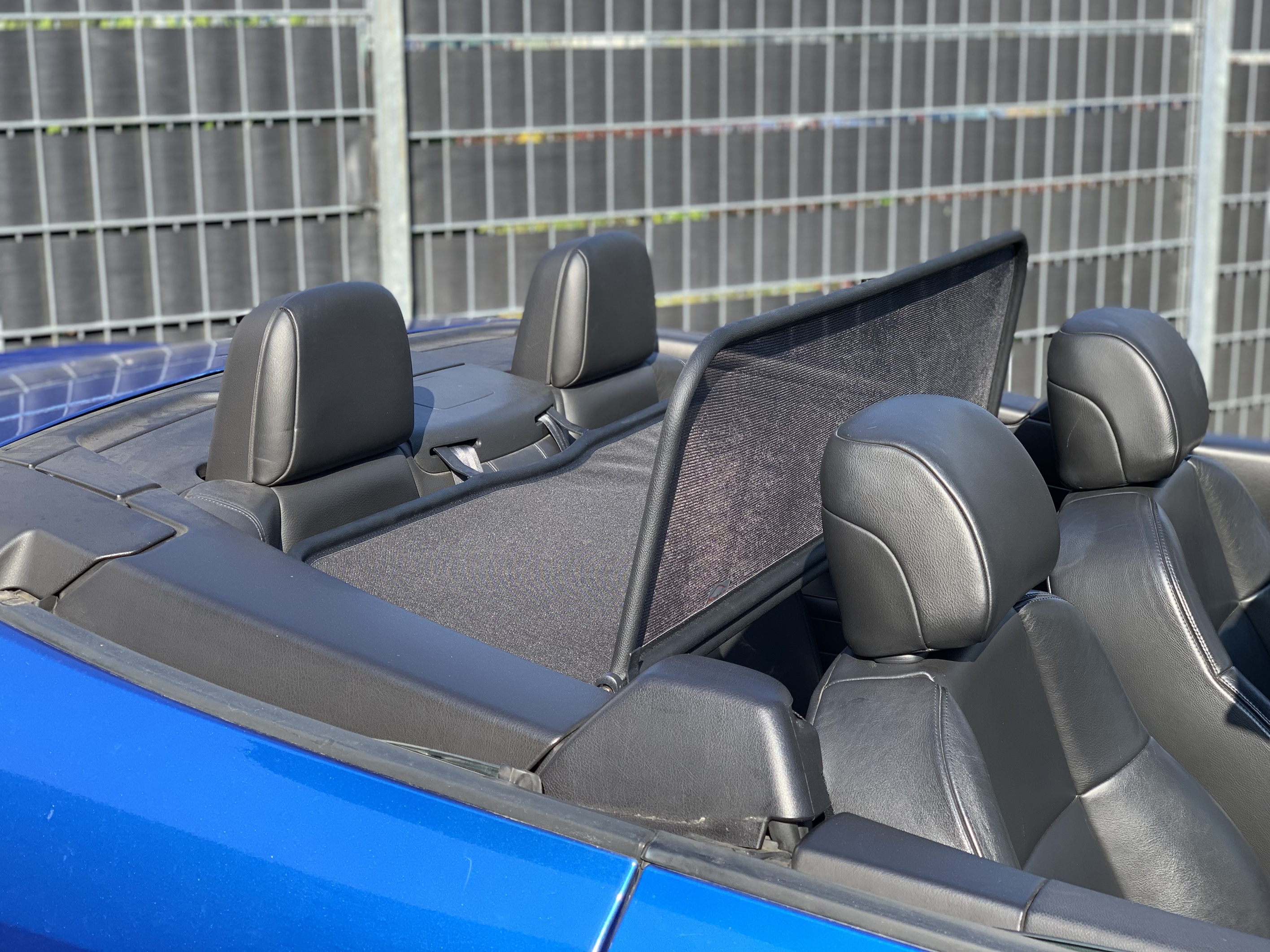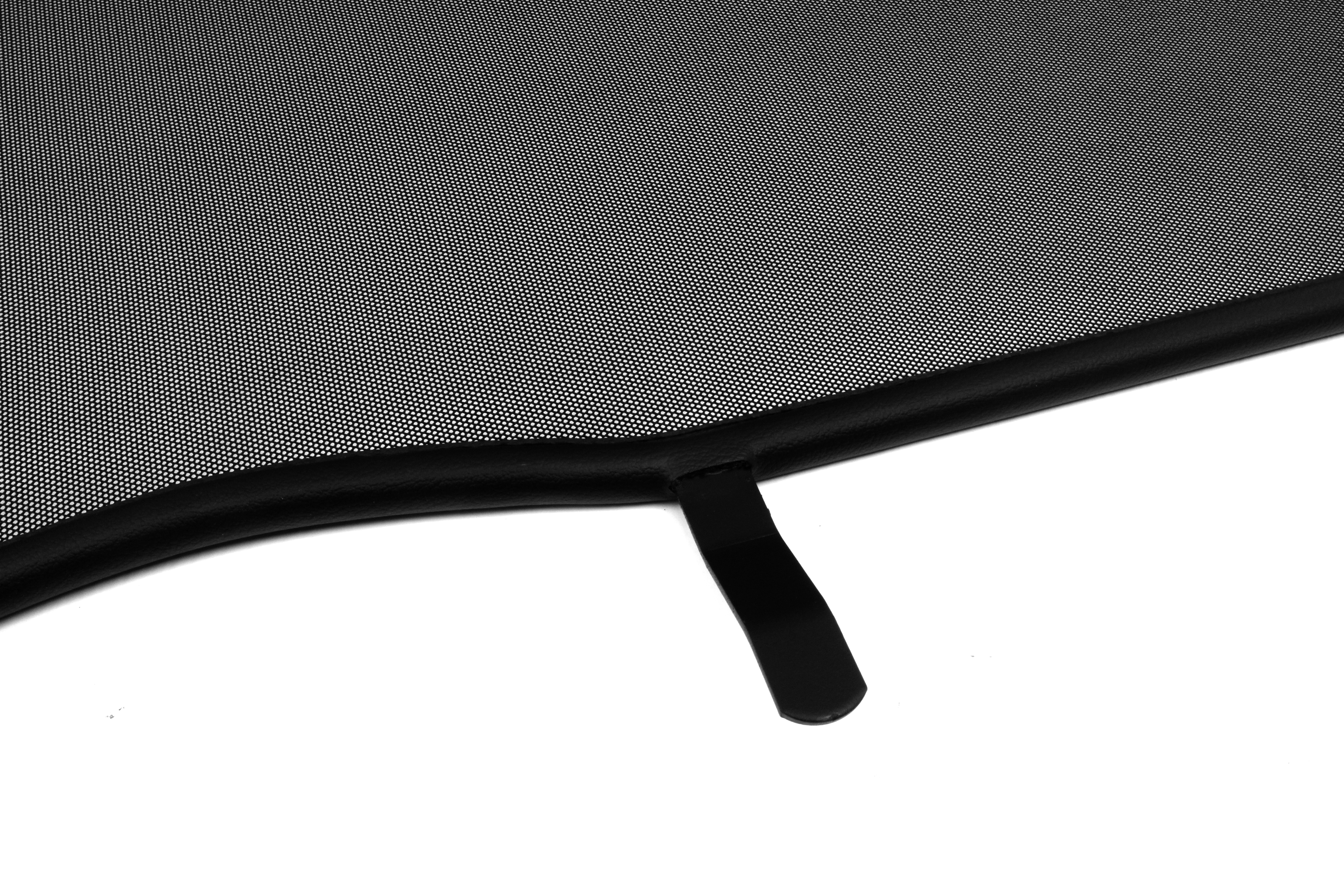 How does a wind deflector work?In its simplest form it is a mesh covered steel frame fixed behind the drivers seats, preventing the air swirling in the car every convertible driver knows. The deflector frames are made from high-grade steel tubes, bowed in car specific form and size, accurately welded and covered with weatherproof artificial leather with high-quality seams. A high-quality nylon-polyester blended fabric mesh is used as clothing, characterised by highest tensile strength and UV-resistance. Mesh, respectively frame systems can be mounted with the installation kits even by laymen within a few minutes!