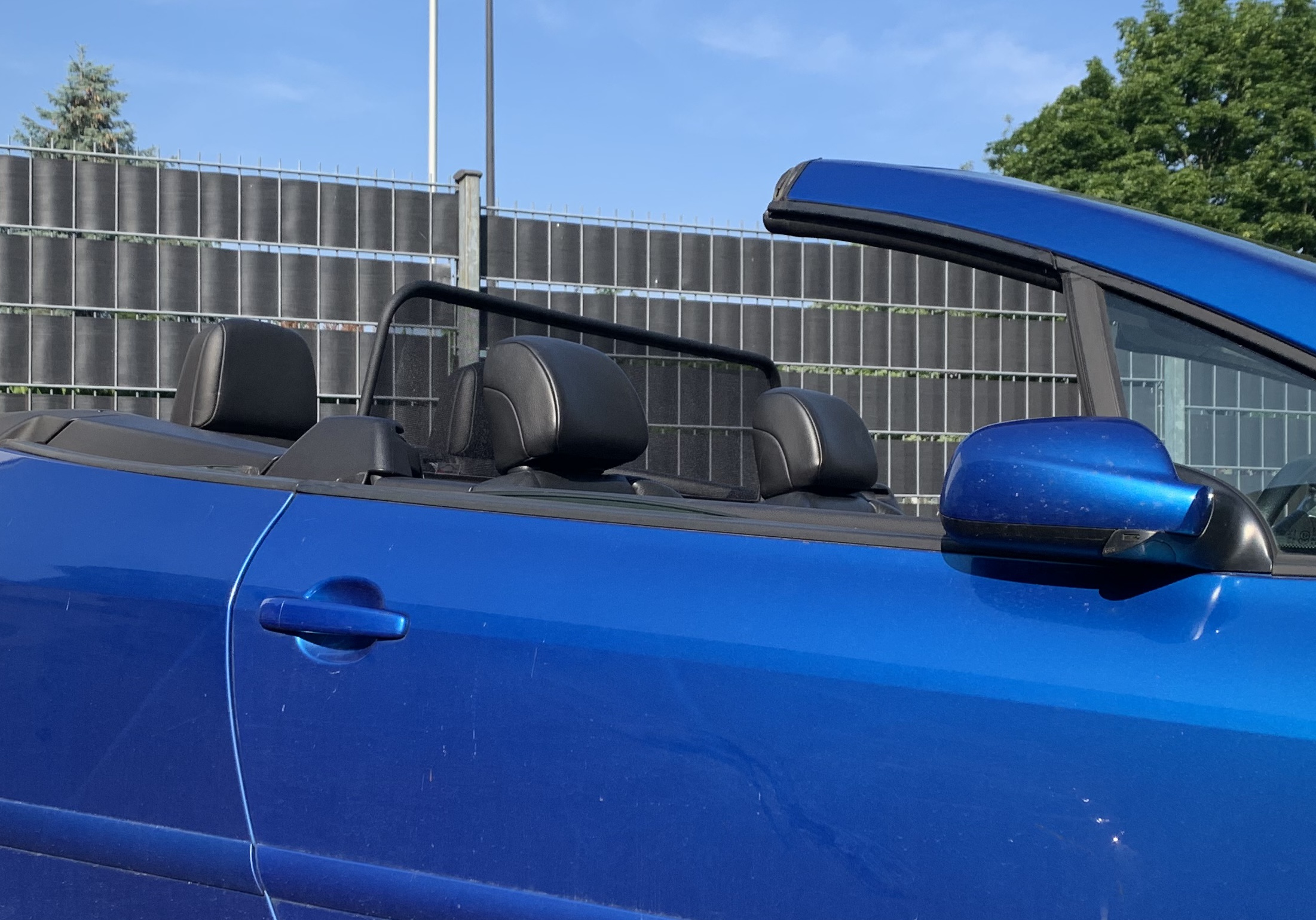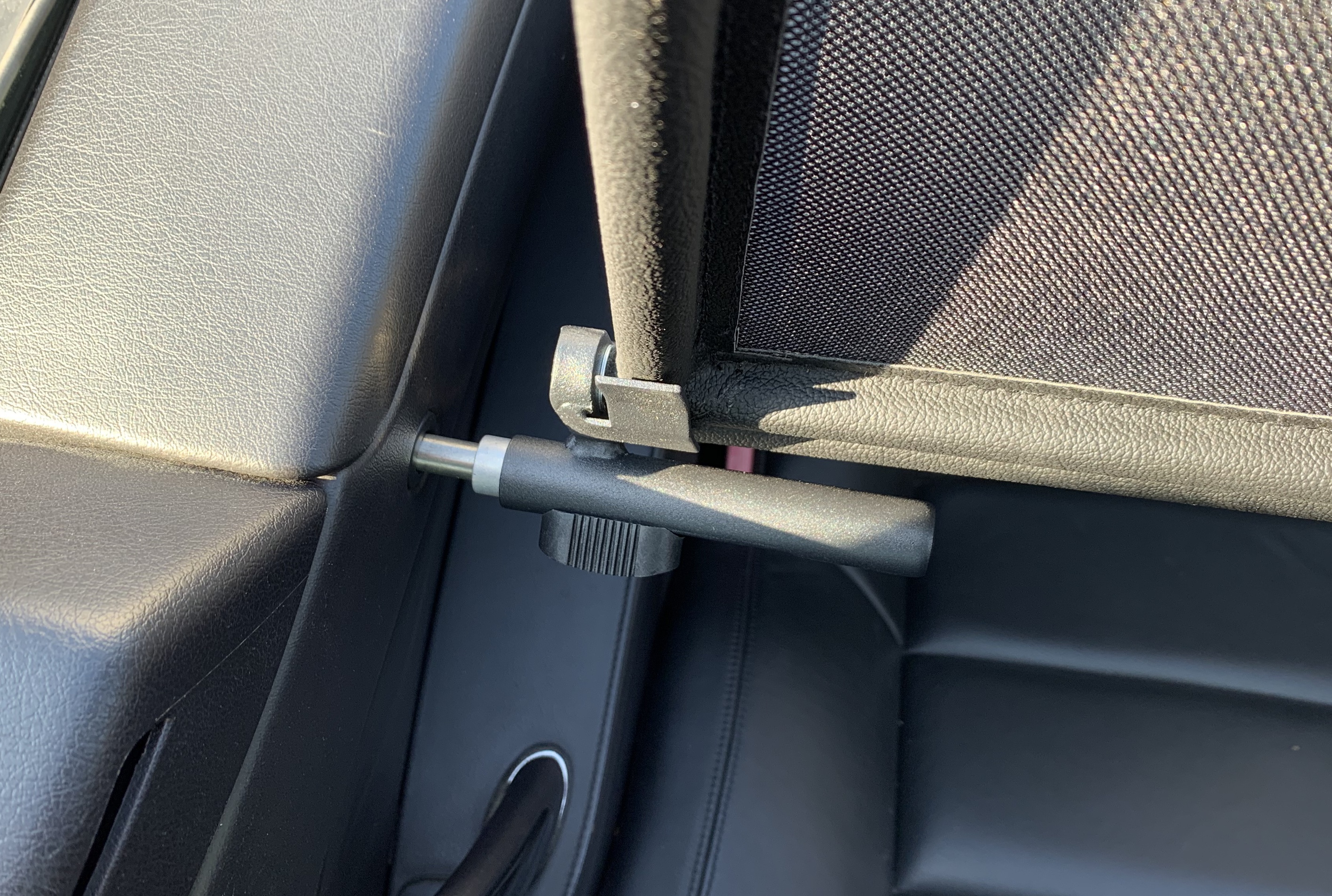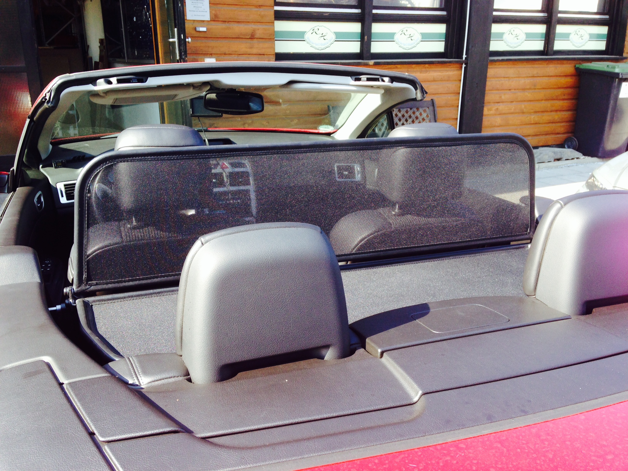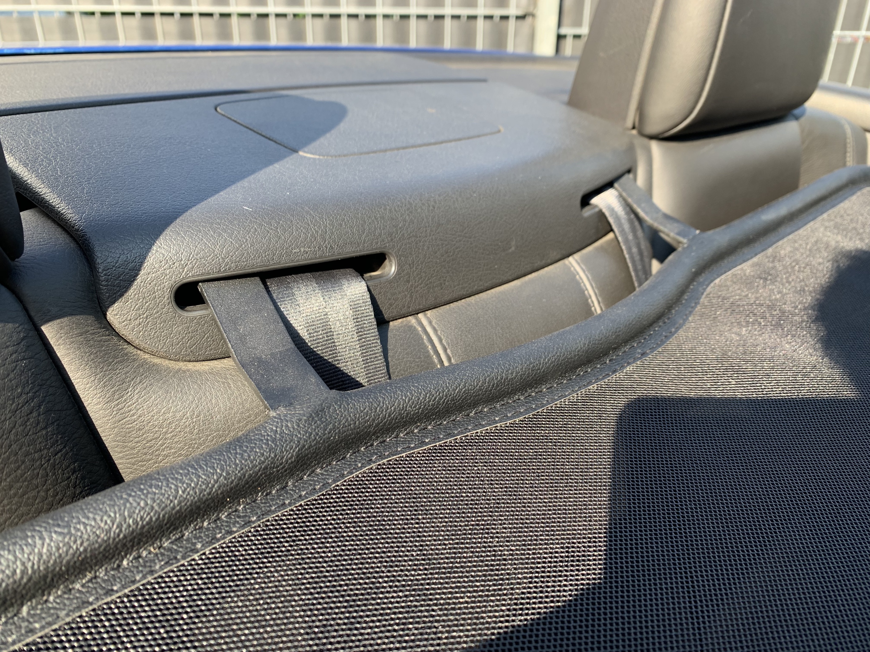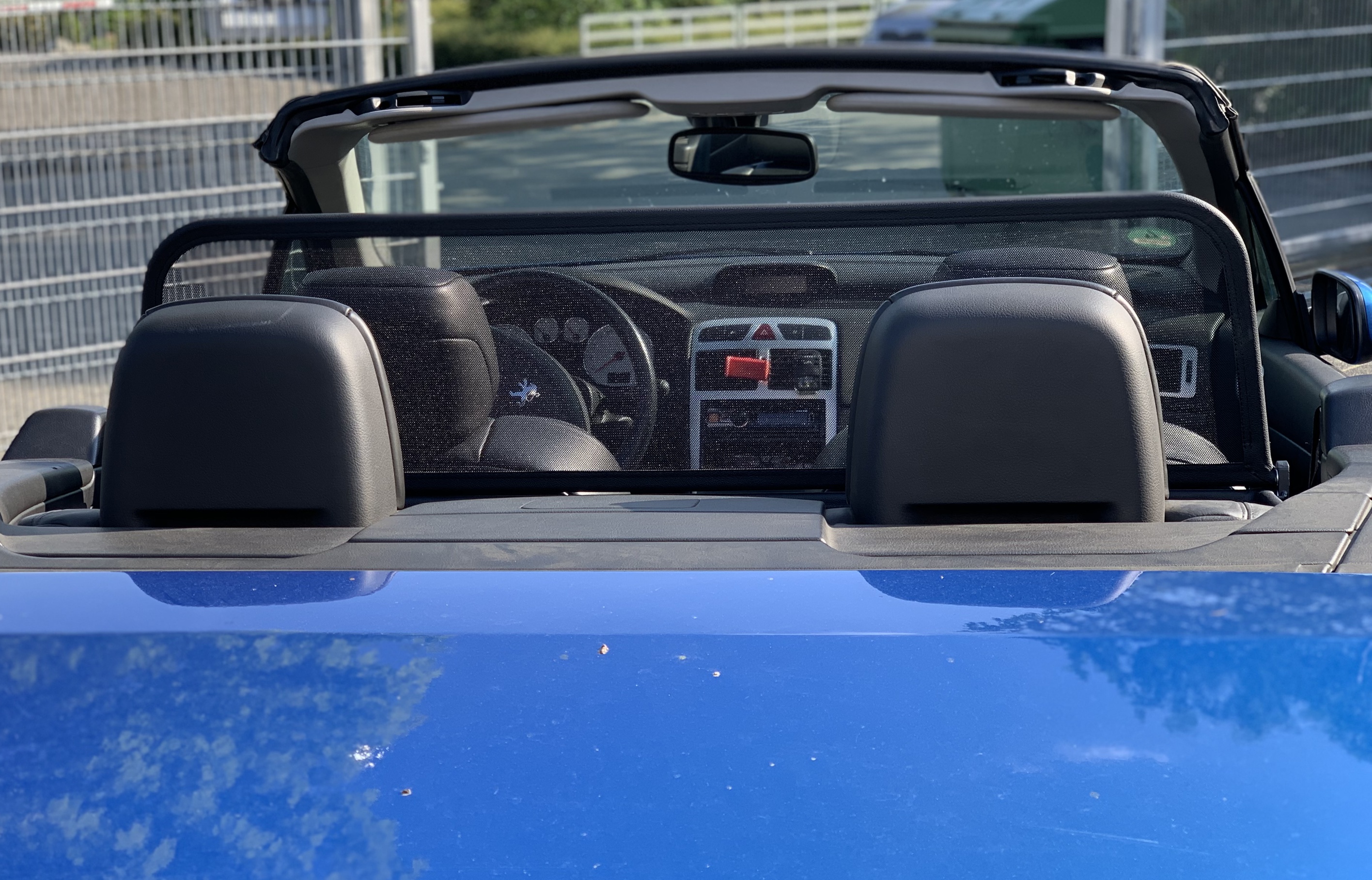 How does a wind deflector work?In its simplest form it is a mesh covered steel frame fixed behind the drivers seats, preventing the air swirling in the car every convertible driver knows. The deflector frames are made from high-grade steel tubes, bowed in car specific form and size, accurately welded and covered with weatherproof artificial leather with high-quality seams. A high-quality nylon-polyester blended fabric mesh is used as clothing, characterised by highest tensile strength and UV-resistance. Mesh, respectively frame systems can be mounted with the installation kits even by laymen within a few minutes!