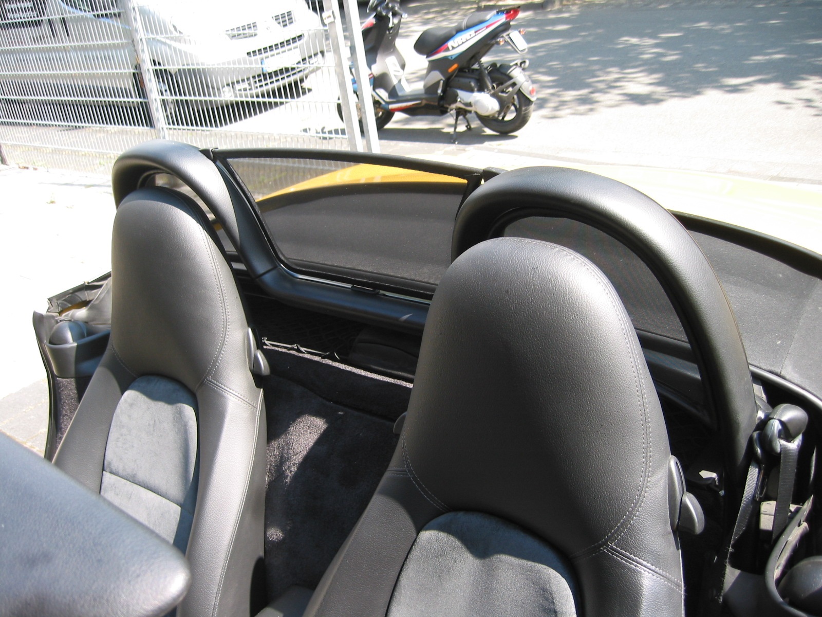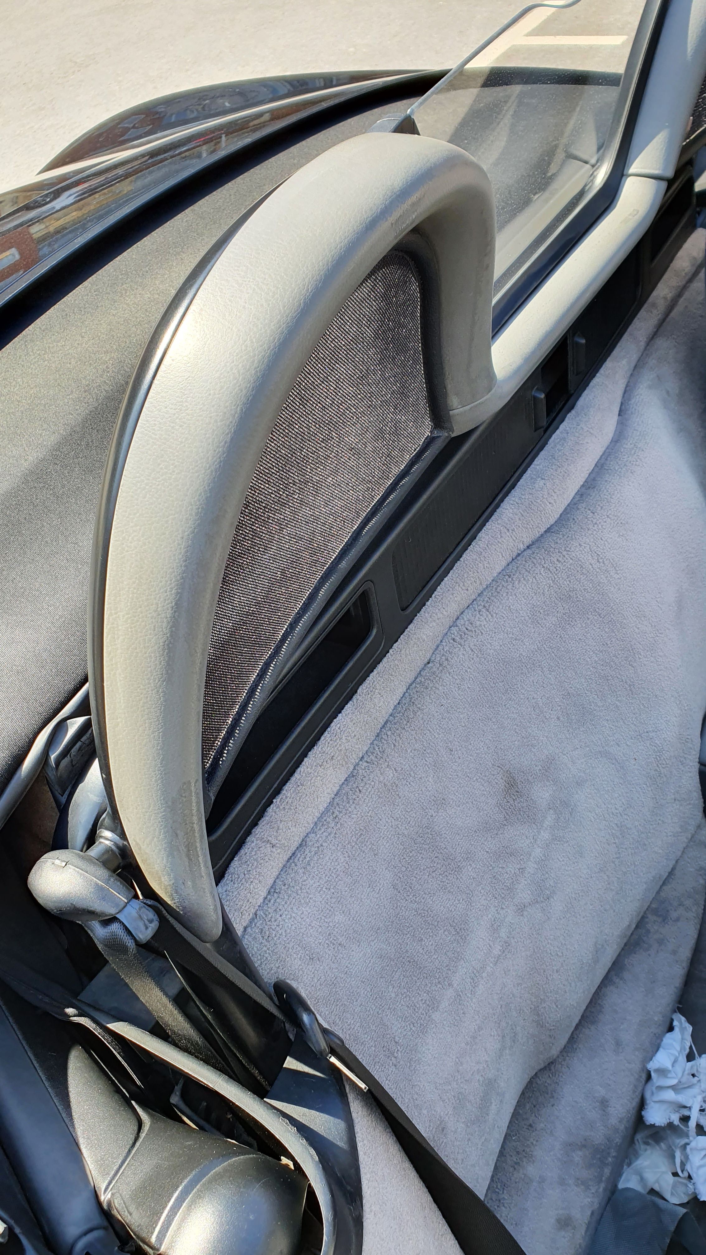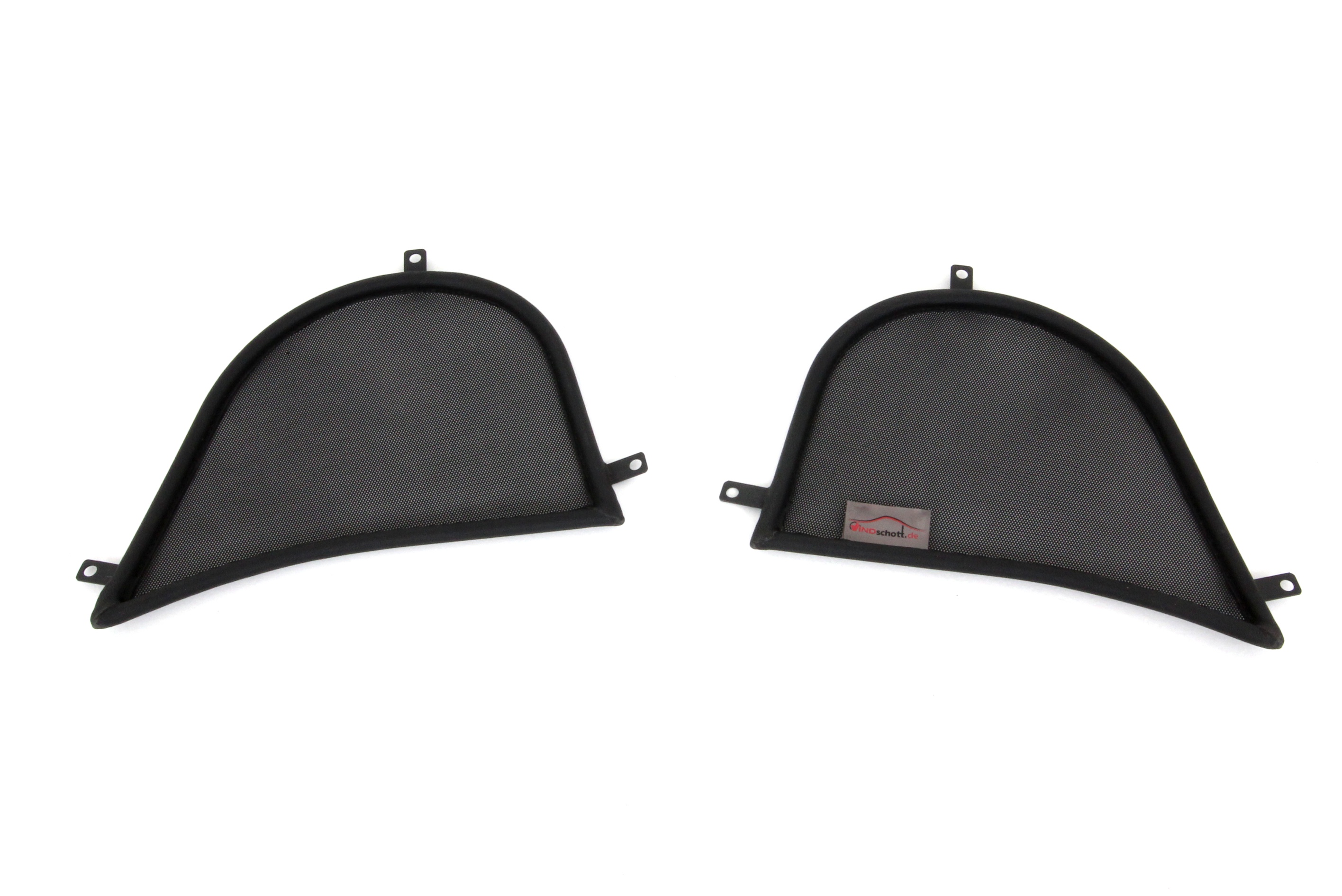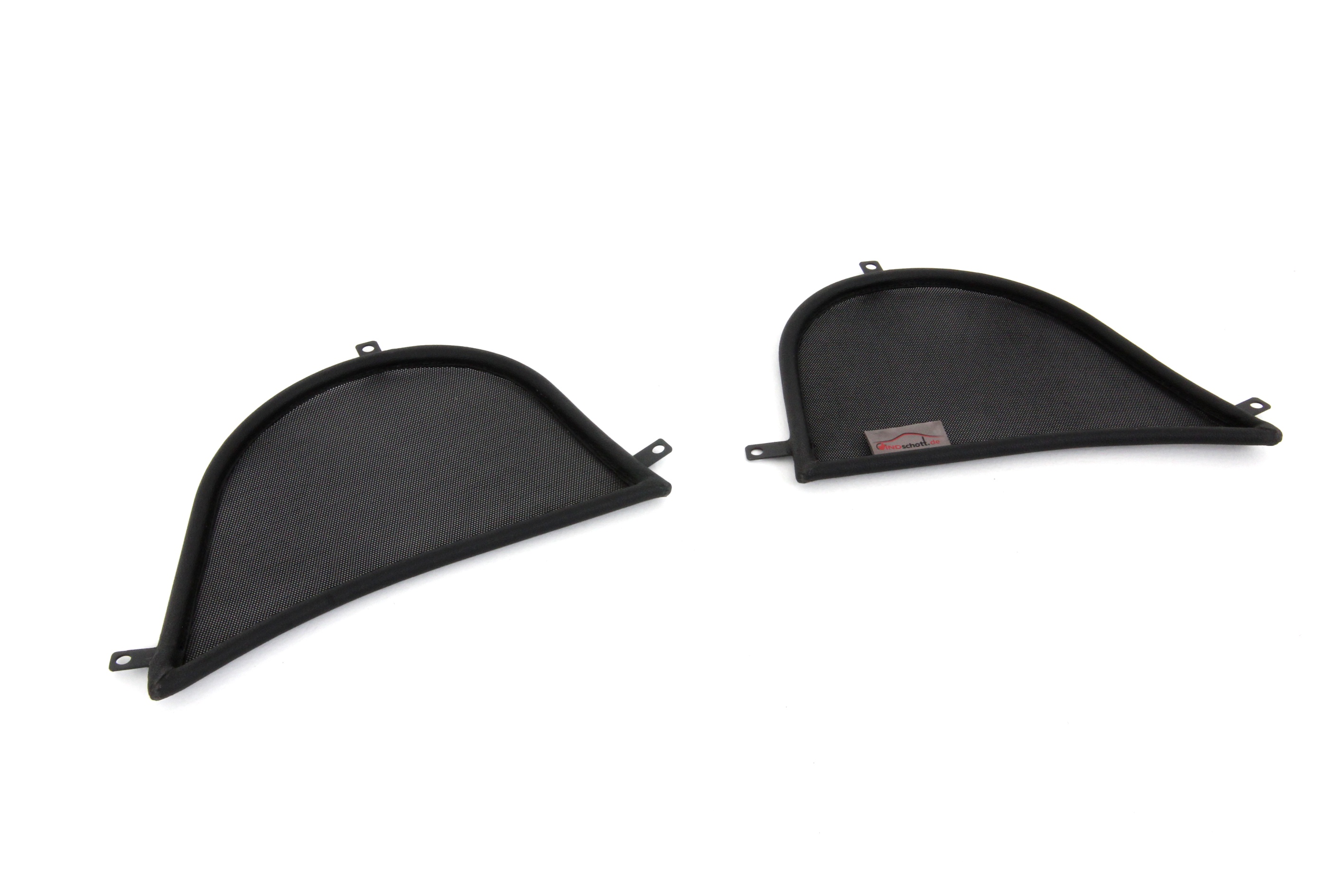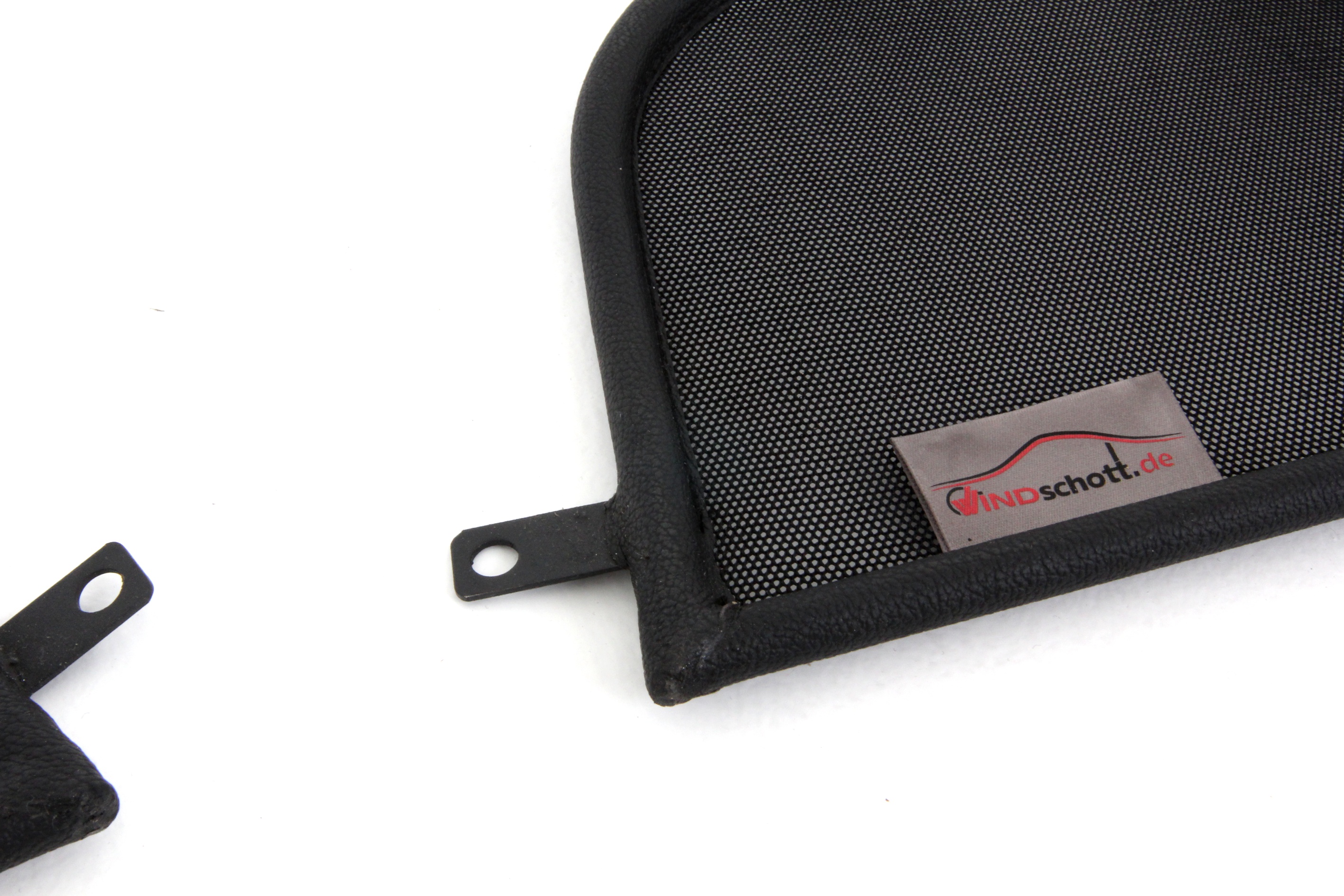 How does a wind deflector work?In its simplest form it is a mesh covered steel frame fixed behind the drivers seats, preventing the air swirling in the car every convertible driver knows. The deflector frames are made from high-grade steel tubes, bowed in car specific form and size, accurately welded and covered with weatherproof artificial leather with high-quality seams. A high-quality nylon-polyester blended fabric mesh is used as clothing, characterised by highest tensile strength and UV-resistance. Mesh, respectively frame systems can be mounted with the installation kits even by laymen within a few minutes!