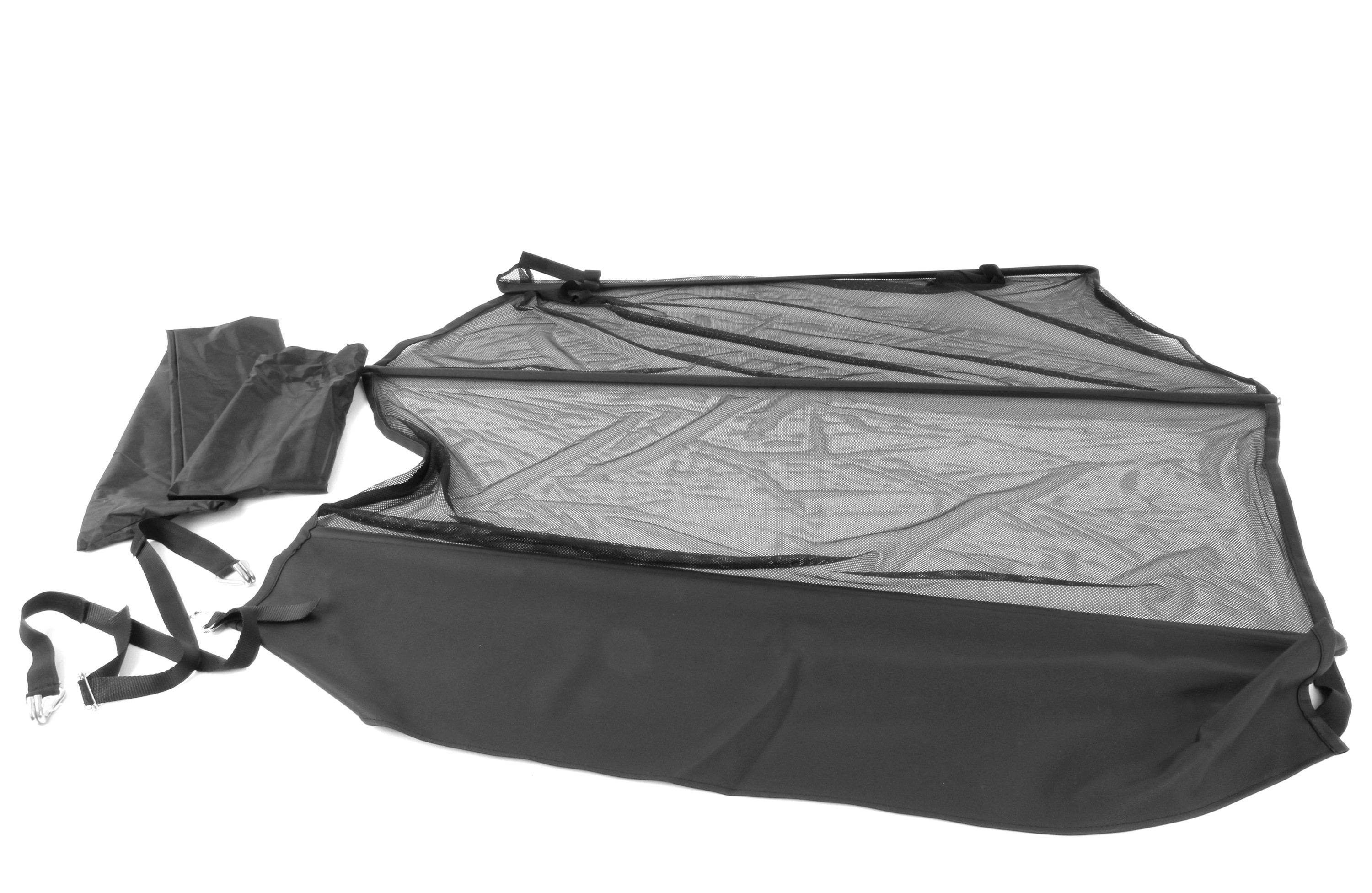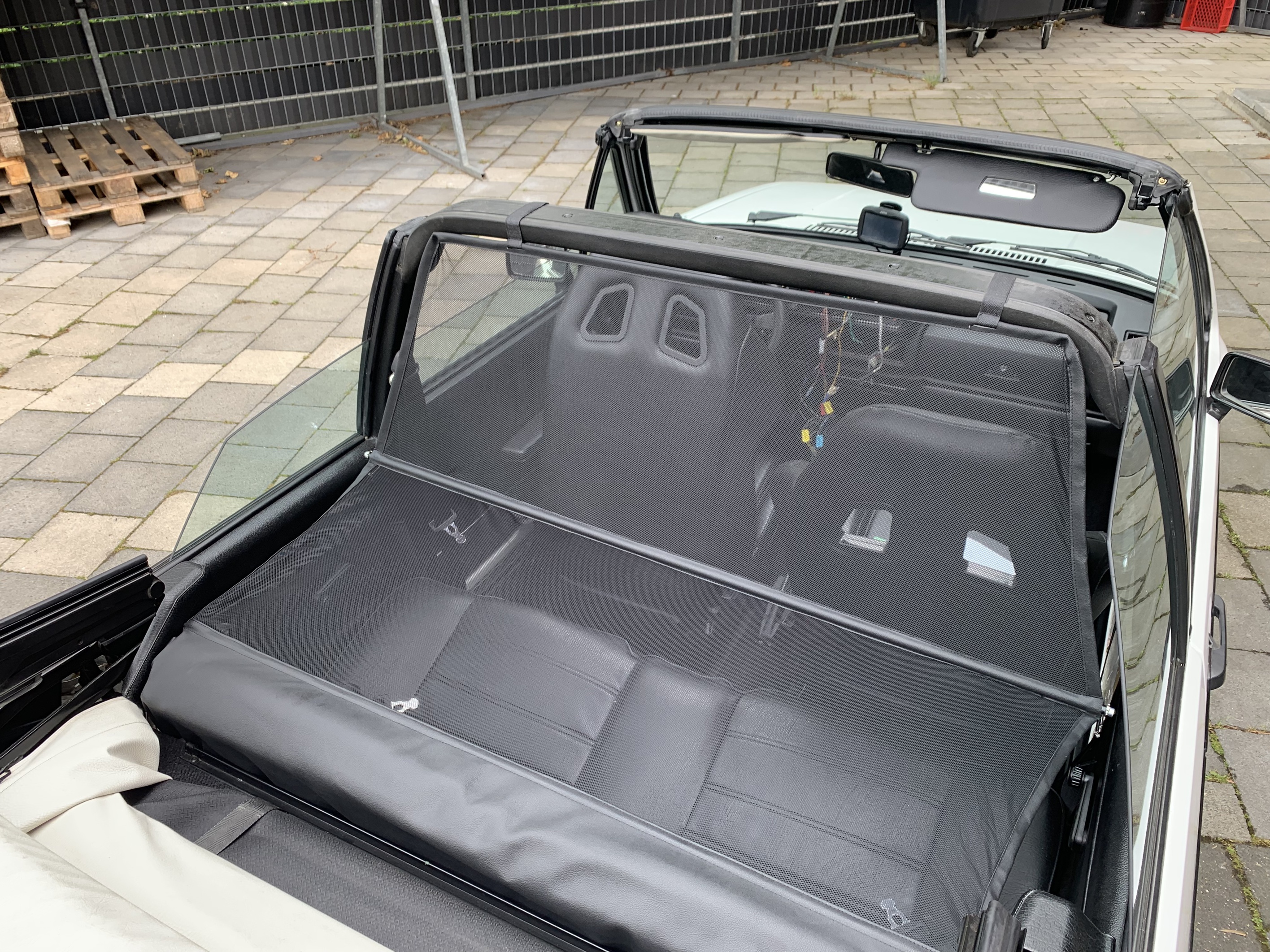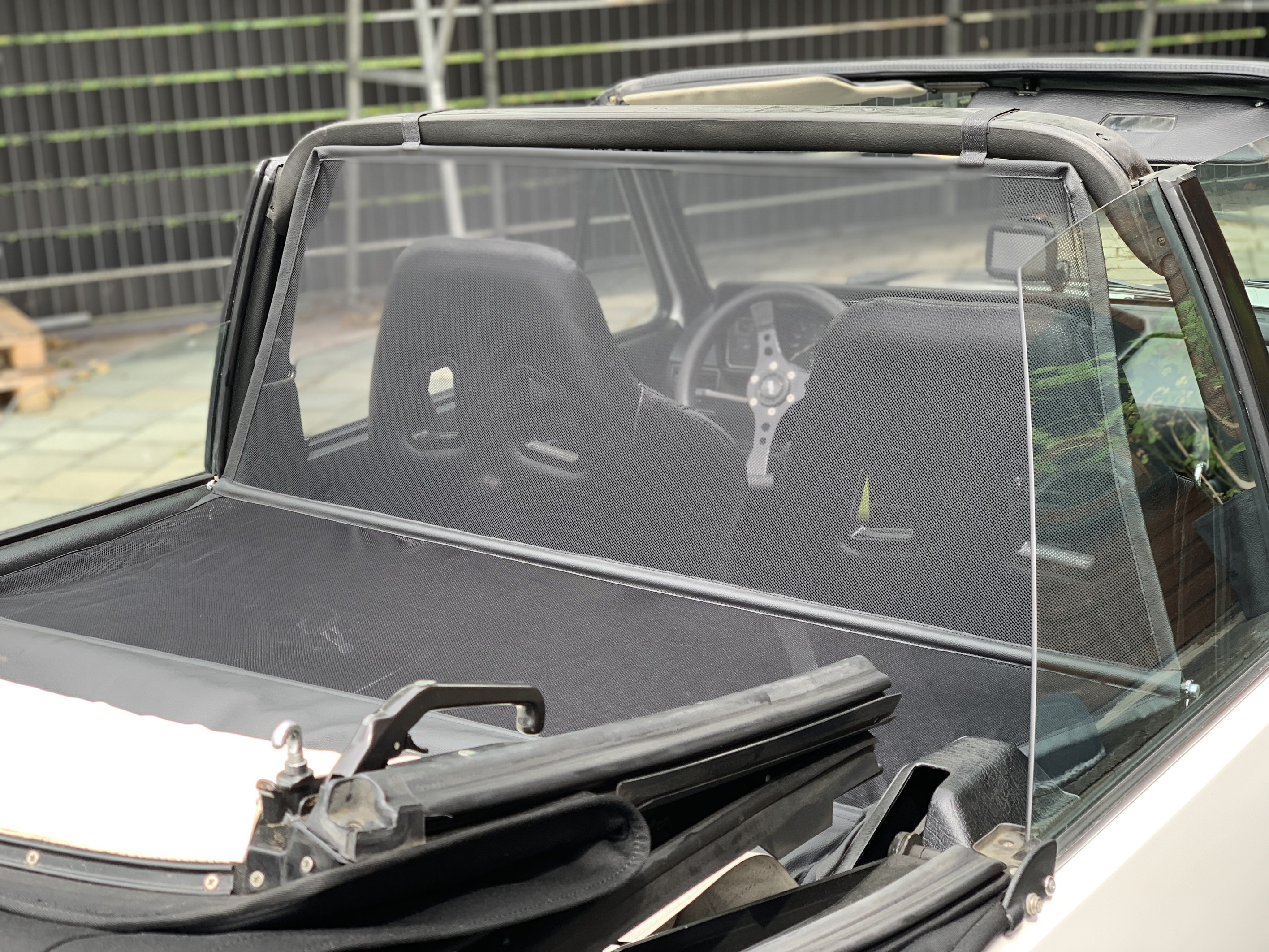 How does a wind deflector work?In its simplest form it is a mesh covered steel frame fixed behind the drivers seats, preventing the air swirling in the car every convertible driver knows. The deflector frames are made from high-grade steel tubes, bowed in car specific form and size, accurately welded and covered with weatherproof artificial leather with high-quality seams. A high-quality nylon-polyester blended fabric mesh is used as clothing, characterised by highest tensile strength and UV-resistance. Mesh, respectively frame systems can be mounted with the installation kits even by laymen within a few minutes!