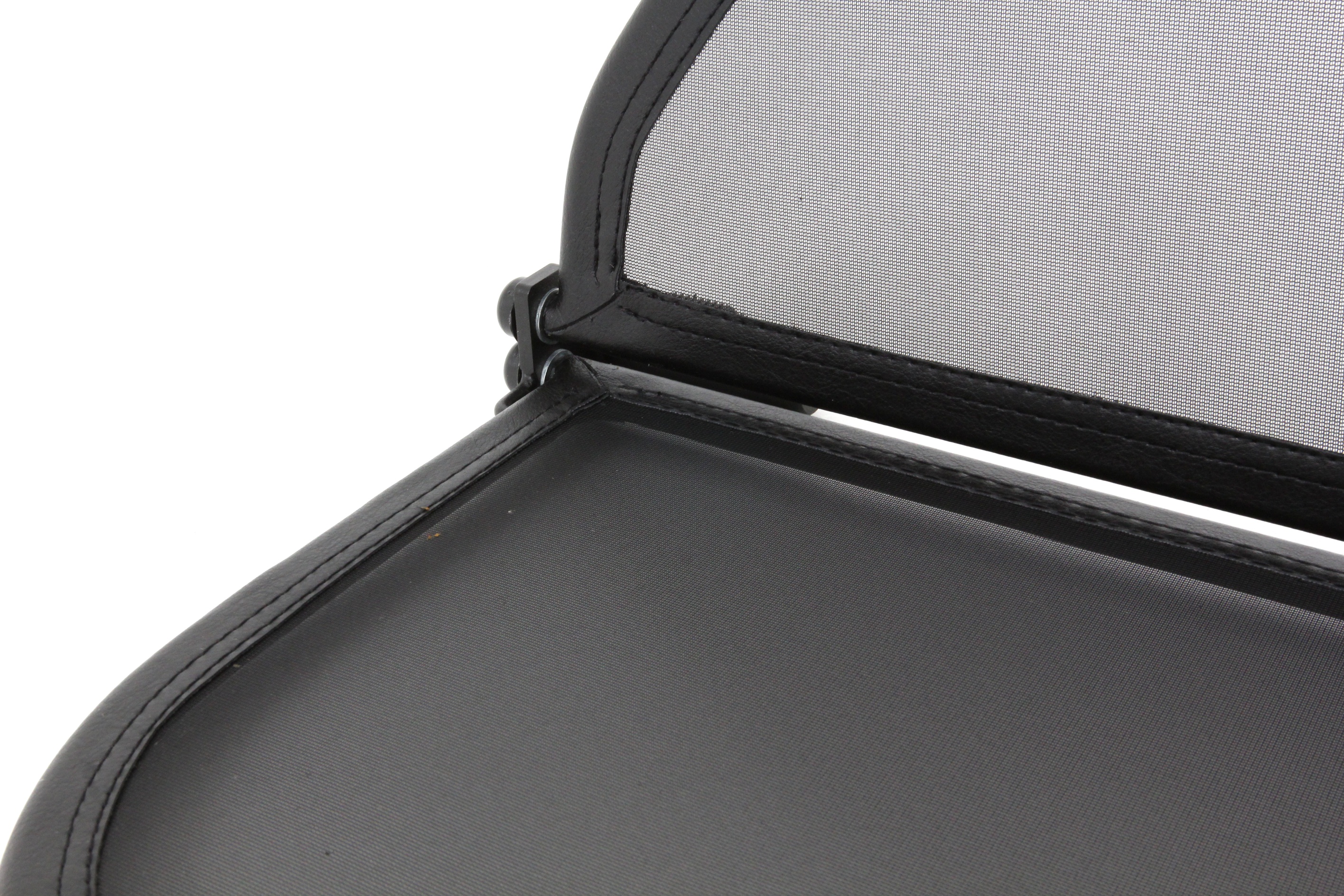 How does a wind deflector work?In its simplest form it is a mesh covered steel frame fixed behind the drivers seats, preventing the air swirling in the car every convertible driver knows. The deflector frames are made from high-grade steel tubes, bowed in car specific form and size, accurately welded and covered with weatherproof artificial leather with high-quality seams. A high-quality nylon-polyester blended fabric mesh is used as clothing, characterised by highest tensile strength and UV-resistance. Mesh, respectively frame systems can be mounted with the installation kits even by laymen within a few minutes!