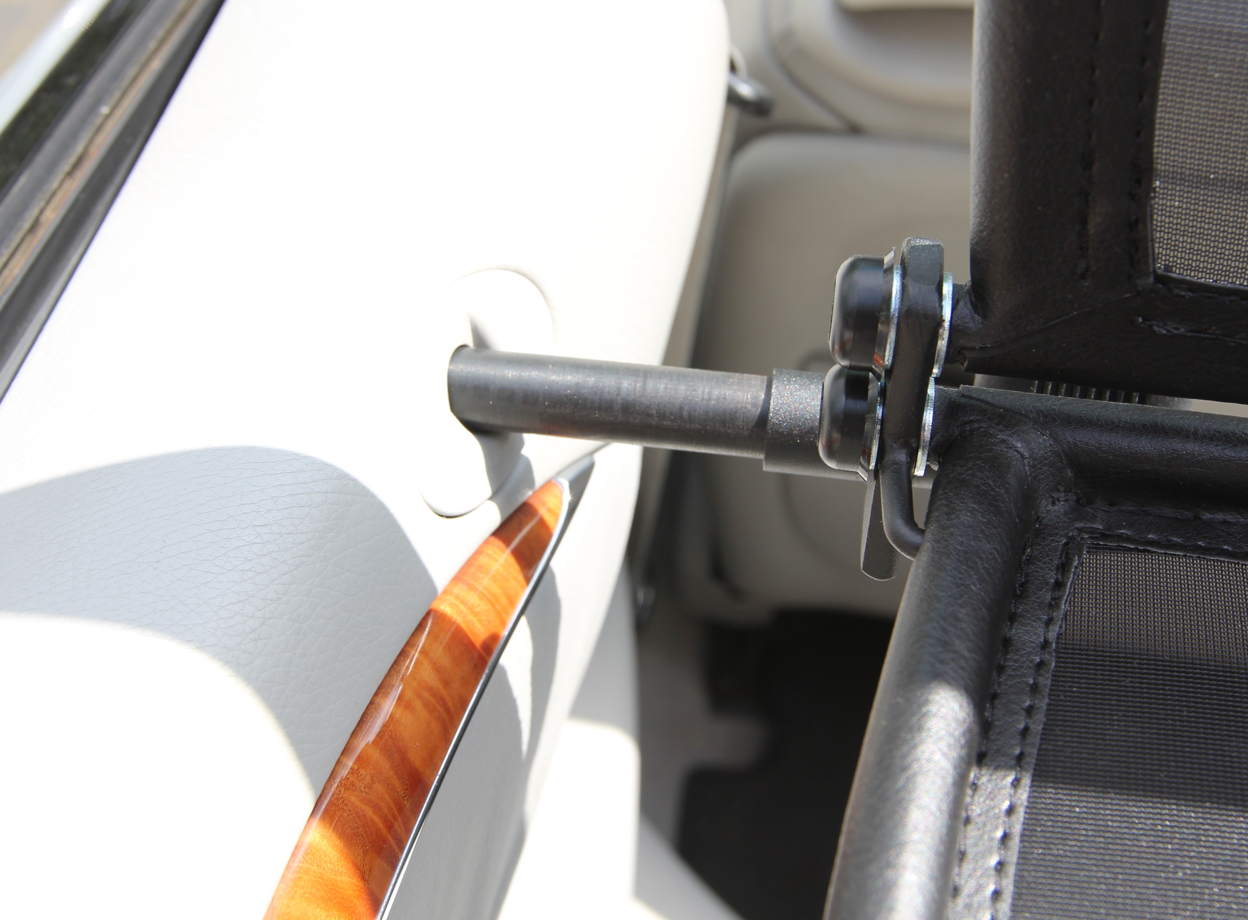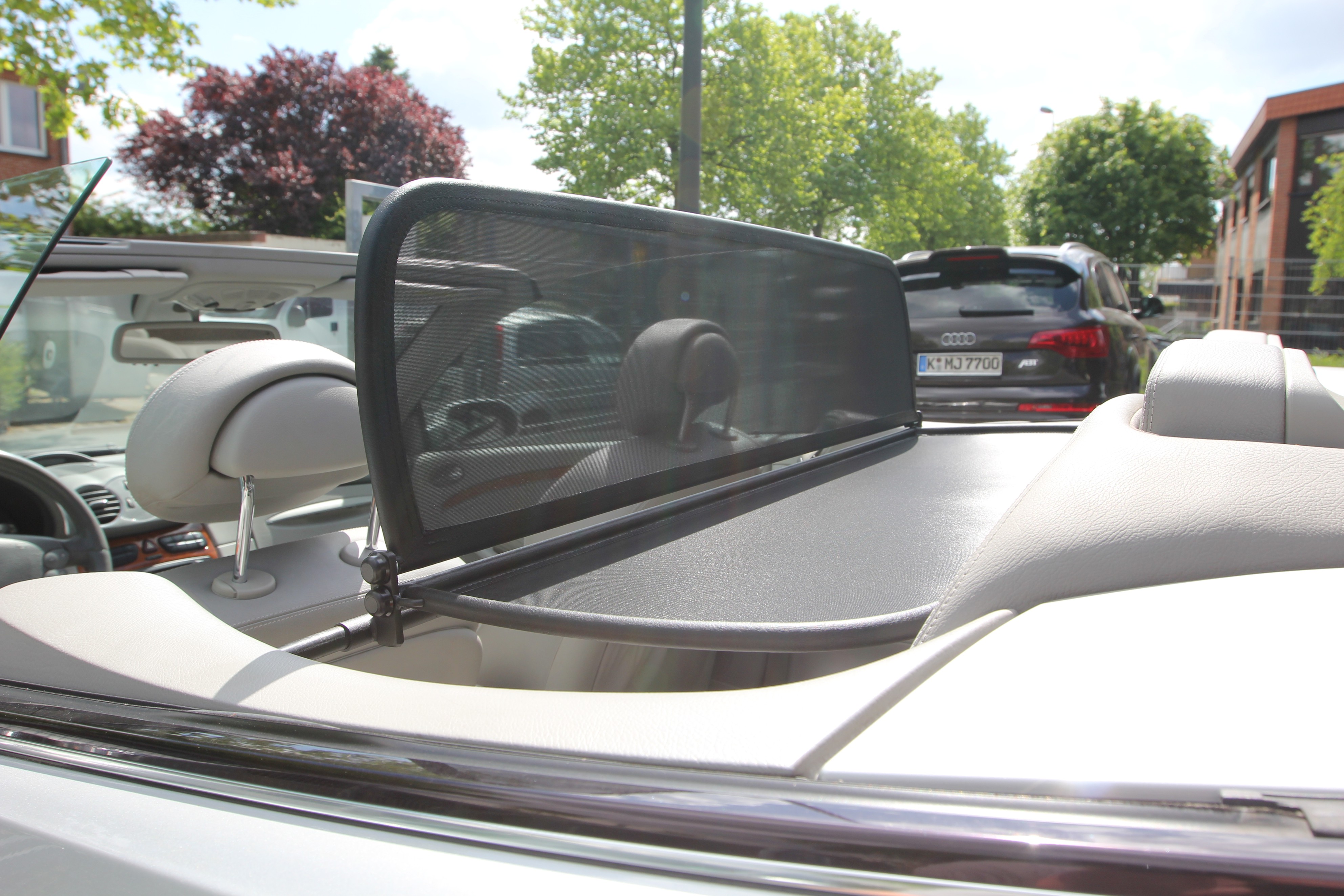 How does a wind deflector work?In its simplest form it is a mesh covered steel frame fixed behind the drivers seats, preventing the air swirling in the car every convertible driver knows. The deflector frames are made from high-grade steel tubes, bowed in car specific form and size, accurately welded and covered with weatherproof artificial leather with high-quality seams. A high-quality nylon-polyester blended fabric mesh is used as clothing, characterised by highest tensile strength and UV-resistance. Mesh, respectively frame systems can be mounted with the installation kits even by laymen within a few minutes!