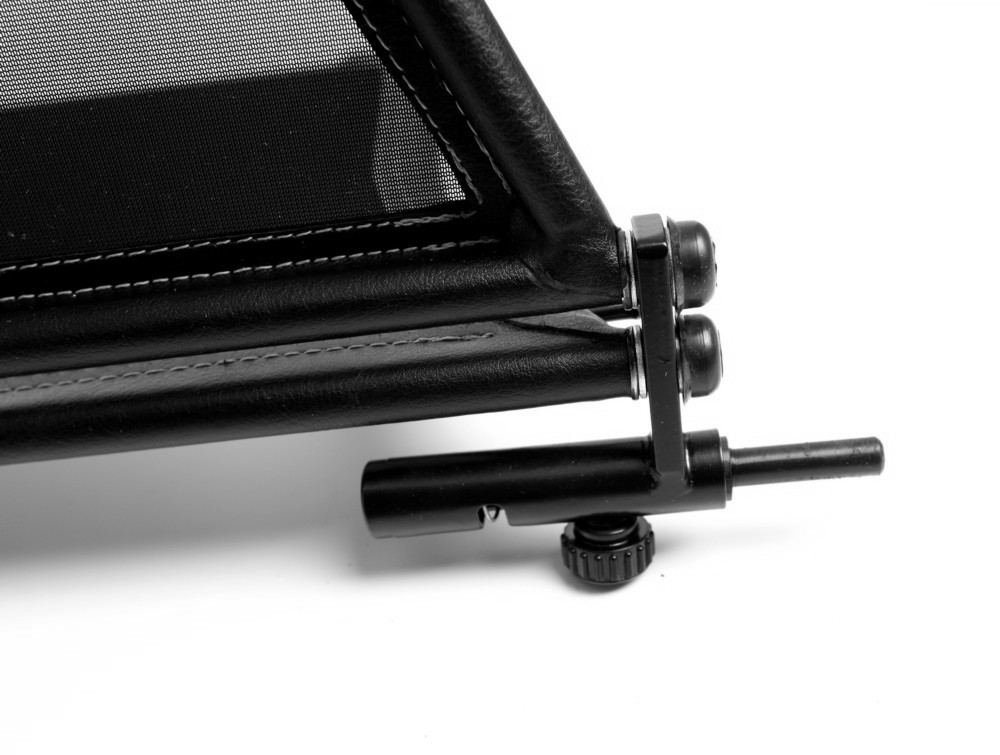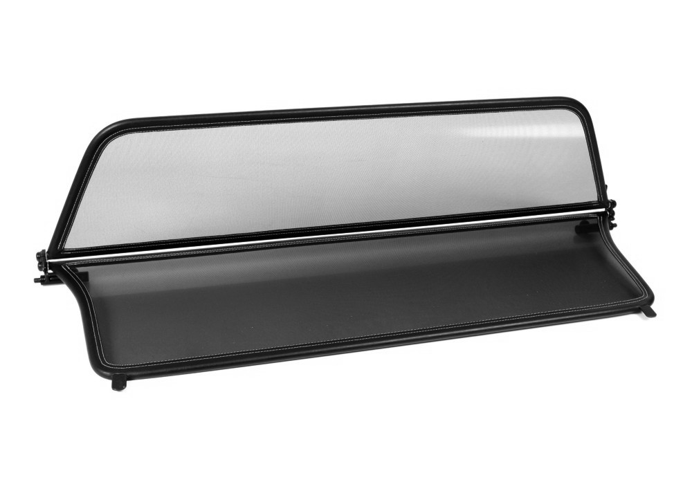 How does a wind deflector work?In its simplest form it is a mesh covered steel frame fixed behind the drivers seats, preventing the air swirling in the car every convertible driver knows. The deflector frames are made from high-grade steel tubes, bowed in car specific form and size, accurately welded and covered with weatherproof artificial leather with high-quality seams. A high-quality nylon-polyester blended fabric mesh is used as clothing, characterised by highest tensile strength and UV-resistance. Mesh, respectively frame systems can be mounted with the installation kits even by laymen within a few minutes!