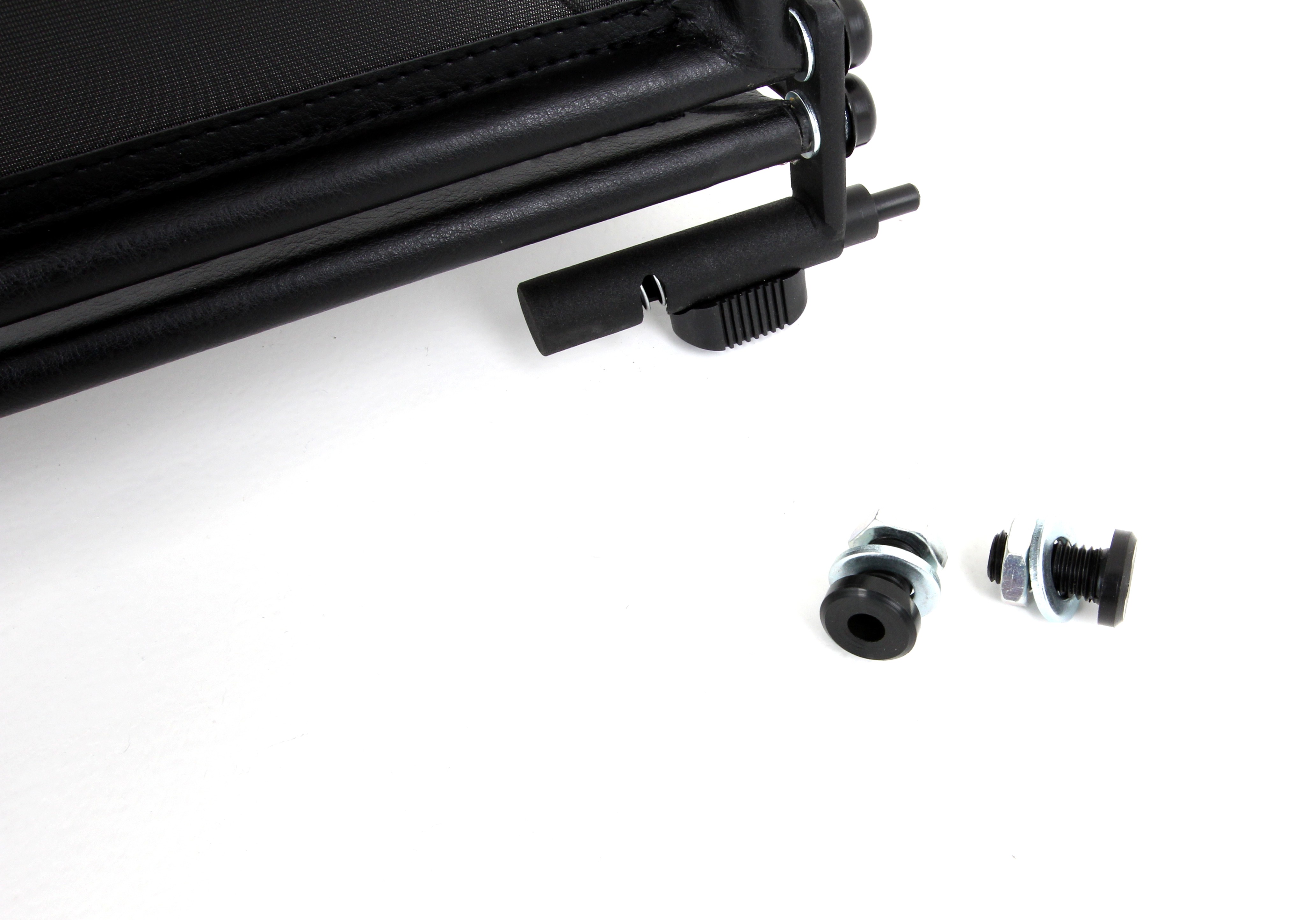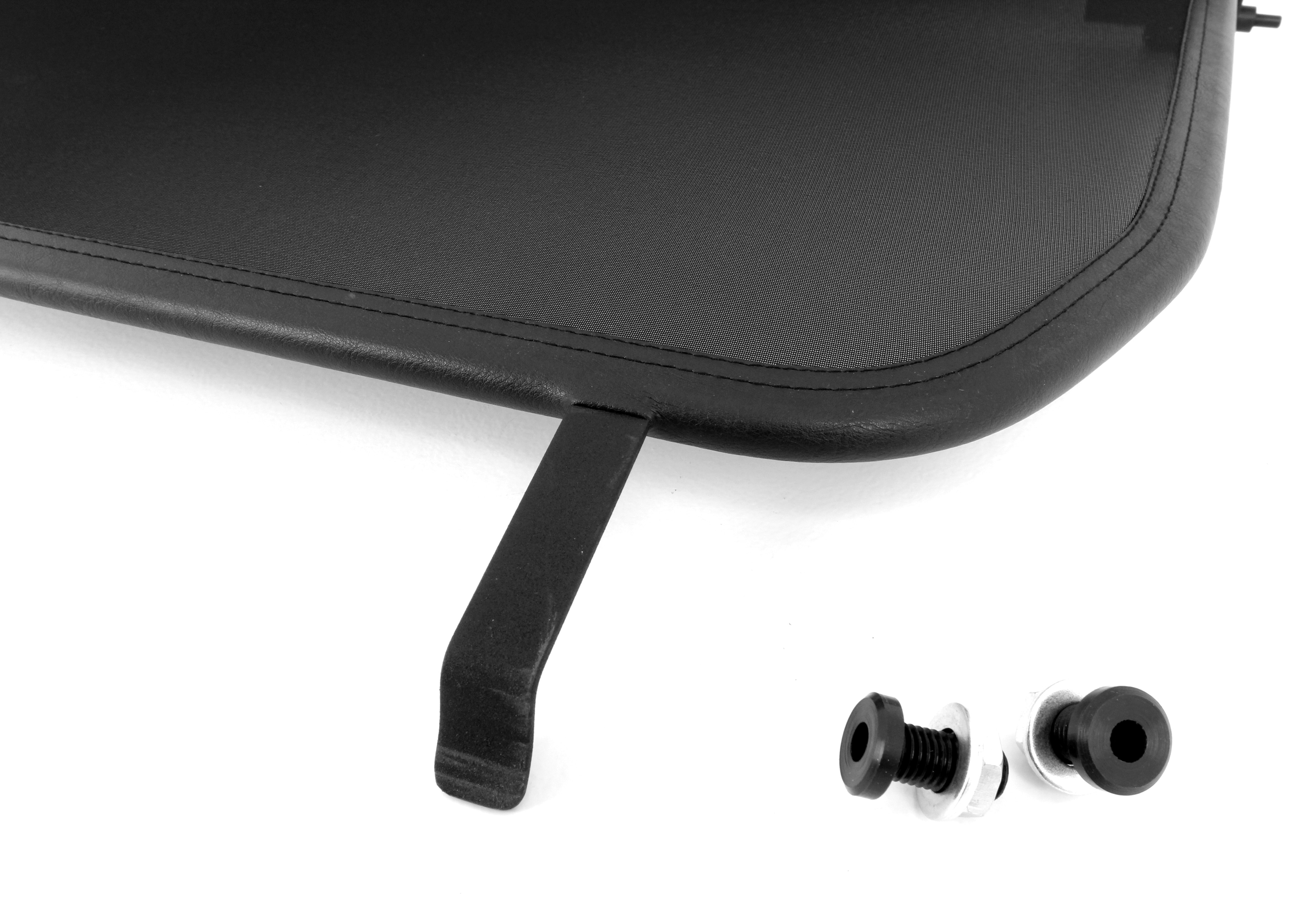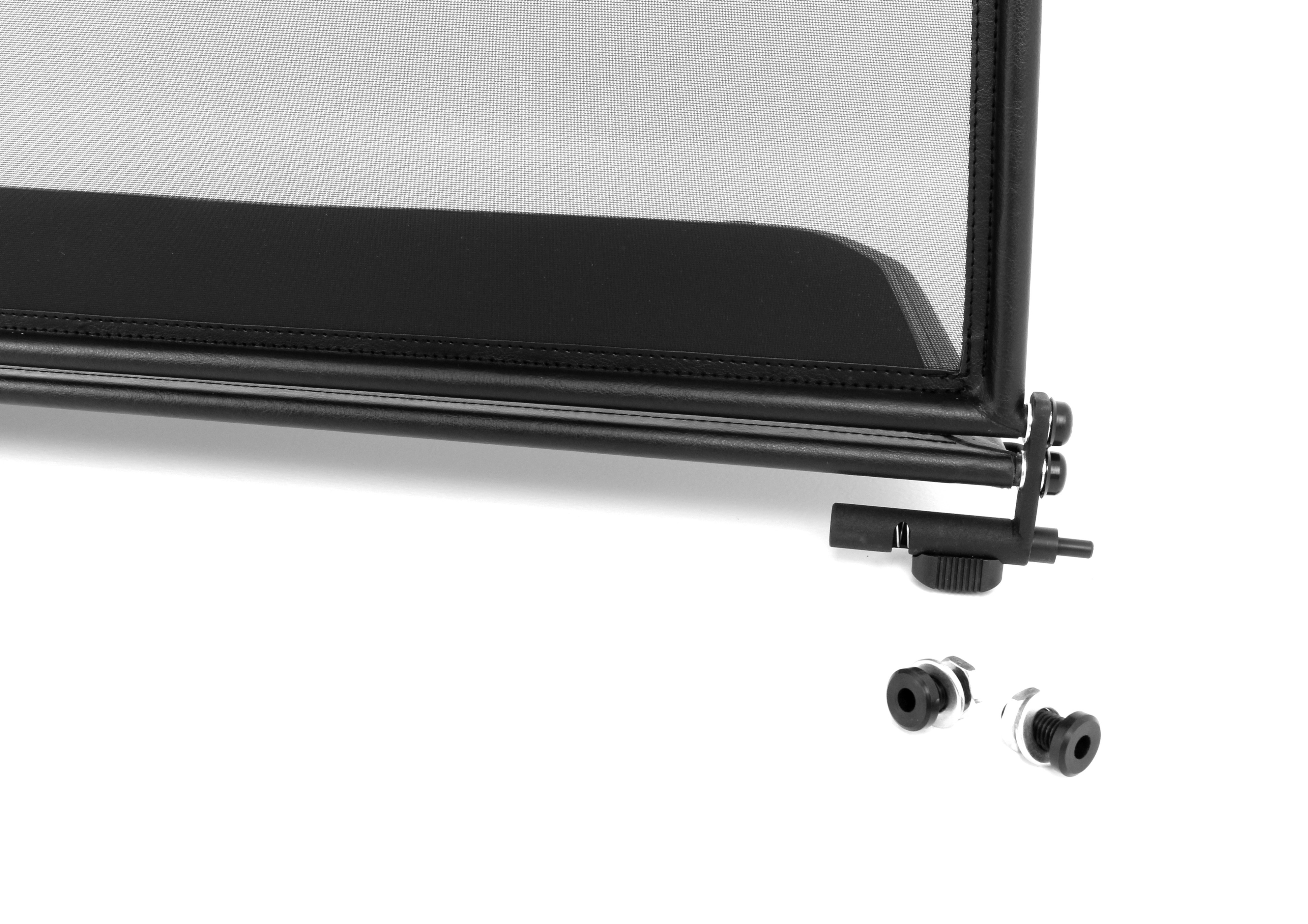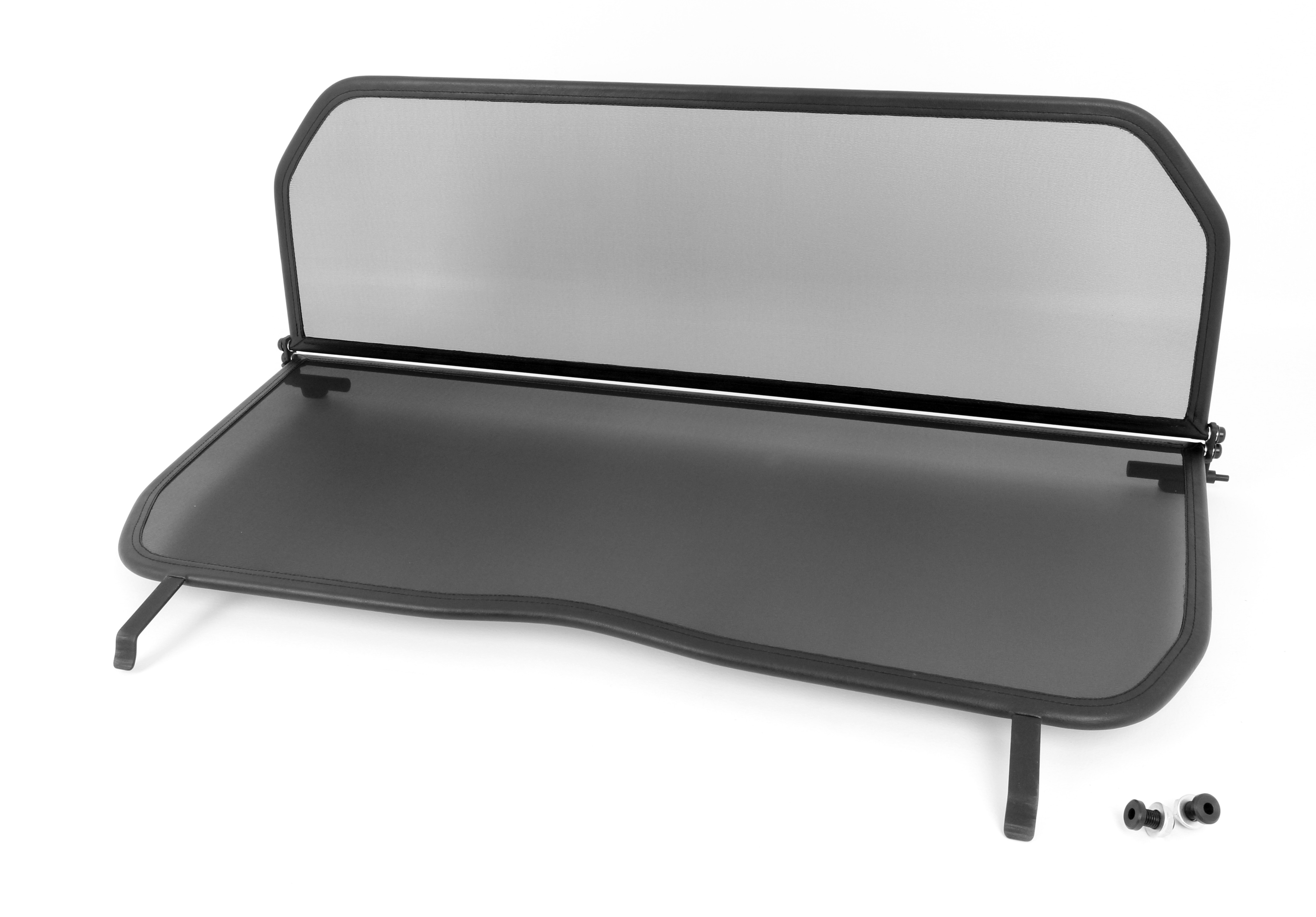 How does a wind deflector work?In its simplest form it is a mesh covered steel frame fixed behind the drivers seats, preventing the air swirling in the car every convertible driver knows. The deflector frames are made from high-grade steel tubes, bowed in car specific form and size, accurately welded and covered with weatherproof artificial leather with high-quality seams. A high-quality nylon-polyester blended fabric mesh is used as clothing, characterised by highest tensile strength and UV-resistance. Mesh, respectively frame systems can be mounted with the installation kits even by laymen within a few minutes!